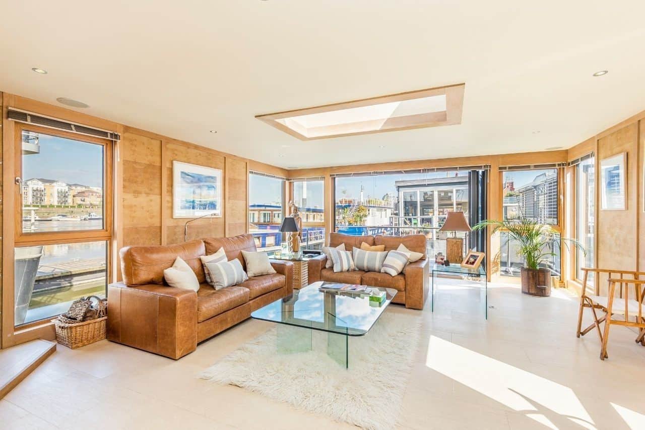 The floating three-bedroom residence, which was listed earlier this month, is docked off a gated pier where the Thames runs through the London suburb of Wandsworth. It also has access to a range of perks housed at the neighboring Riverside Quarter development, where there’s a mail room, pool, on-call concierge, steam and sauna rooms and several gyms, said Guy Bradshaw, head of London residential at United Kingdom Sotheby’s International Realty, which is listing the home.