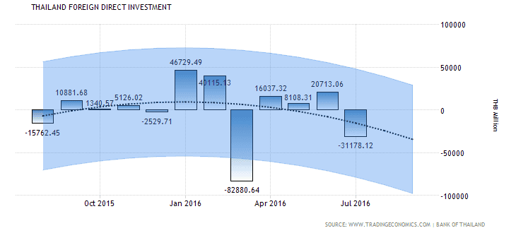 Foreign Direct Investment in Thailand is expected to be -5480.00 THB Million by the end
