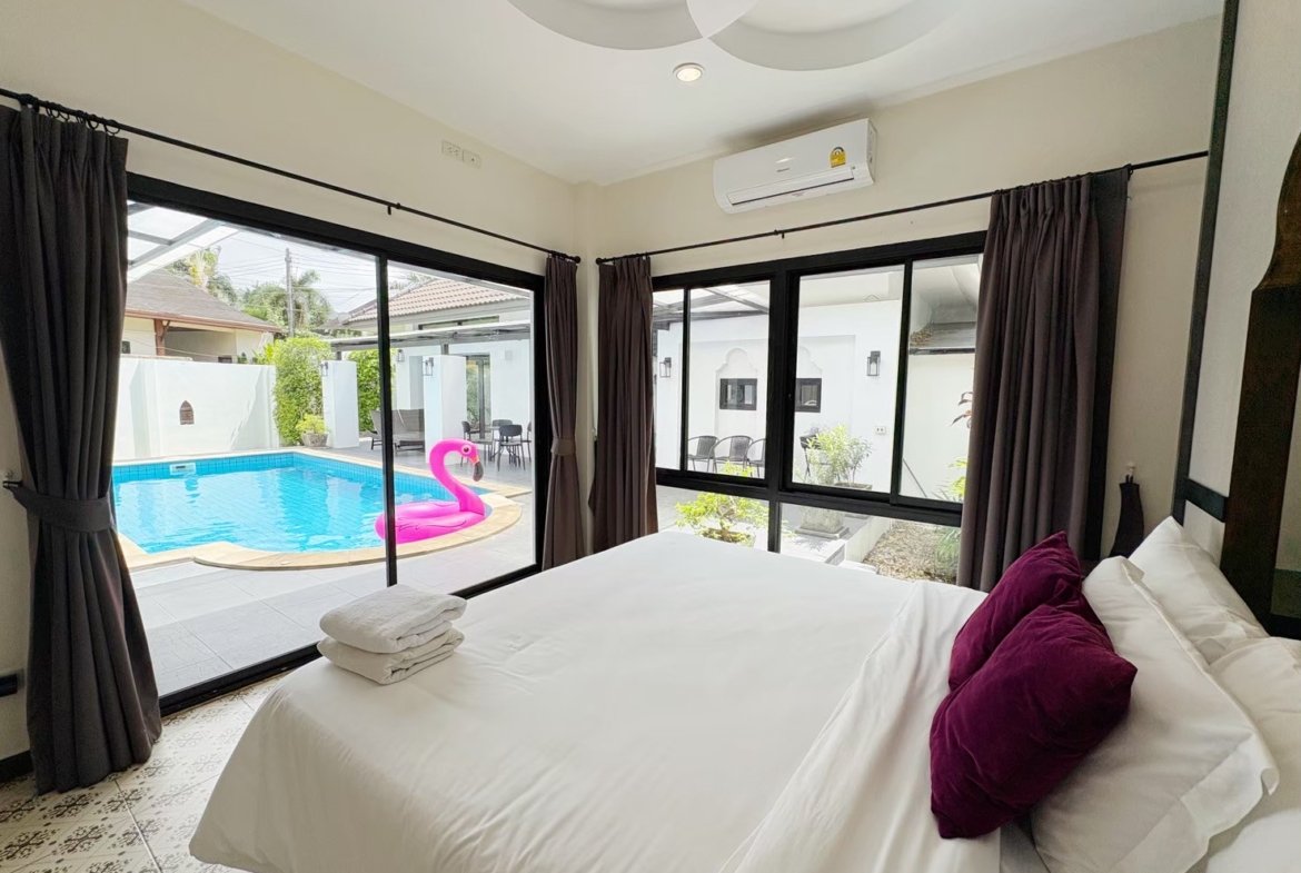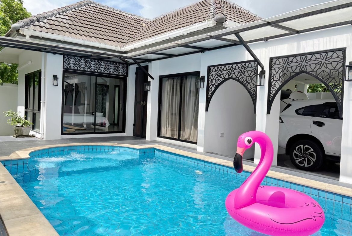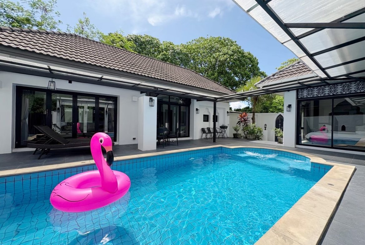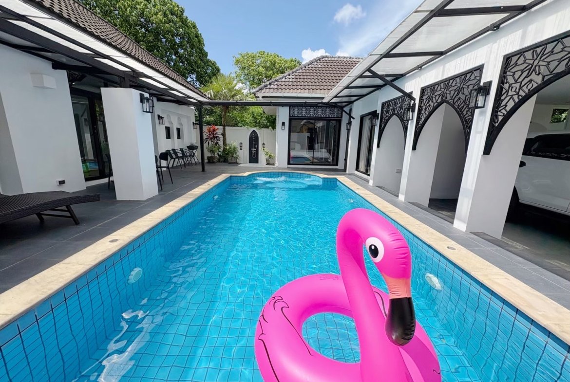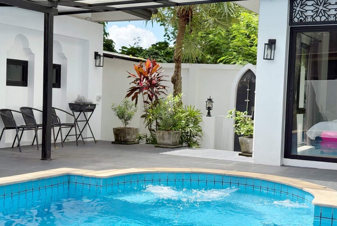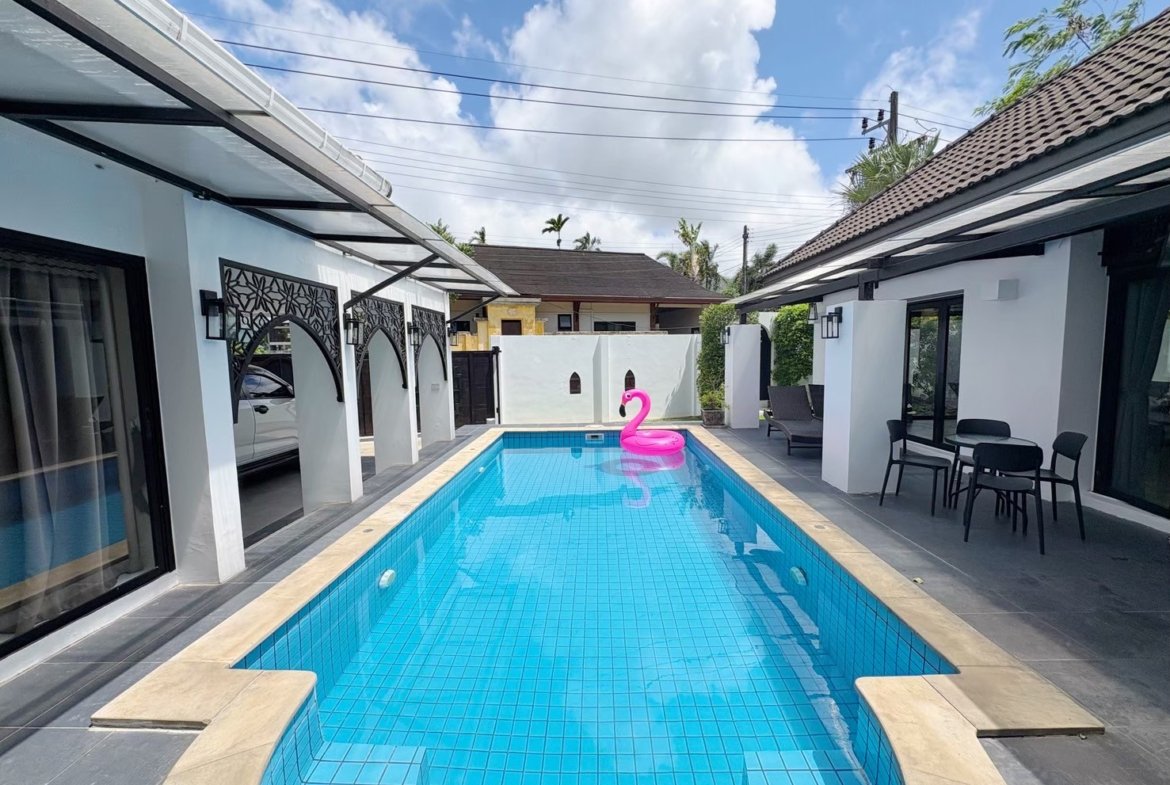 Modern single-storey private pool villa available for rent in Manik – Bangjo, Cherngtalay, Thalang, Phuket. Conveniently located just 10 minutes from Robinson Thalang and 15 minutes from Laguna Phuket.