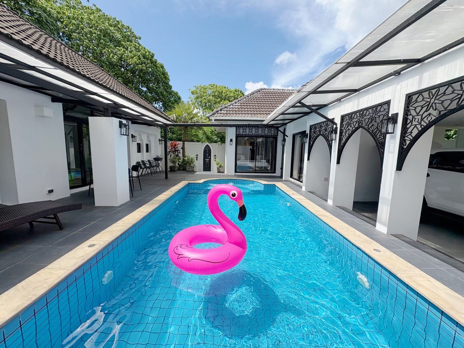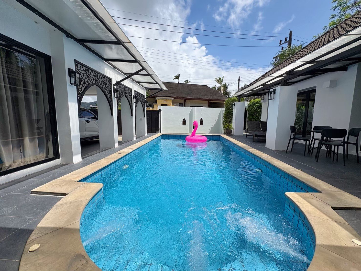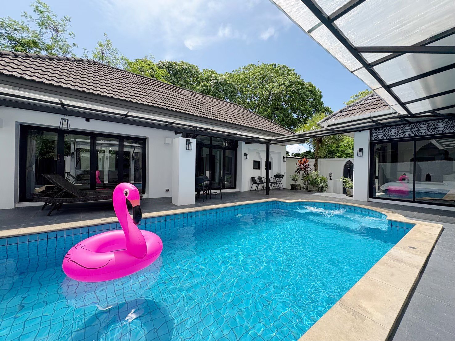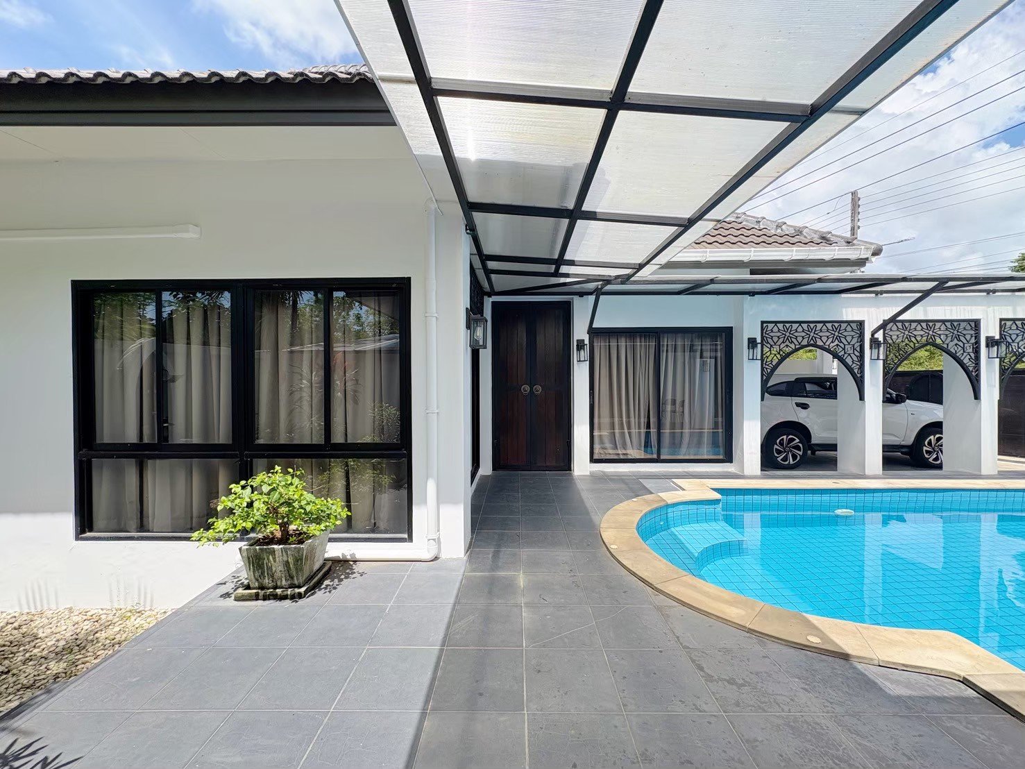 Modern single-storey private pool villa available for rent in Manik – Bangjo, Cherngtalay, Thalang, Phuket. Conveniently located just 10 minutes from Robinson Thalang and 15 minutes from Laguna Phuket.