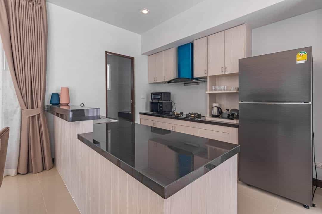 The interior of this villa has been meticulously designed and renovated to offer a luxurious and comfortable living space. With three spacious bedrooms and four modern bathrooms, there’s plenty of room for family and guests. The living area is bright and open, providing a welcoming space for relaxation and entertainment. The kitchen is fully equipped with a gas stove and hood, perfect for culinary enthusiasts.
