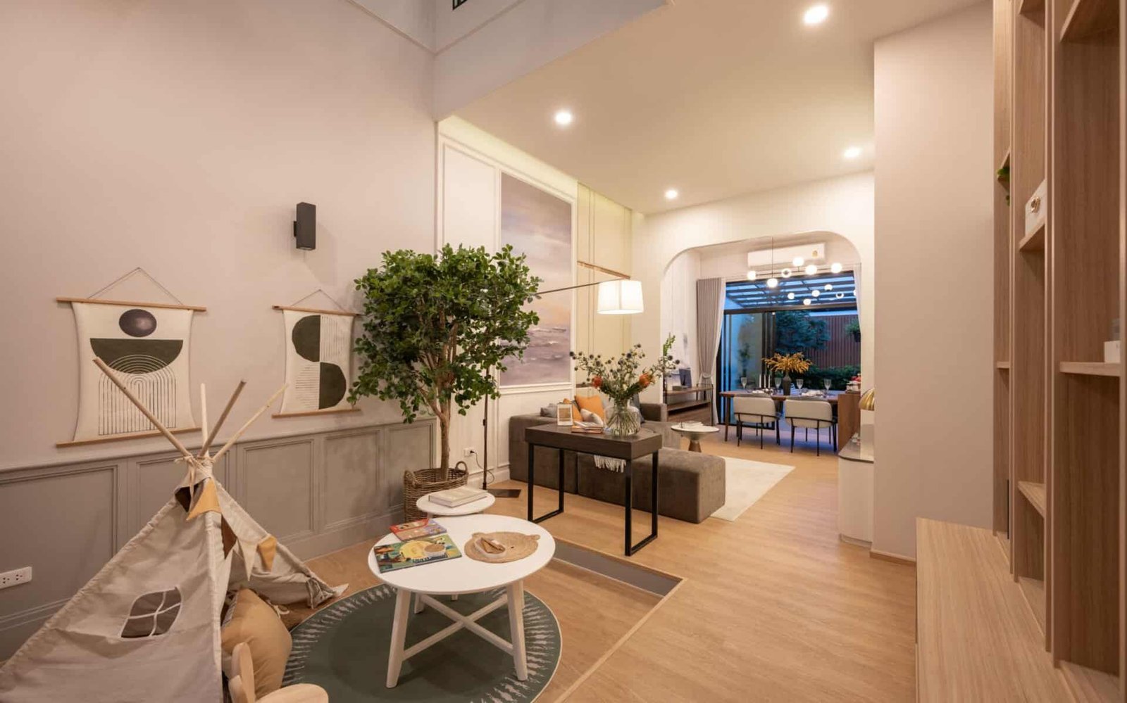 - Skylights and pocket gardens that enhance natural light and greenery within the home