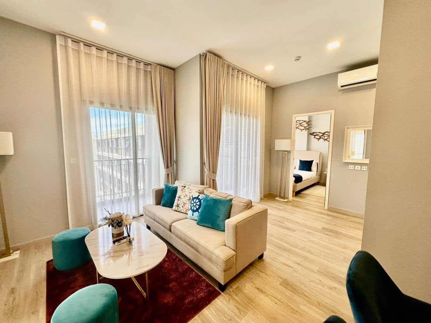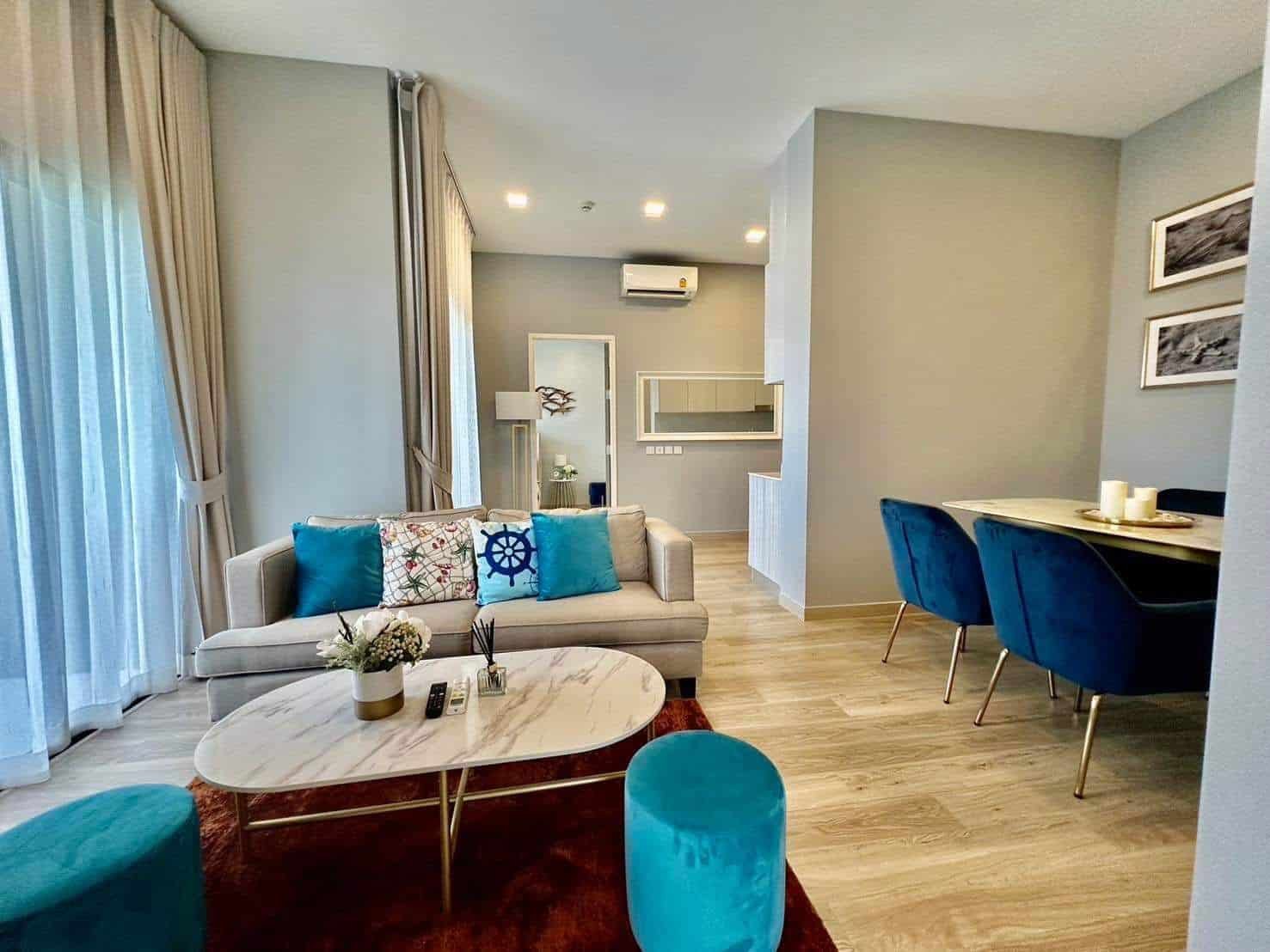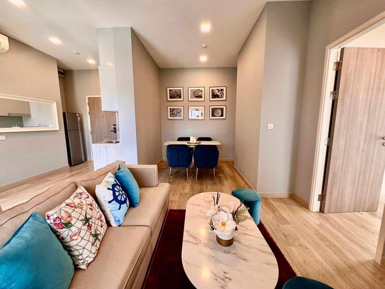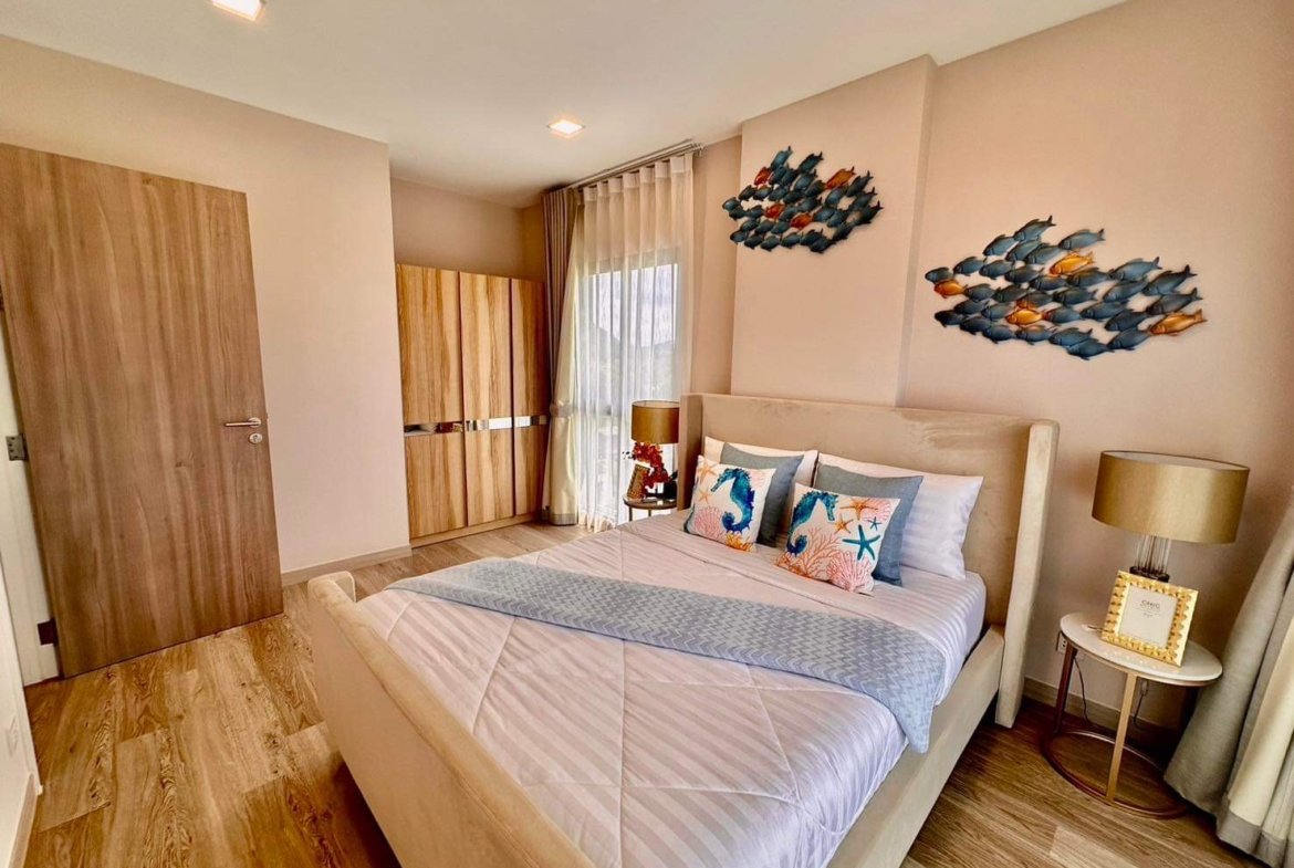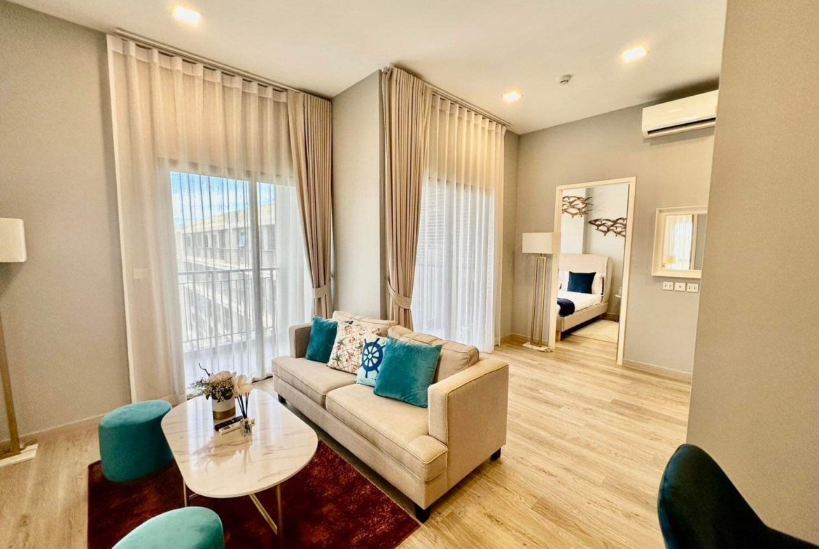 A stunning 2-bedroom, 2-bathroom condo located in Marvest Hua Hin. Situated on the higher floors of Tower B, this corner unit on the 8th floor offers unparalleled privacy, with only one room on this side, and boasts scenic views of the swimming pool. Spanning 74 sqm, the condo comes fully furnished, making it move-in ready. Priced at 9,500,000 THB, with the option to negotiate, and transfer fees split 50/50.