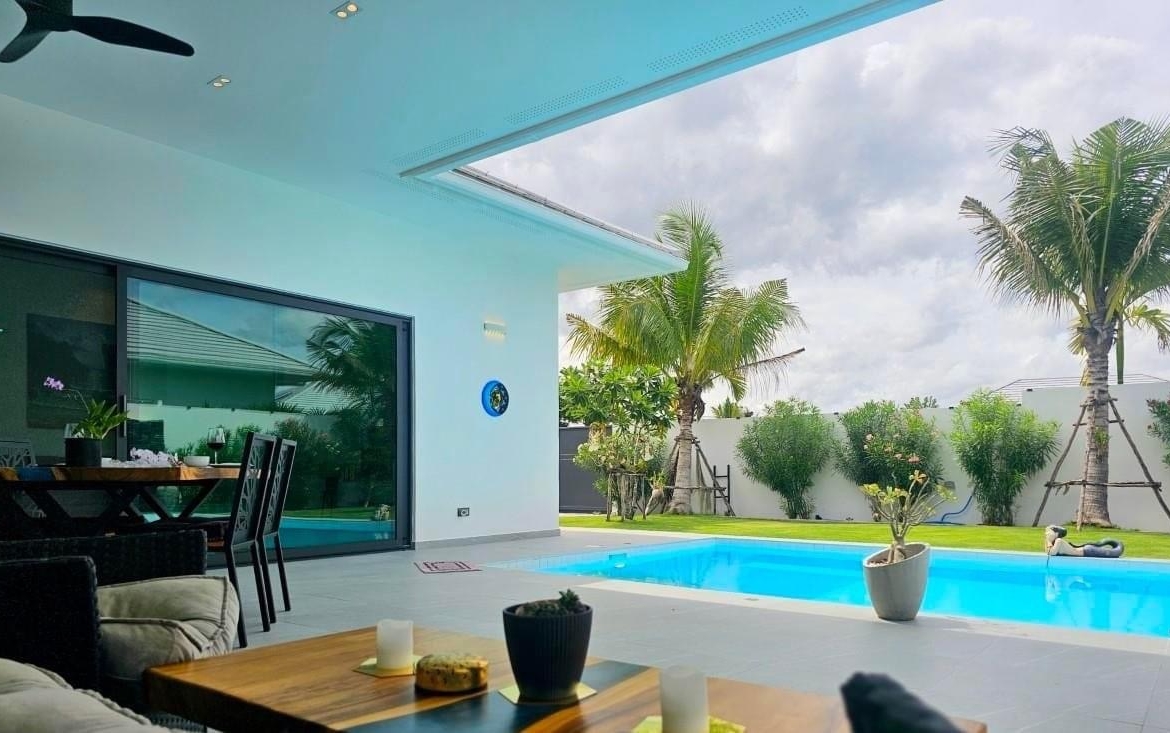 Discover your perfect home at Heliconia Villas in the serene area of Hin Lek Fai, Hua Hin. This newly built dream villa, less than a year old, offers a luxurious and sustainable living experience with cutting-edge amenities and a prime location.