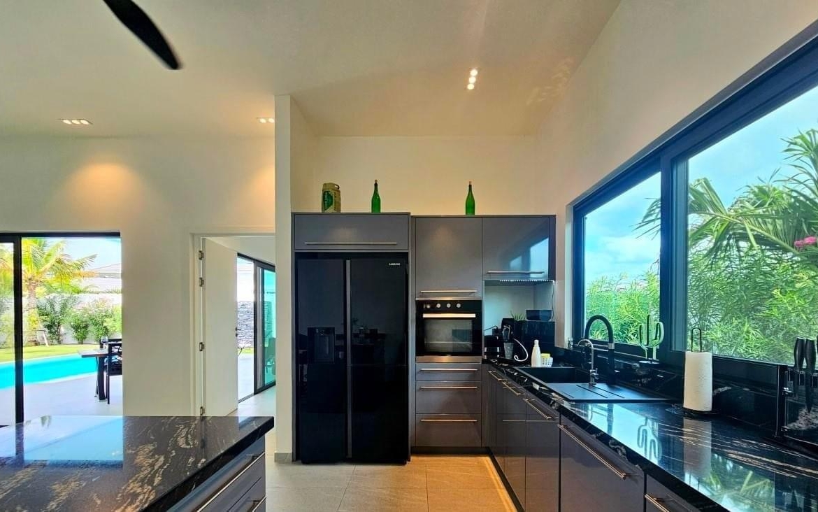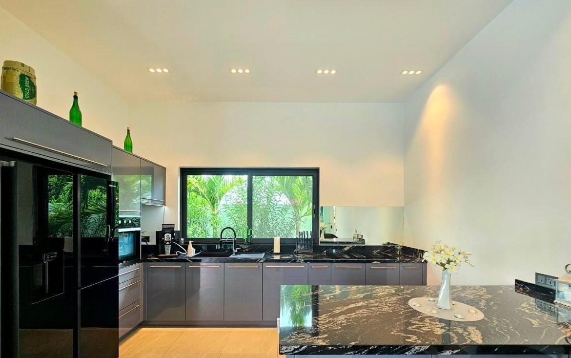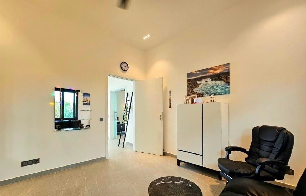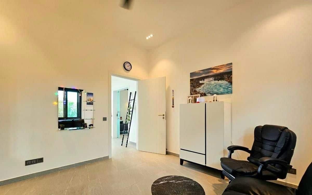 Luxury Features: This villa offers exceptional privacy with extra high perimeter walls and an entrance gate. The spacious rooms boast 3.25m high ceilings, complemented by UV sun protection glass. Enjoy the energy efficiency of a 6.5 Kw/p solar system with 10 Kw storage and three-phase electricity. The property also features a 4.5 x 11.0 m pool with a water wall, a second entrance with additional parking, and premium kitchen appliances, including an induction cooker and a refrigerator with an ice maker.