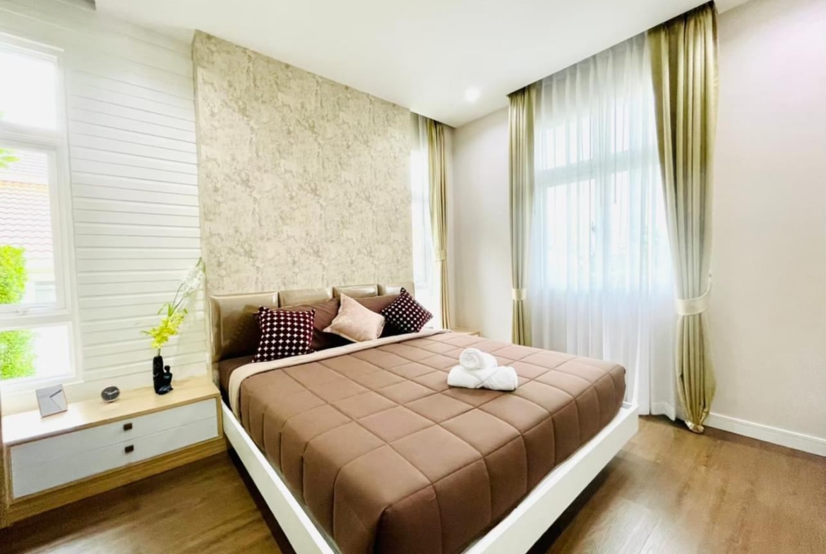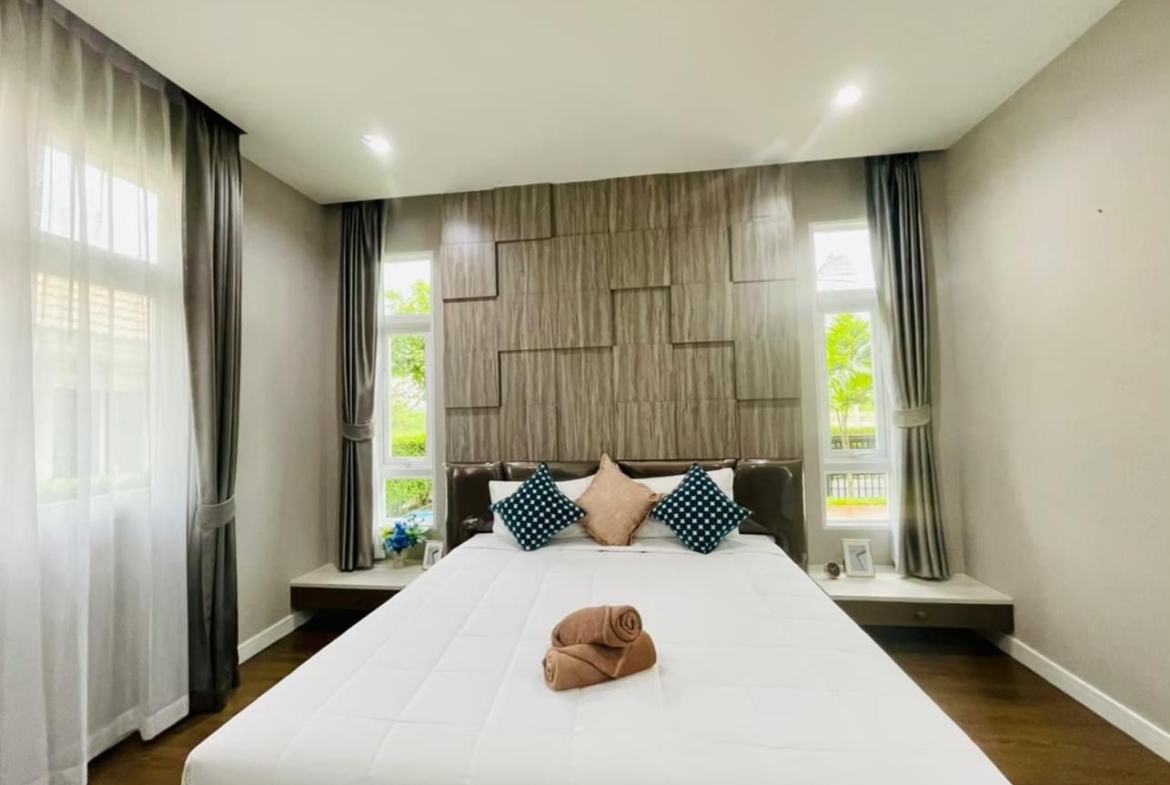 Introducing iBreeze View Hua Hin – a stunning Panya-style home priced at just 7.5 million Baht. This beautiful property offers a wealth of features, perfect for those seeking comfort, convenience, and style. Spread over a full land plot of 400 sq.m., the home boasts 3 spacious bedrooms and 3 modern bathrooms, all fully furnished to provide a turnkey living experience.