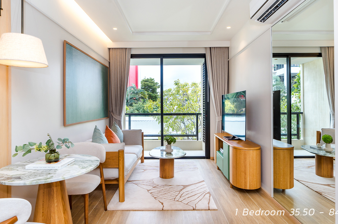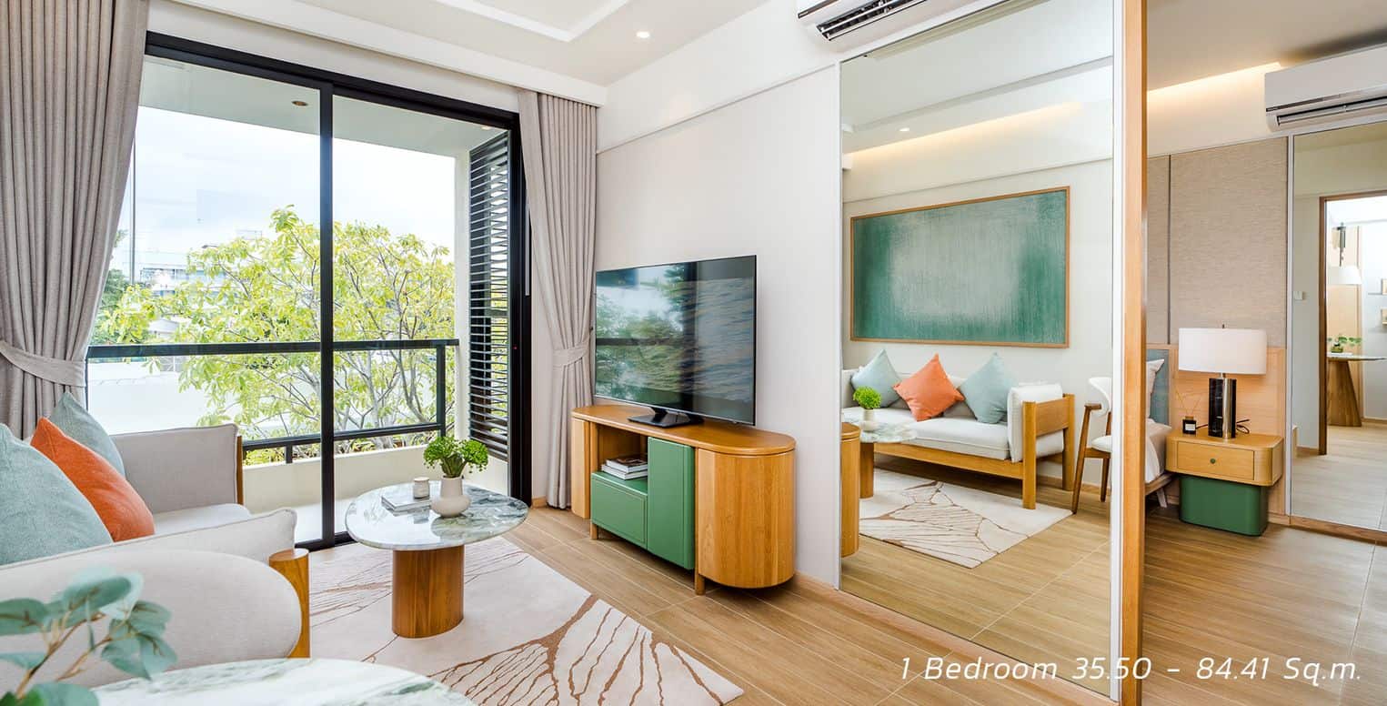 - 1 Bedroom: 35.50 – 84.41 sq.m