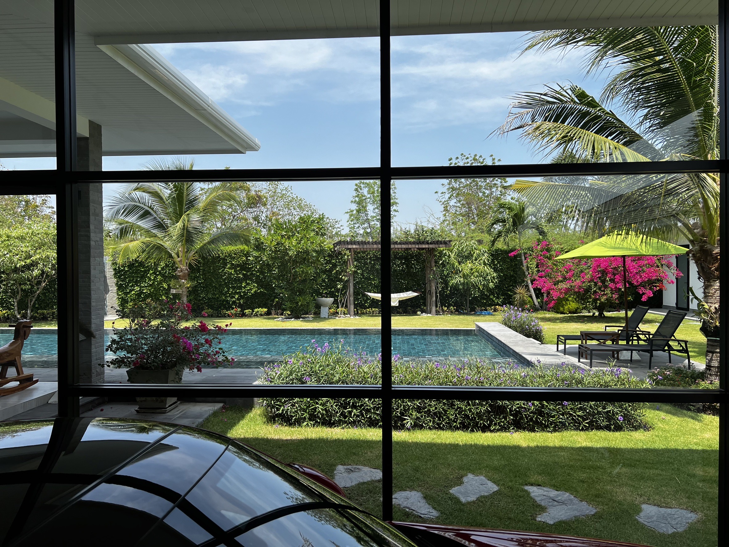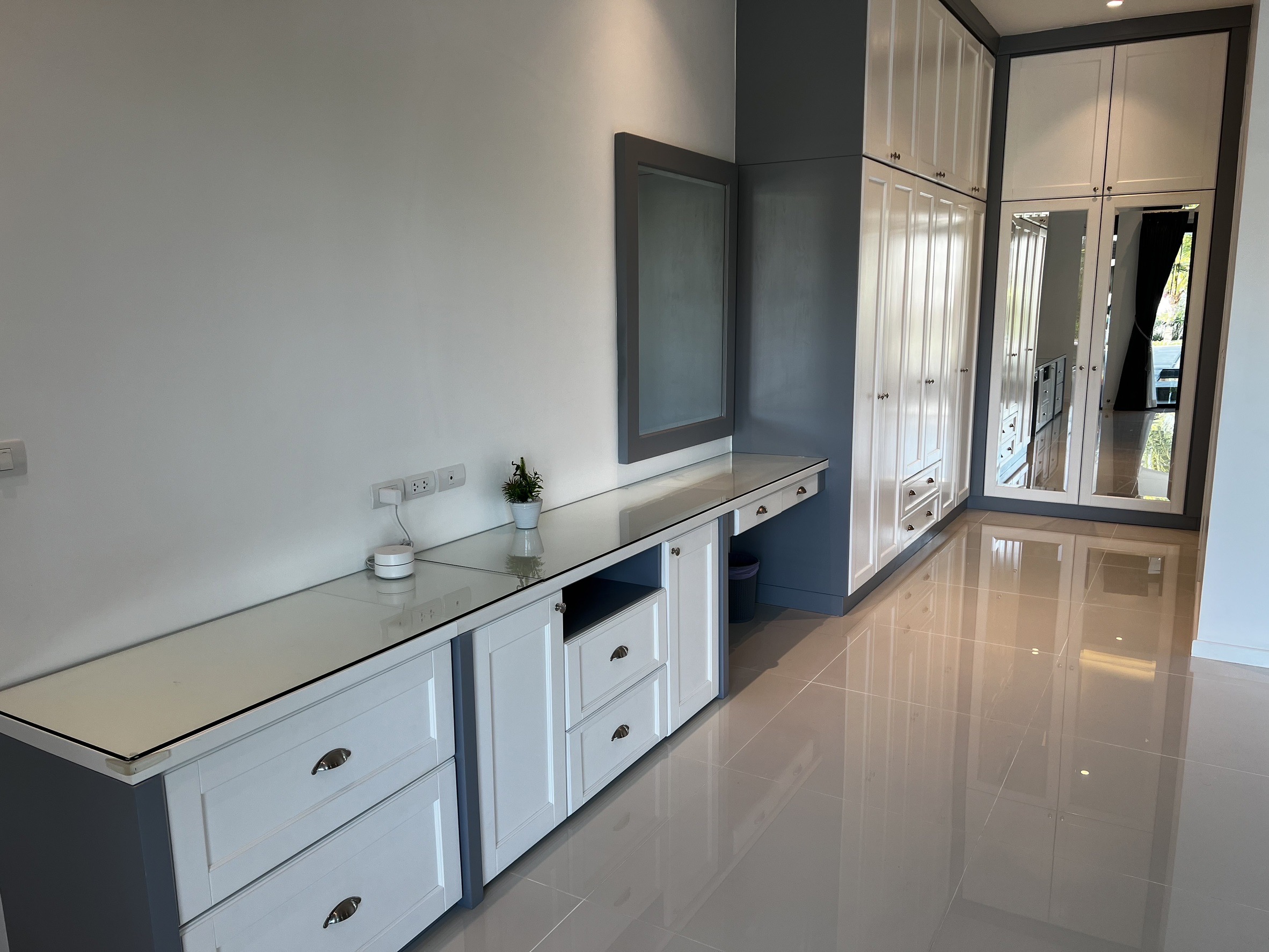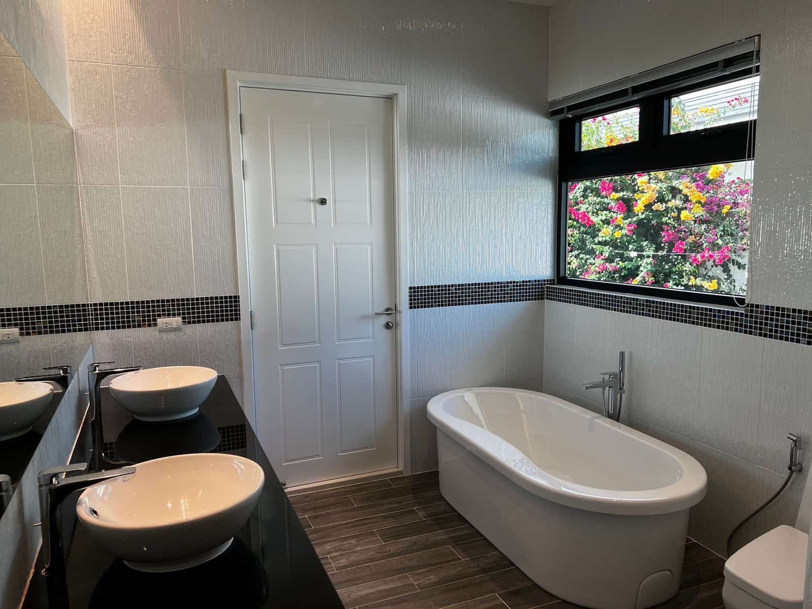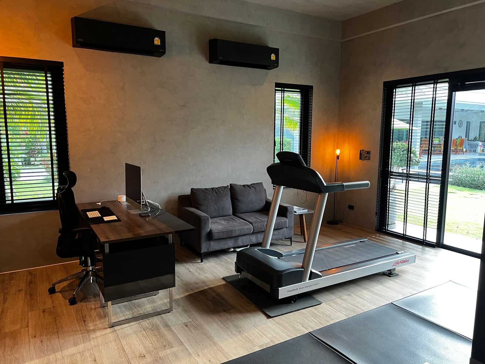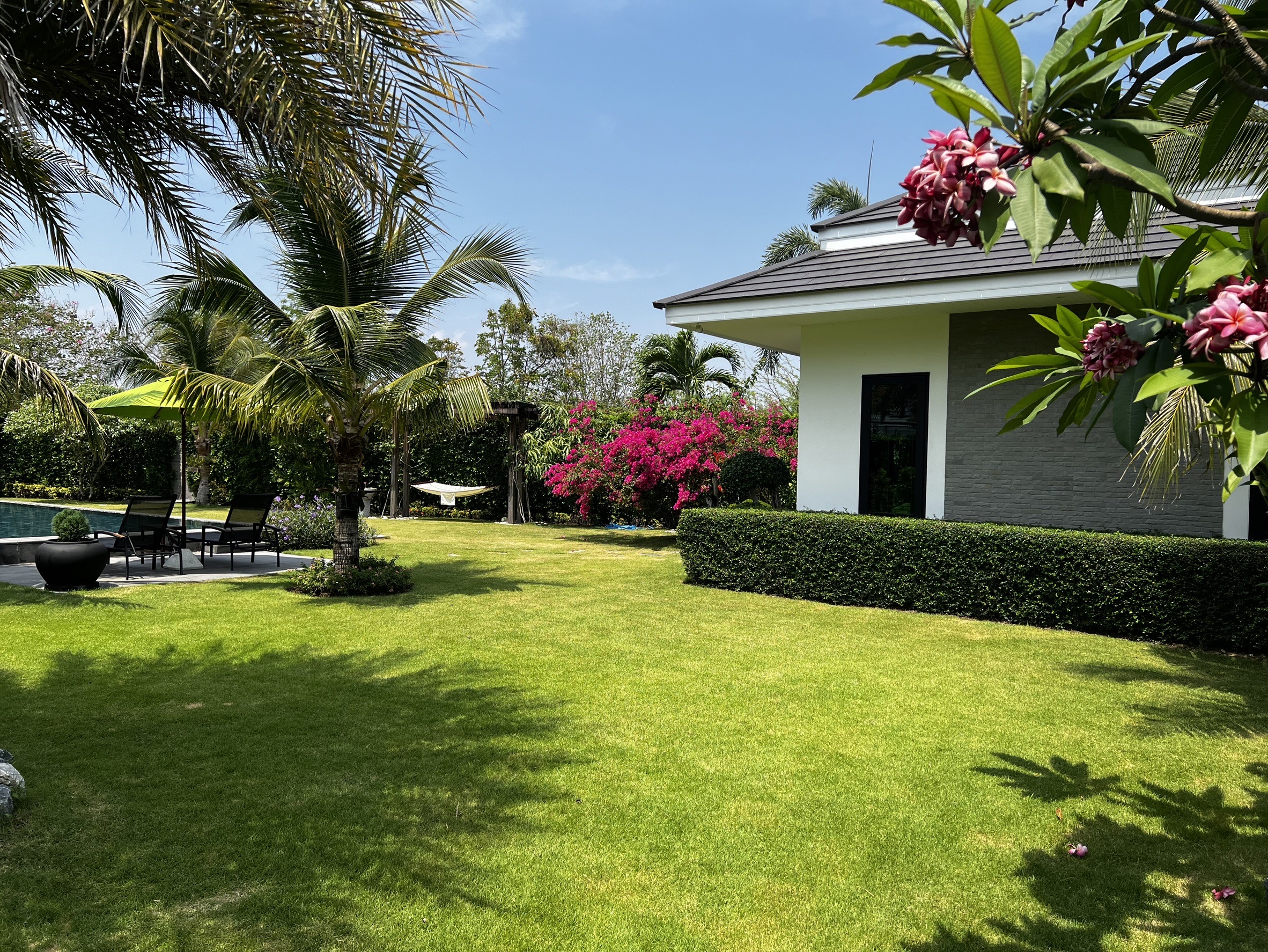 A luxury villa surrounded by a beautiful, lush tropical landscape located just 2km from the beach between Cha Am and Hua Hin. The property comes fully furnished with very high quality furniture/fittings including a modern style kitchen, large italian leather sofas, commercial grade gym equipment, double glazed windows and much more.