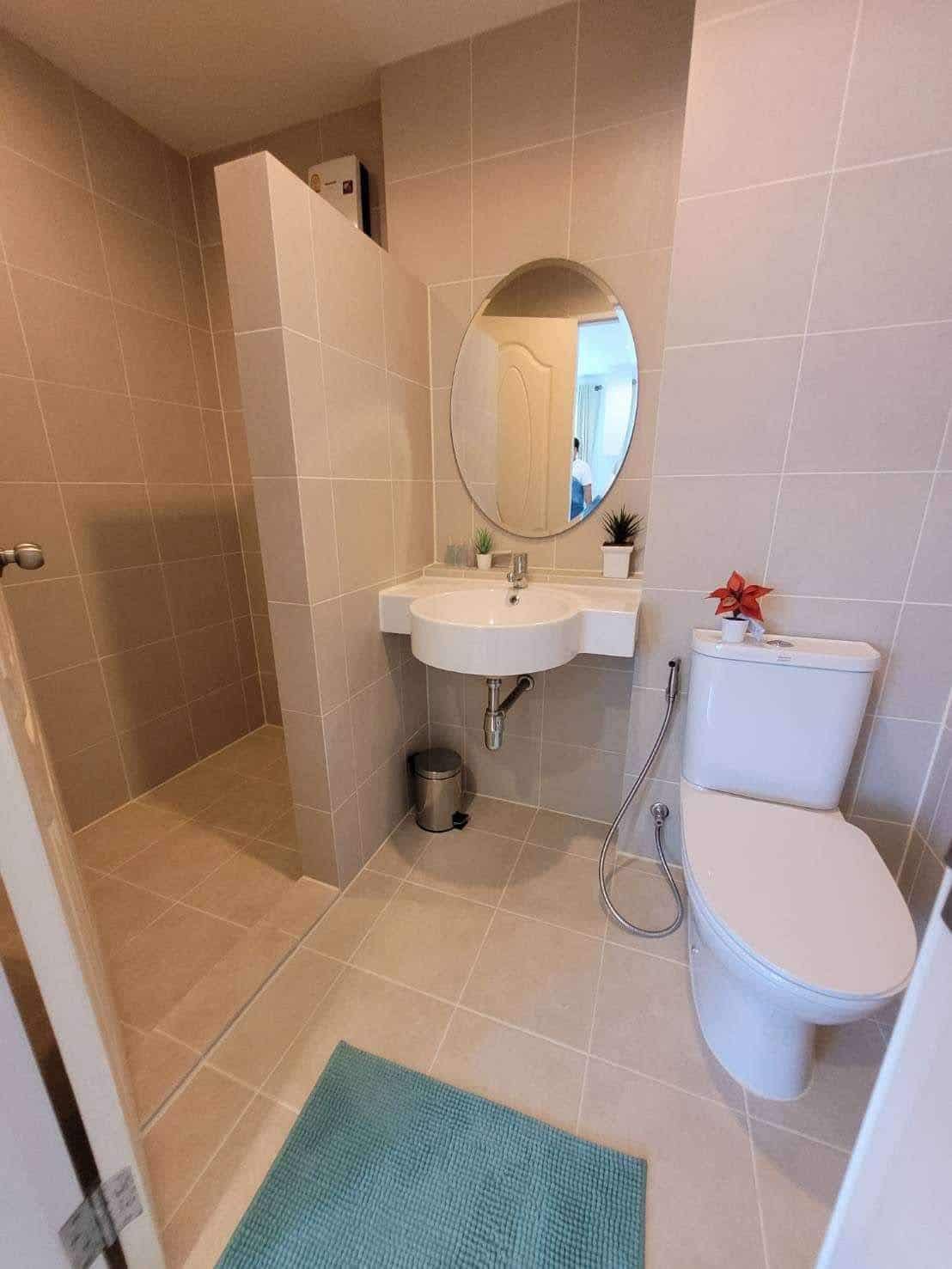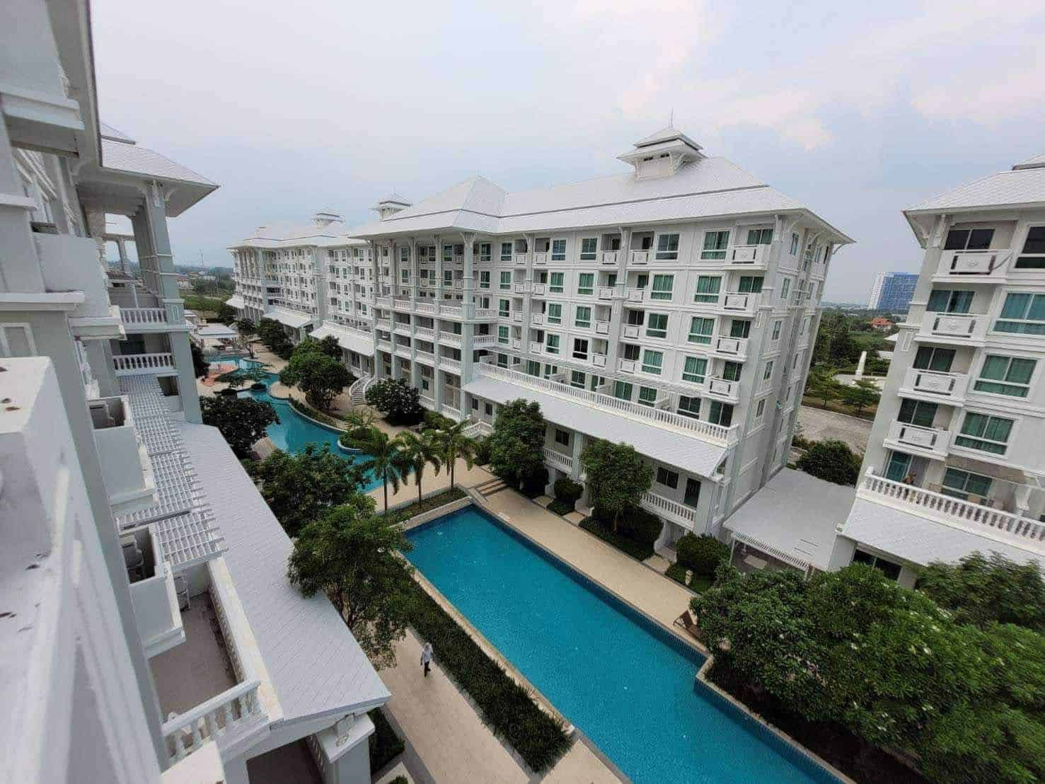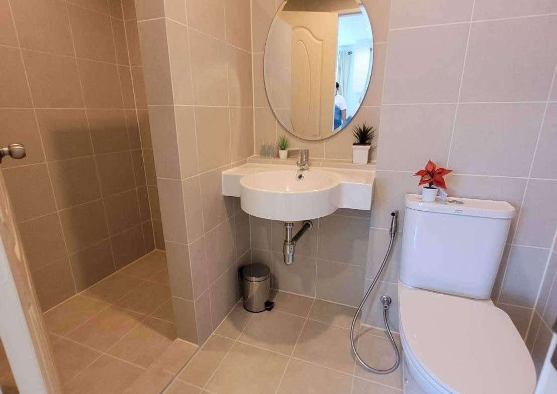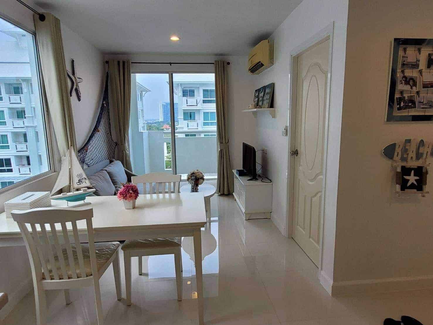 A corner unit in The Seaside City (The Energy) Cha-am Hua Hin, located on the 7th floor of Building E, the closest building to the sea. This 34 sq.m. room is fully furnished and equipped with electrical appliances, offering a great deal compared to the current project pricing. Despite its larger size, this brand-new, never-used room is priced at only 2.59 MB, significantly cheaper than the 32 sq.m. units selling for 2.79 MB. The project features the largest common area in Hua Hin, including a private beach, bowling alley, fitness center, basketball court, sauna, and a meditation chapel, providing a luxurious and convenient lifestyle.