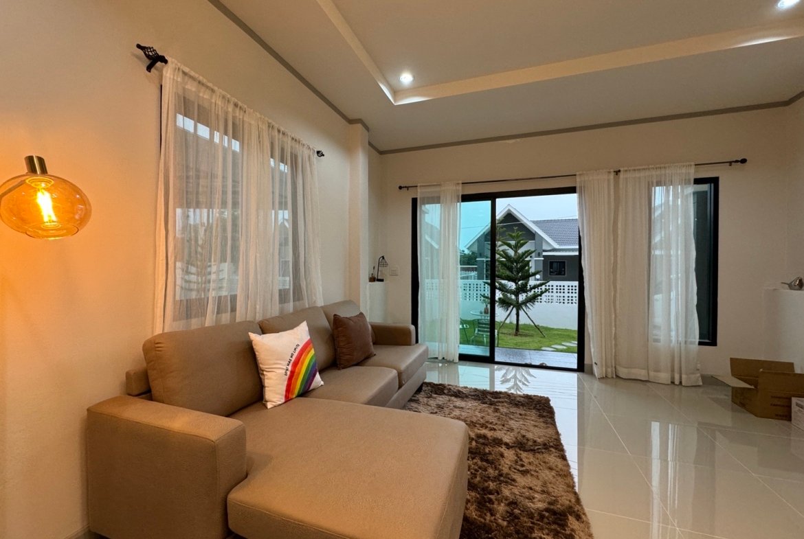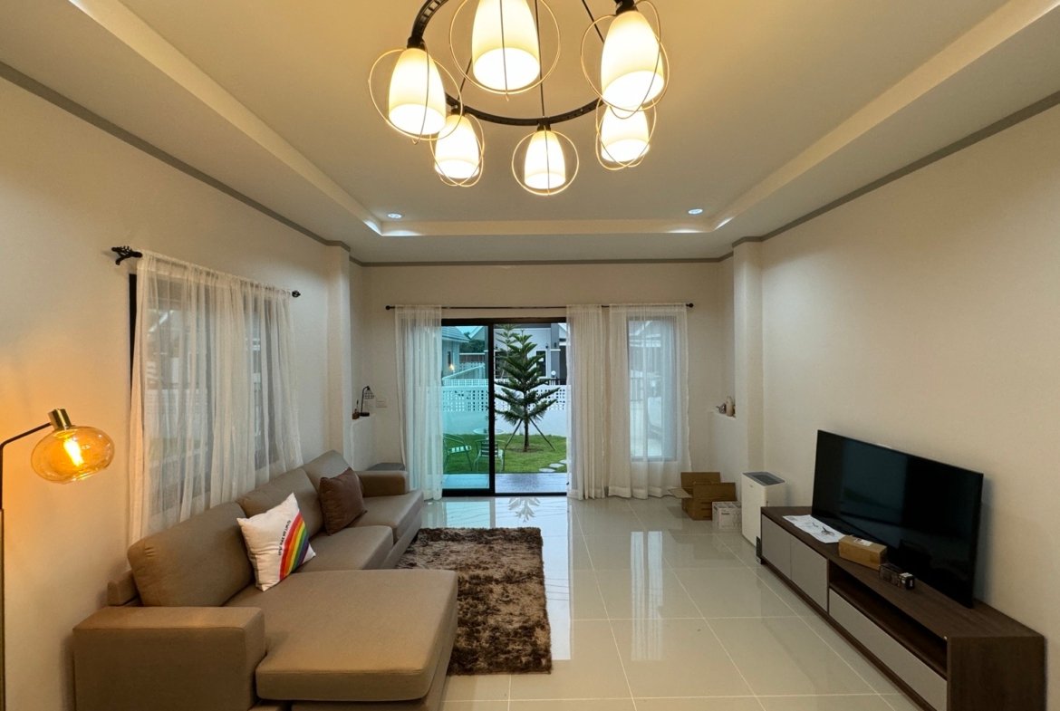 Introducing this charming 3-bedroom, 2-bathroom house, an incredible opportunity priced at just 2.85 million Baht. Nestled on a 63-square-wa plot, this property is designed for comfortable living and outdoor enjoyment.