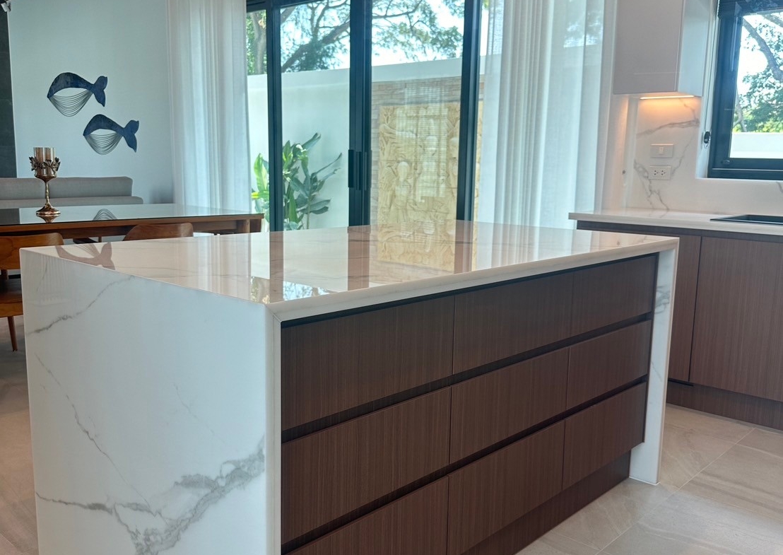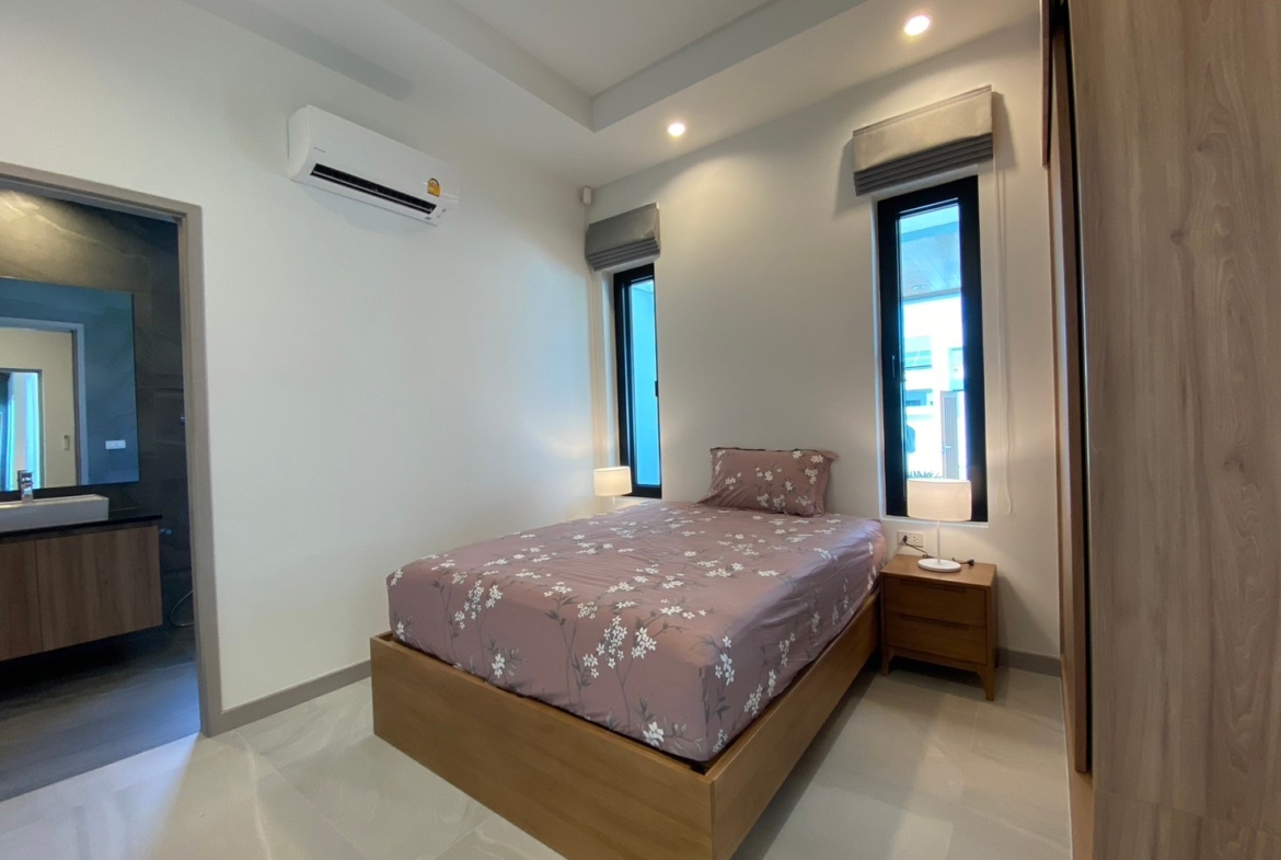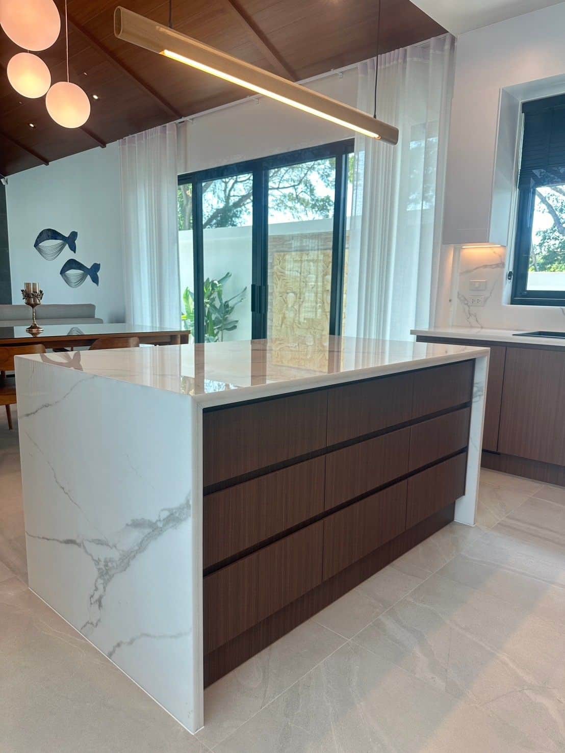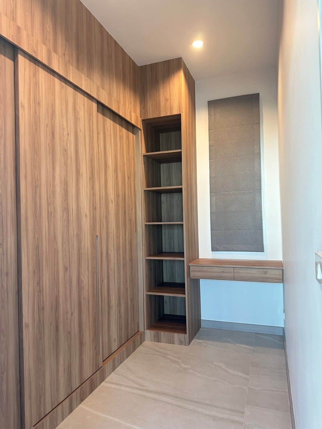- Spacious Bedrooms: 3 beautifully furnished bedrooms, including a master suite with a walk-in closet and two additional bedrooms with built-in closets, all furnished with high-quality teak furniture.