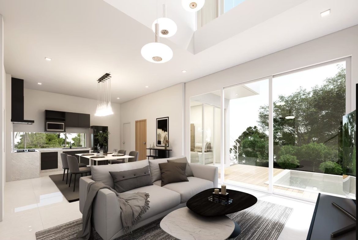 - Spacious Living: This villa boasts 3 generously sized bedrooms and 3 modern bathrooms. The living room features a high ceiling, creating a bright and airy space perfect for relaxation and entertaining.
