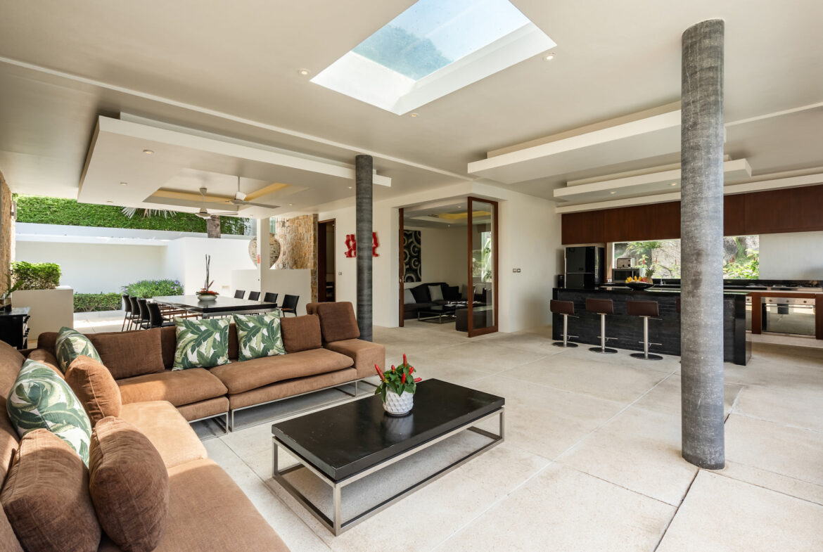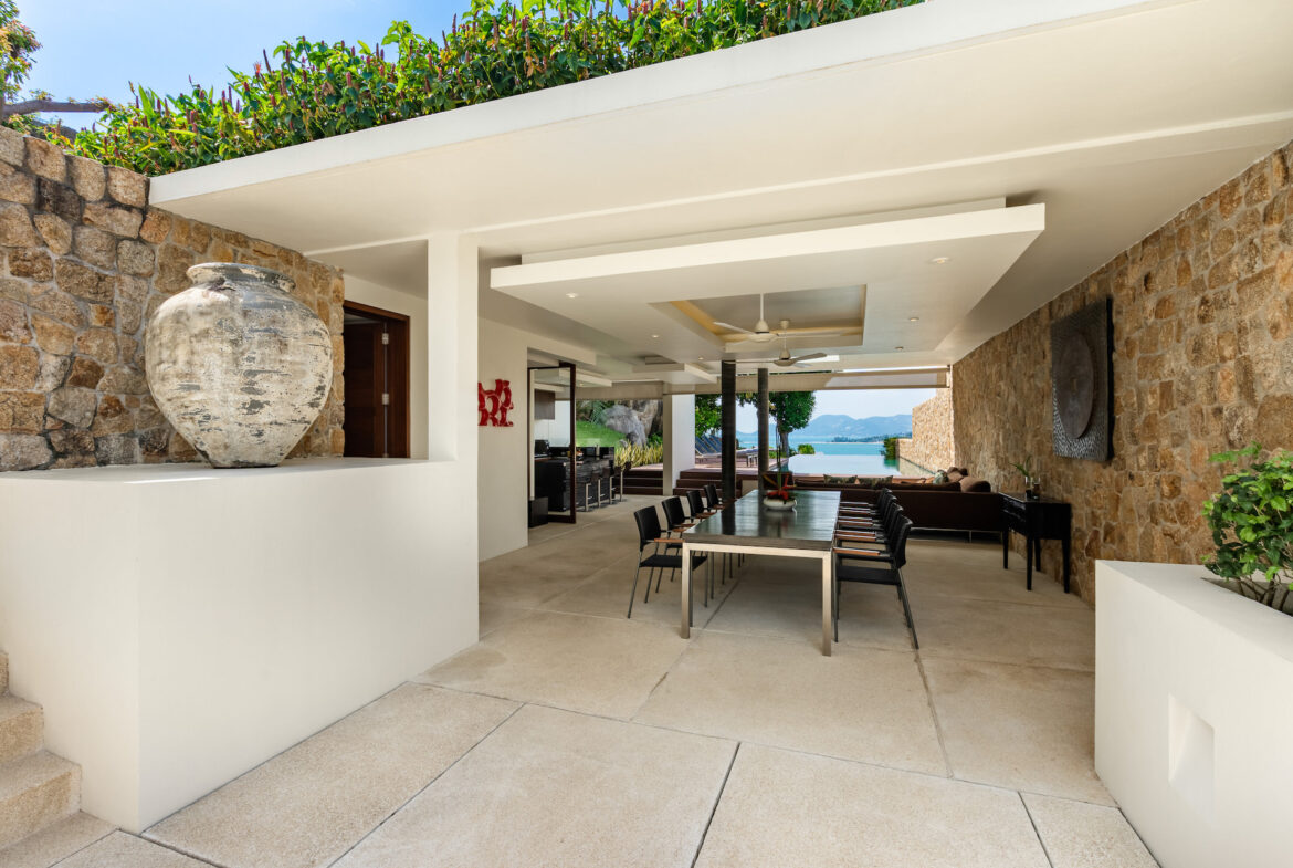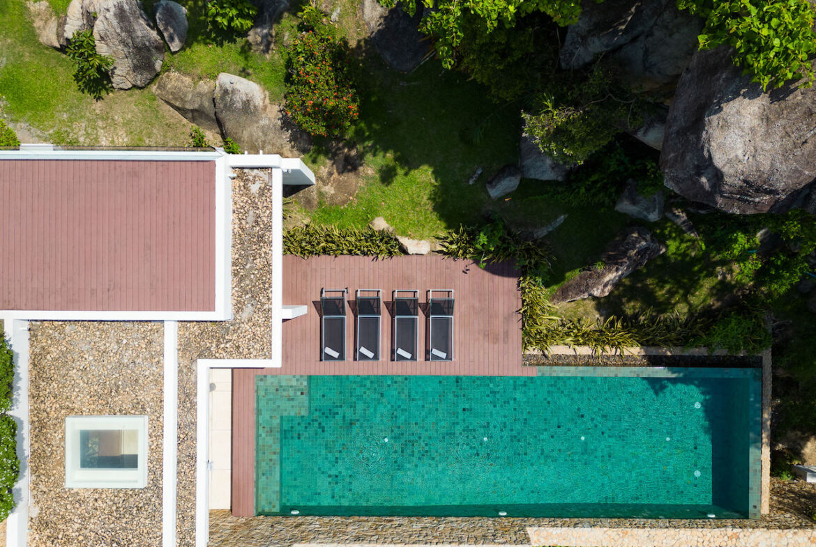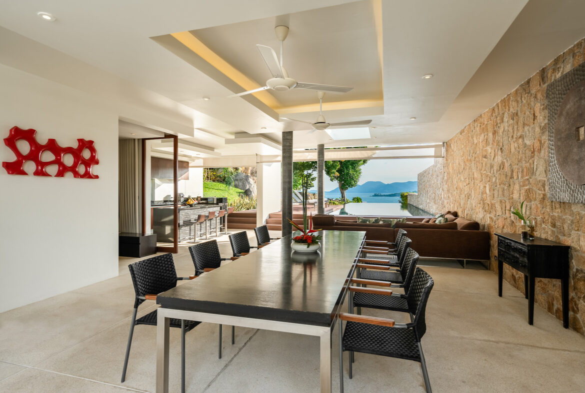 Villa 11A is a duplex villa with three en-suite bedrooms and a striking entrance with landscaped gardens will lead you to a sizable outdoor area. This villa includes a television lounge, open-air living and dining room overlooking the infinity pool and features a breakfast bar and chic kitchen. This villa has stunning sea views and a secluded garden featuring large natural rock formations. The private roof deck is great for sunsets and yoga practice.