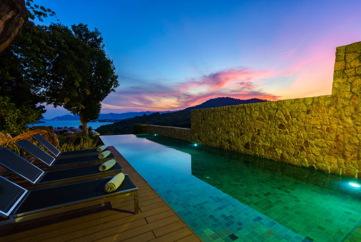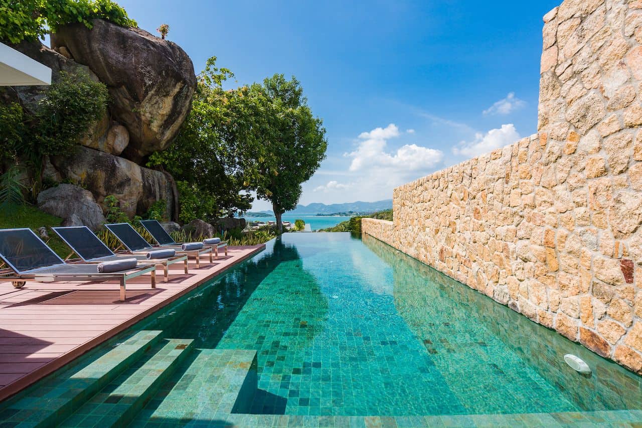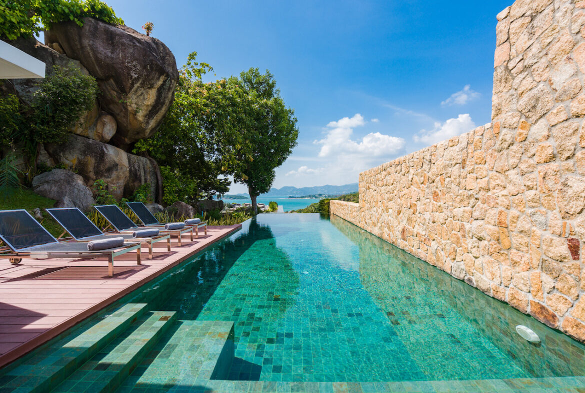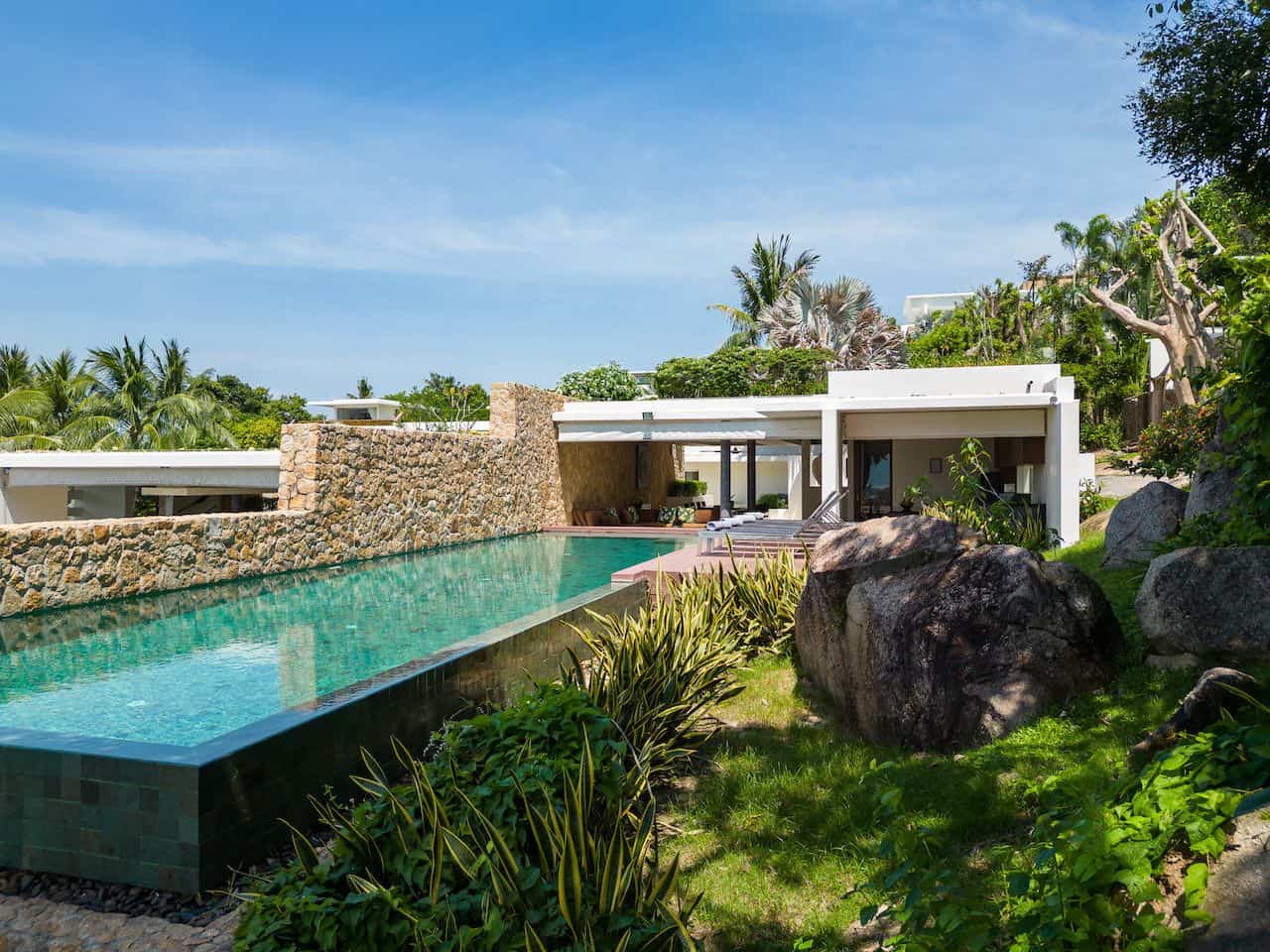 Villa 11A is a duplex villa with three en-suite bedrooms and a striking entrance with landscaped gardens will lead you to a sizable outdoor area. This villa includes a television lounge, open-air living and dining room overlooking the infinity pool and features a breakfast bar and chic kitchen. This villa has stunning sea views and a secluded garden featuring large natural rock formations. The private roof deck is great for sunsets and yoga practice.