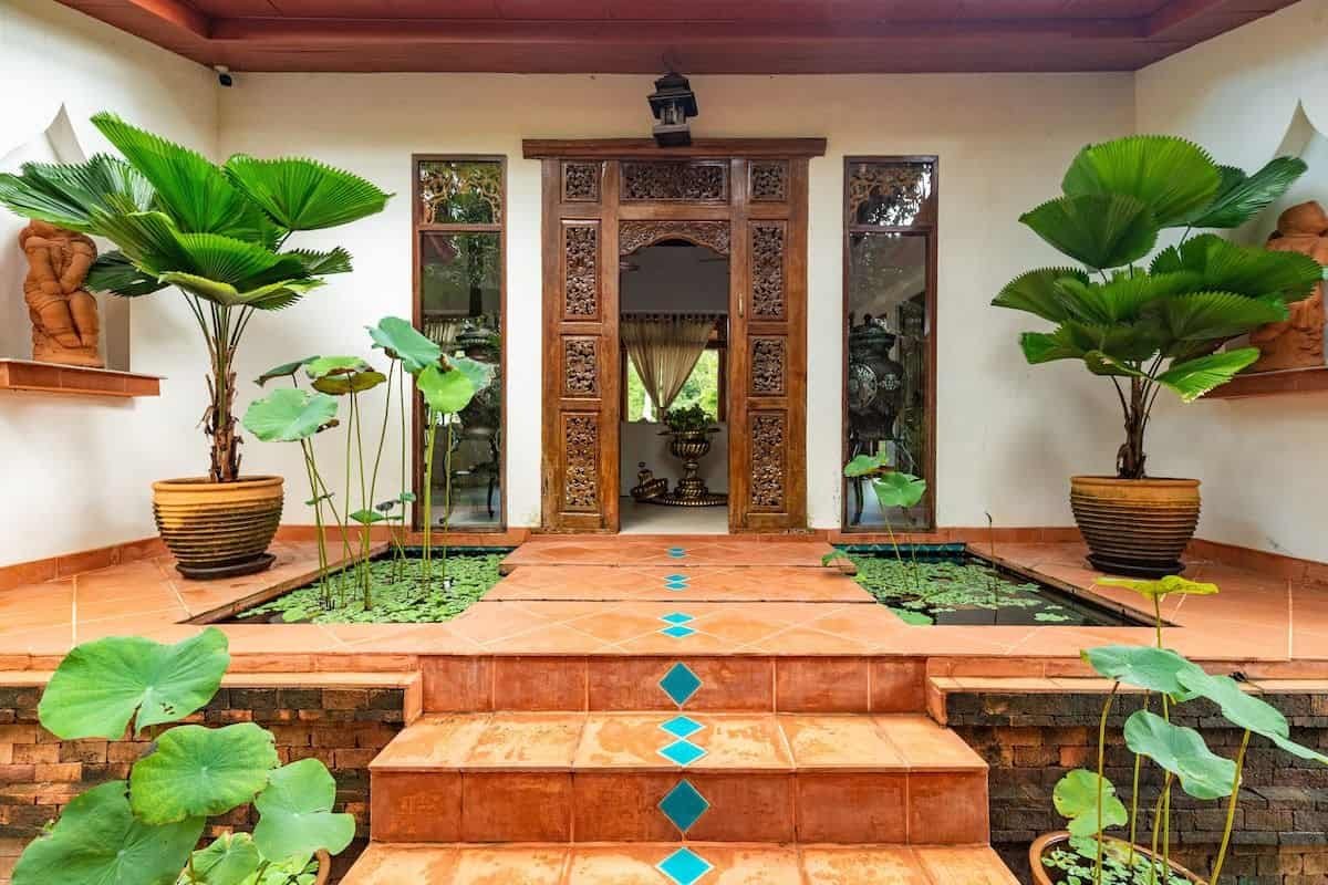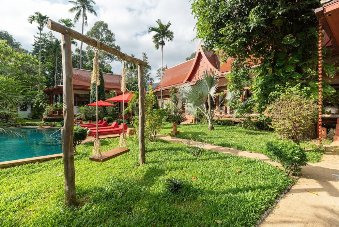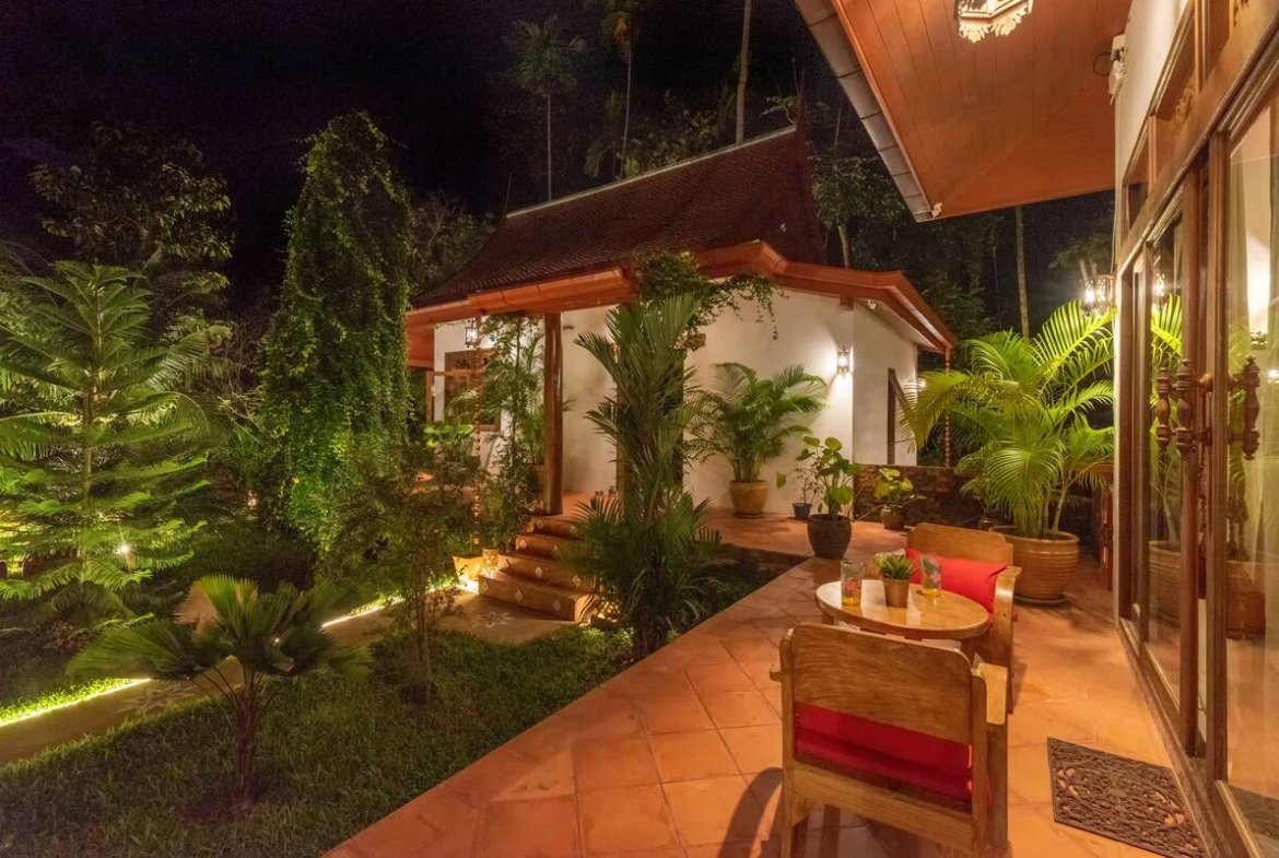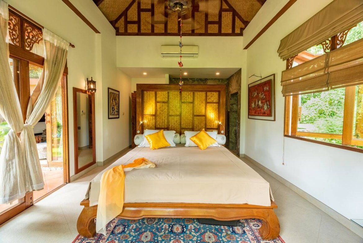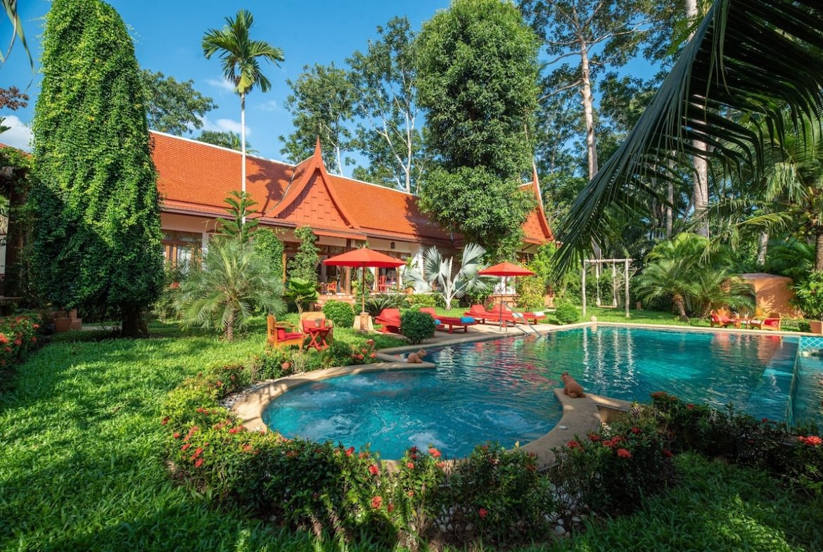 This unique villa boasts five spacious bedrooms, five luxurious bathrooms, and a range of amenities including a large private pool, covered sala and yoga space, home theatre, jacuzzi, and ample storage. The villa’s design blends Thai-Modern and European touches, creating a sophisticated aesthetic.