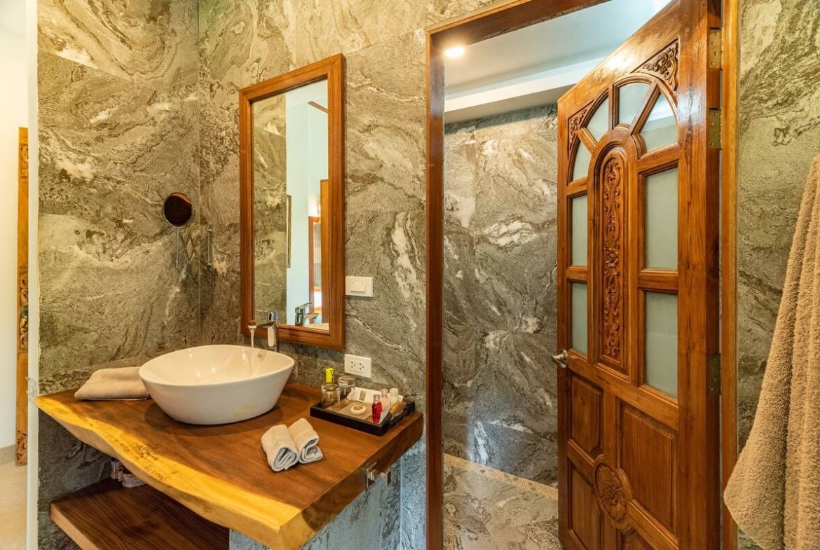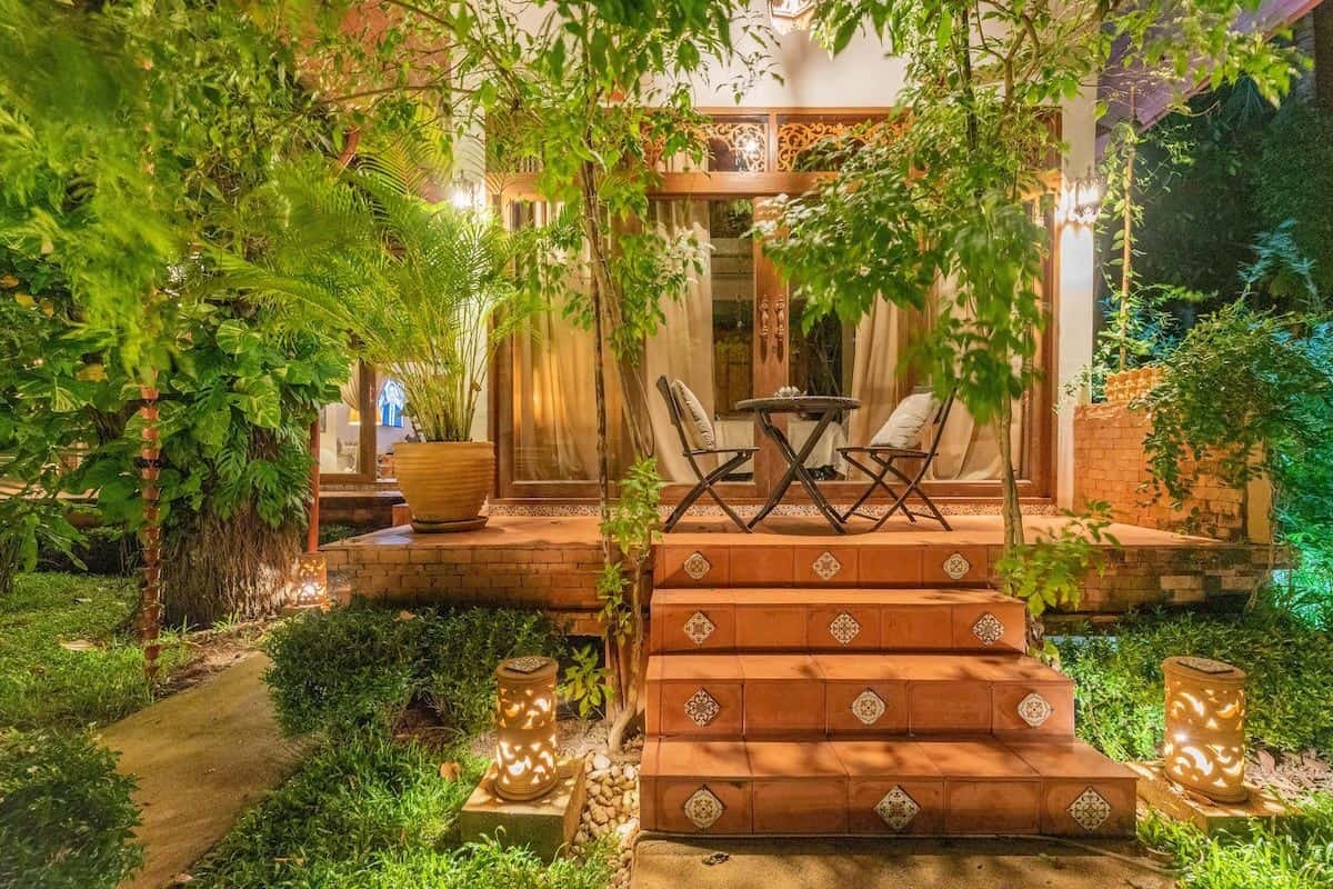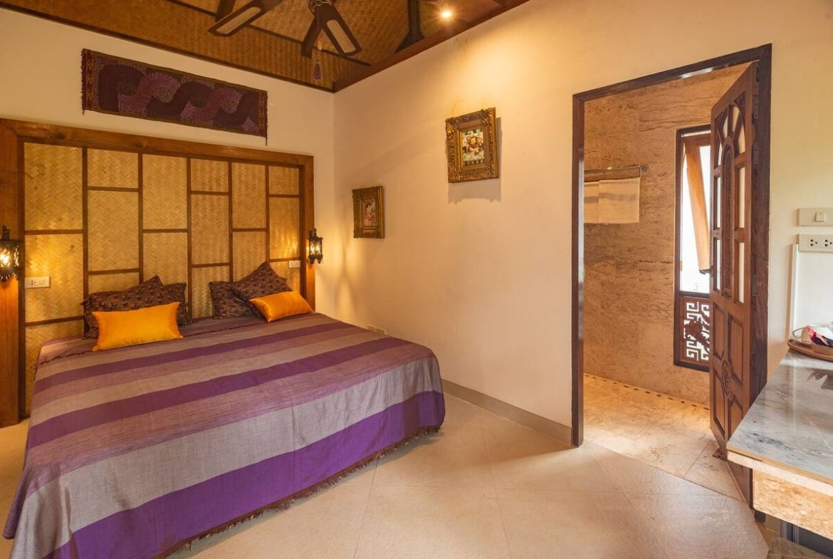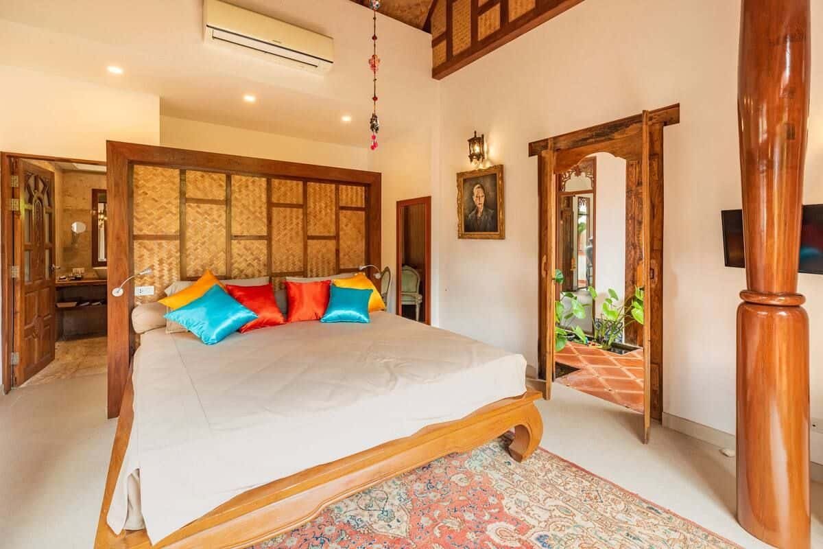 This unique villa boasts five spacious bedrooms, five luxurious bathrooms, and a range of amenities including a large private pool, covered sala and yoga space, home theatre, jacuzzi, and ample storage. The villa’s design blends Thai-Modern and European touches, creating a sophisticated aesthetic.