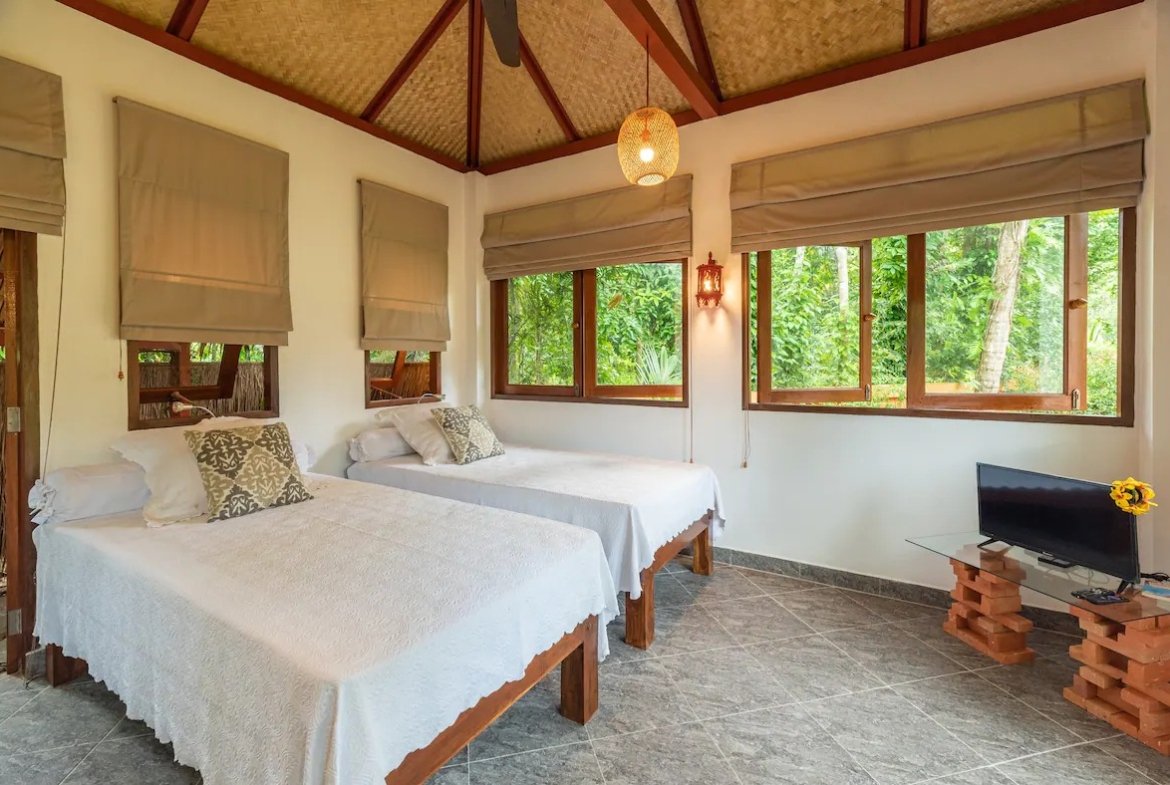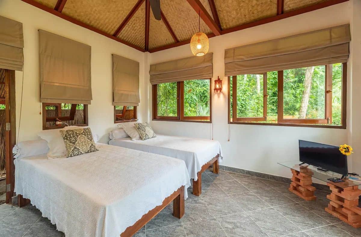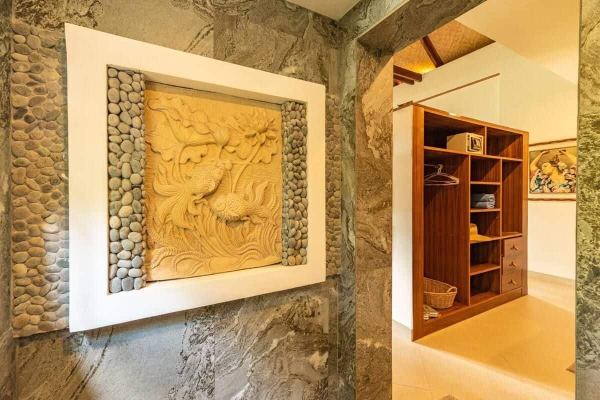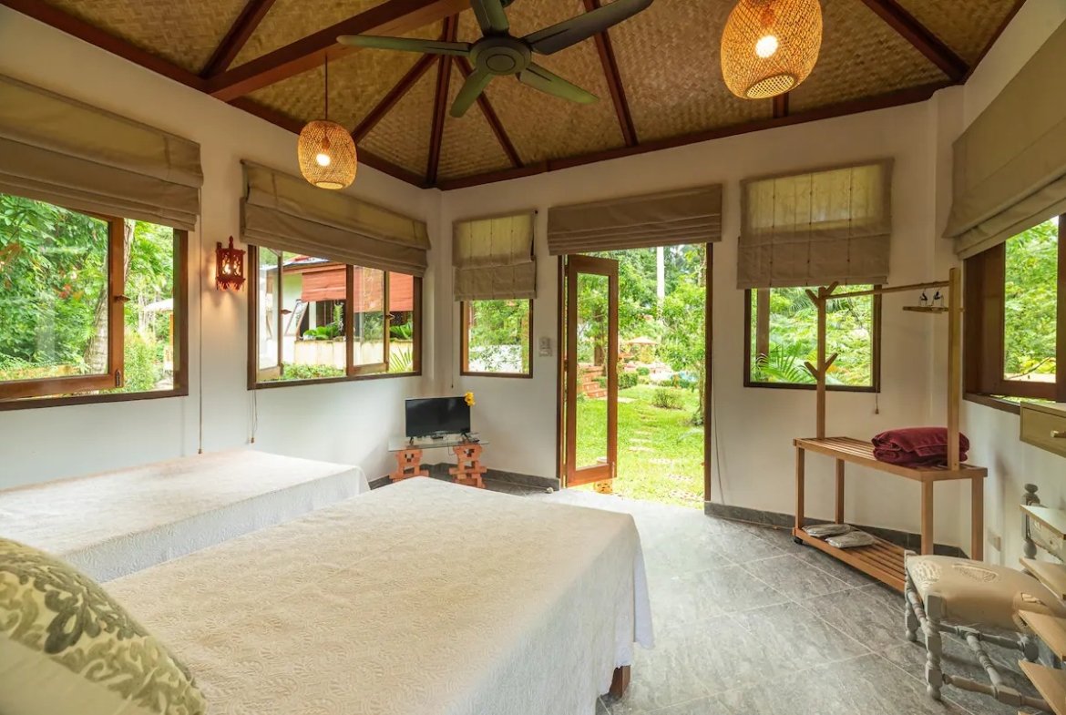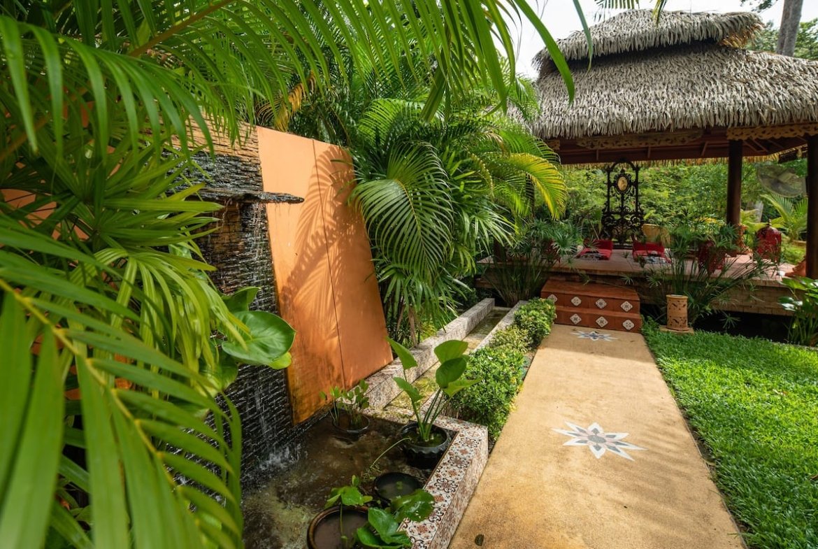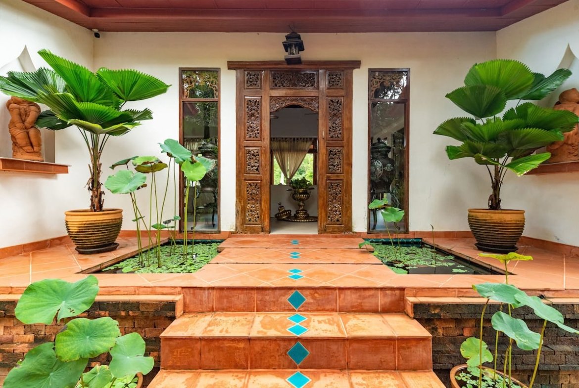 Enjoy the serene atmosphere with features like native mango and coconut trees, two koi ponds, and a tranquil creek. The villa is perfectly secluded yet conveniently located just a short stroll from the beach, local shops, and cafes.