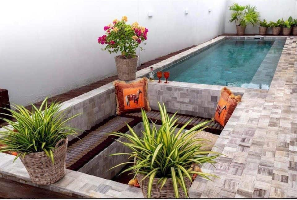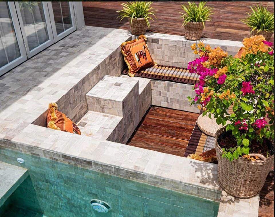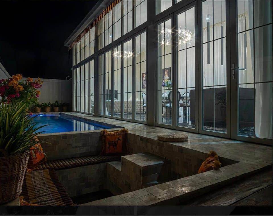 - Private Saltwater Pool: Dive into the stunning 8×3 meter saltwater pool, beautifully tiled with marble, and relax on the redwood terrace that surrounds it.