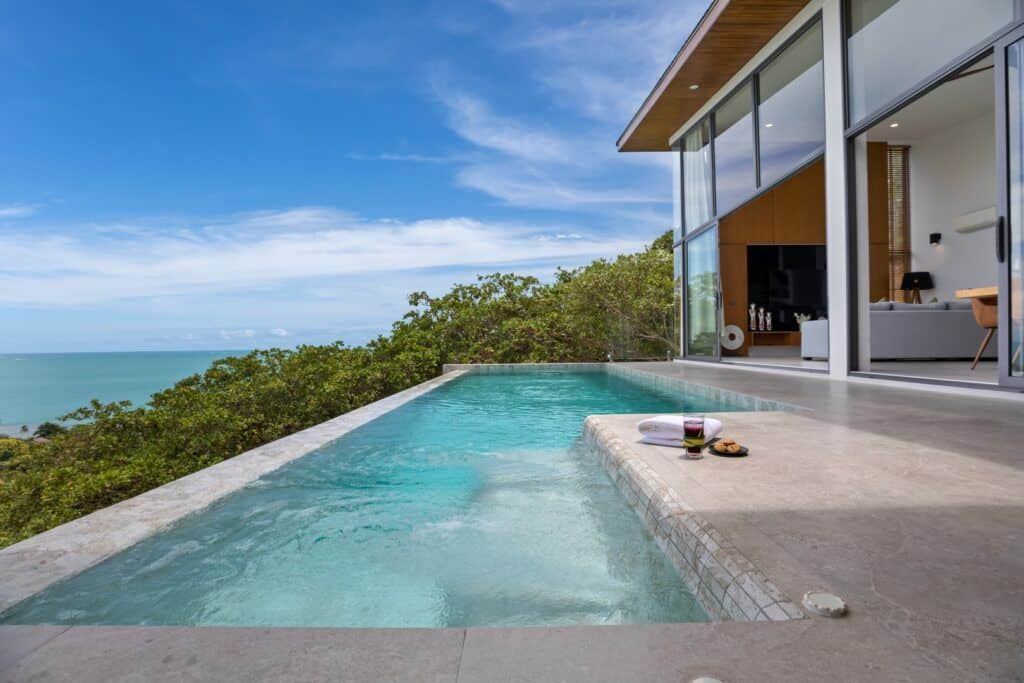 Discover Santi Peak Villas, where luxury meets tranquility amidst mesmerizing ocean views and lush green surroundings. Inspired by the natural beauty of its location, each villa embodies the architect’s vision of spacious open living areas, comfortable interiors, and a modern yet humble design with luxurious touches.