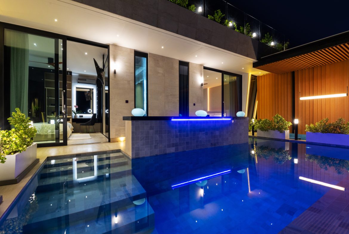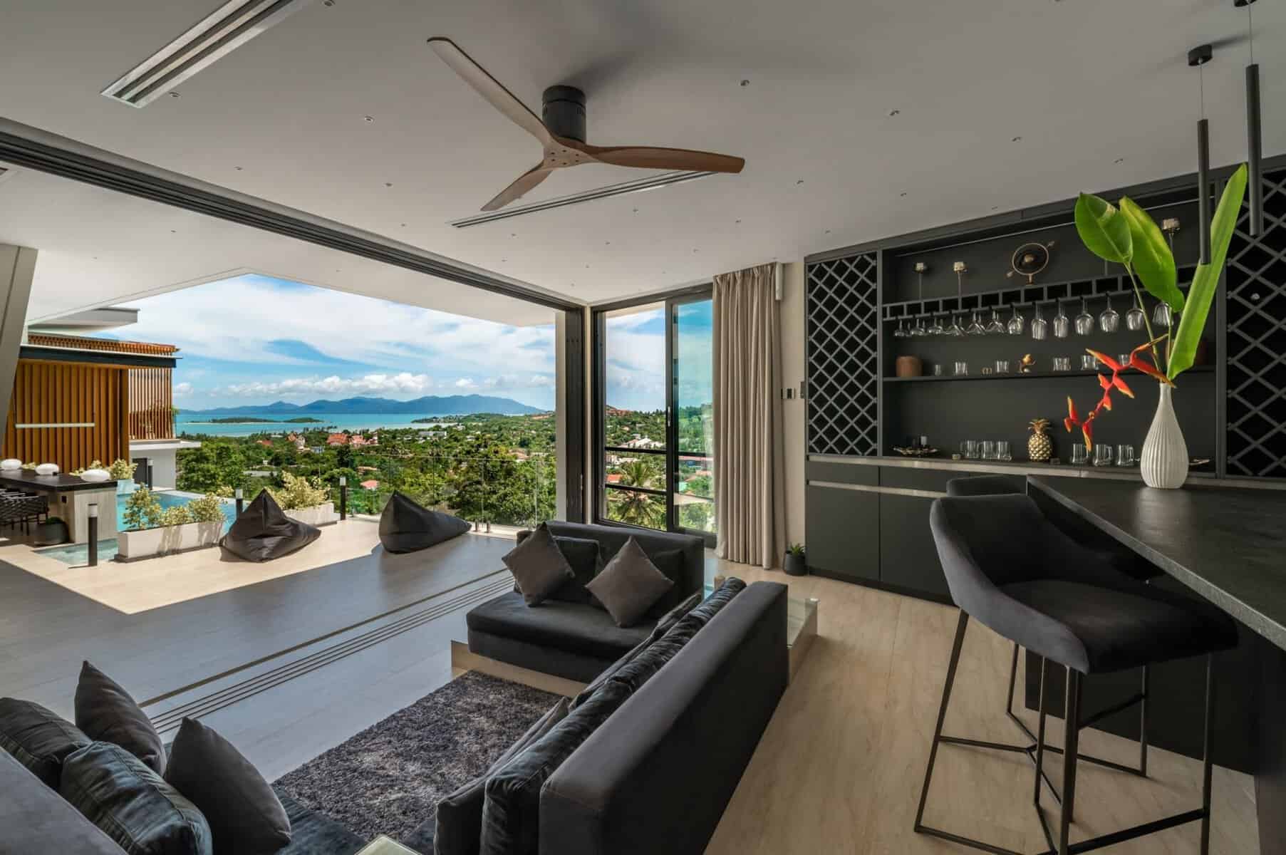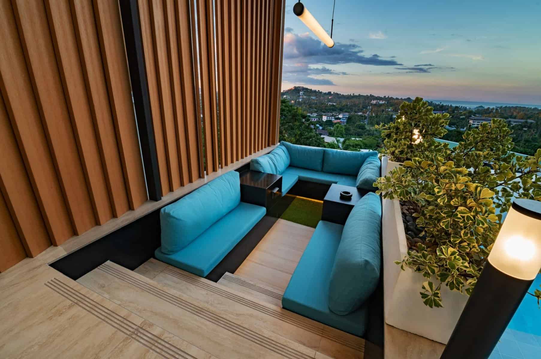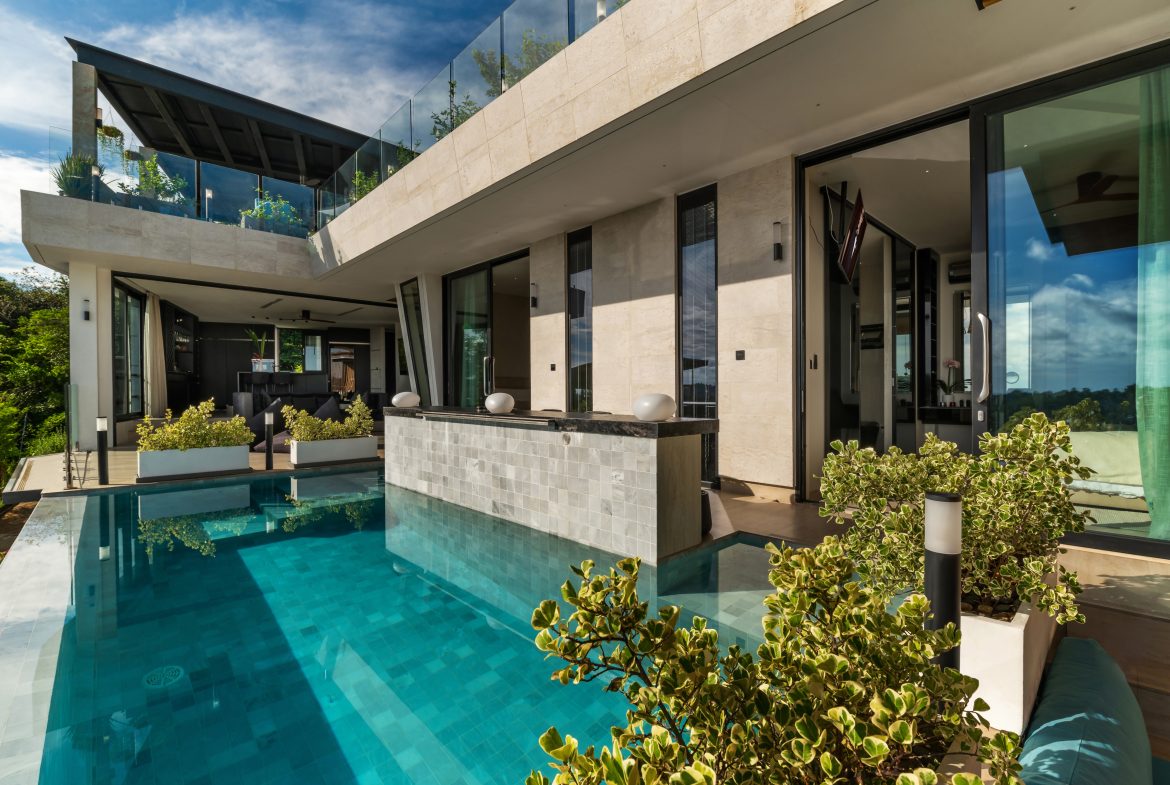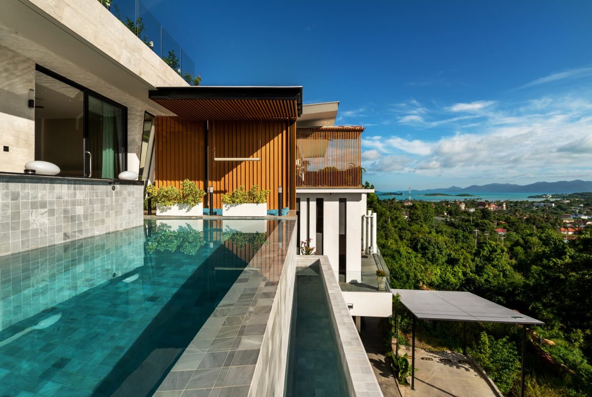 Our villa is thoughtfully designed to blend harmoniously with the surrounding landscape, offering breathtaking views and a tranquil atmosphere. The tropical modern architecture seamlessly integrates modern interiors with the natural beauty of Koh Samui, providing an idyllic escape for relaxation and rejuvenation.