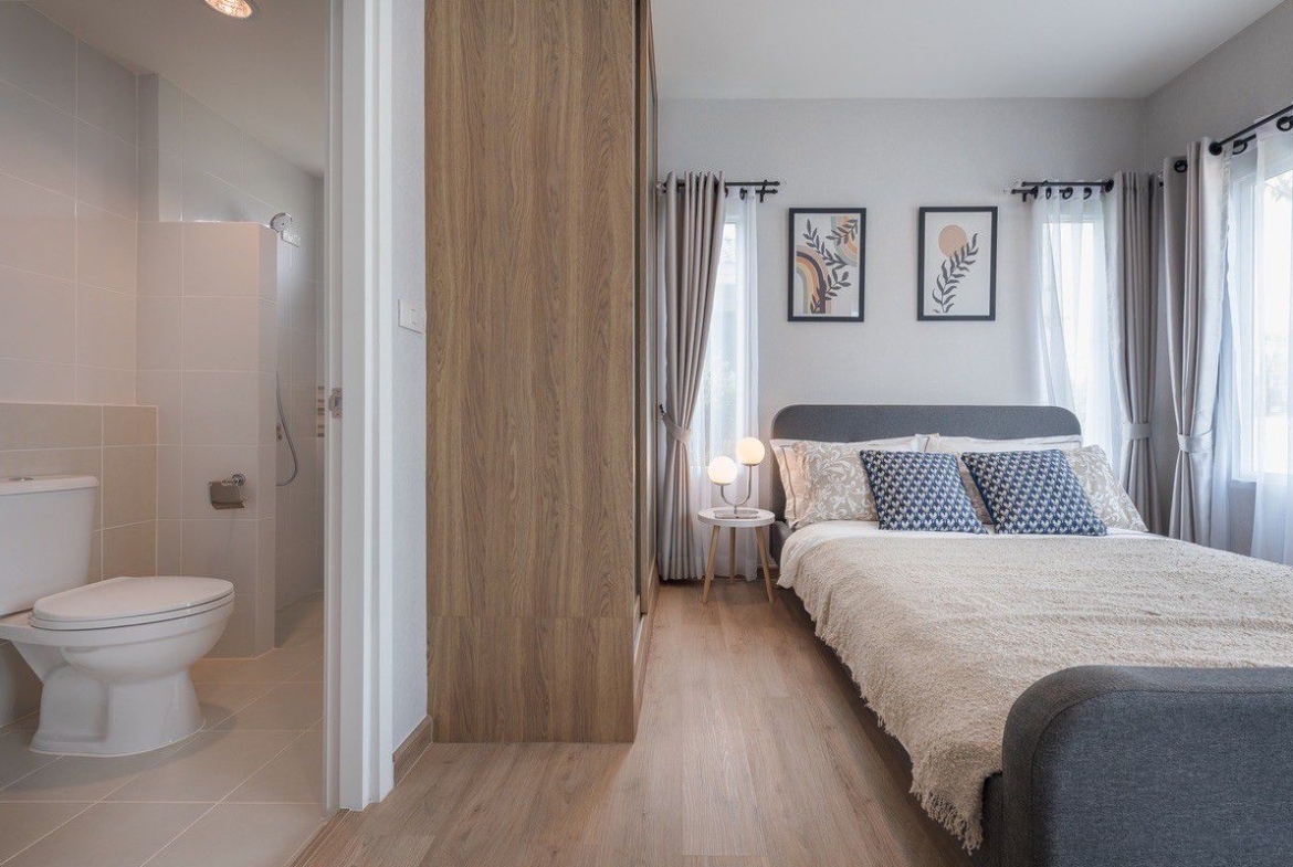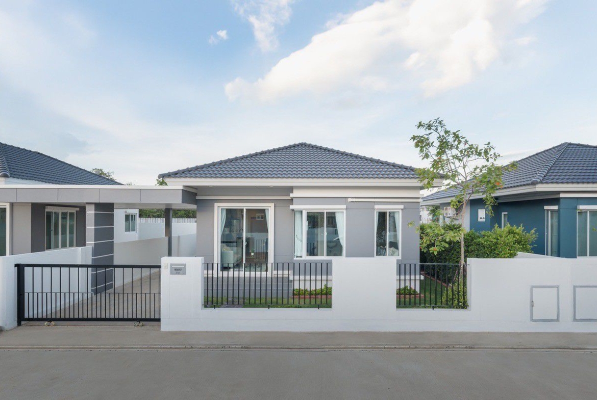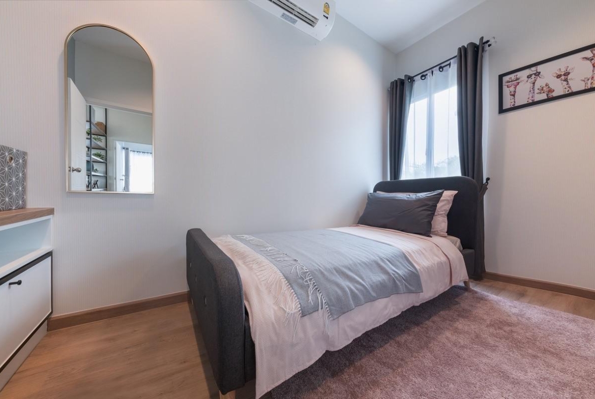 Facilities within the project include clubhouse, reception area, swimming pool, fitness, public park, playground, Key Card Access, CCTV, spiked steel fence around the project. Complete with 24-hour security guards at a starting price of 3.2 million baht.