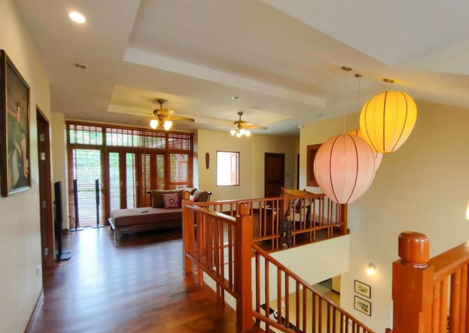 Second floor finished entirely with teak parquet flooring