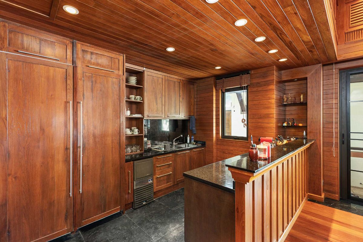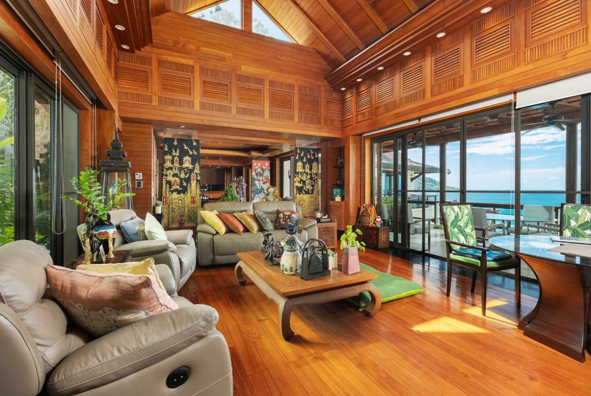 The villa enjoys uninterrupted 180-degree panoramic ocean views. Spacious airy living space of this 4 bedrooms villa blends seamlessly with outdoor area, complete with private infinite-edge swimming pool plus sizable decking, a living sala and large manicured tropical garden with direct ocean access.