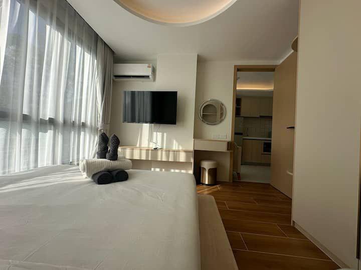 This cozy 27 sqm one-bedroom apartment is located on the 3rd floor of the newly built Fantasea Condo in Kamala, Phuket. Ideally positioned just 800 meters from Kamala Beach and within walking distance to the famous Fantasea Show, this unit is perfect for holiday living or as a rental investment.