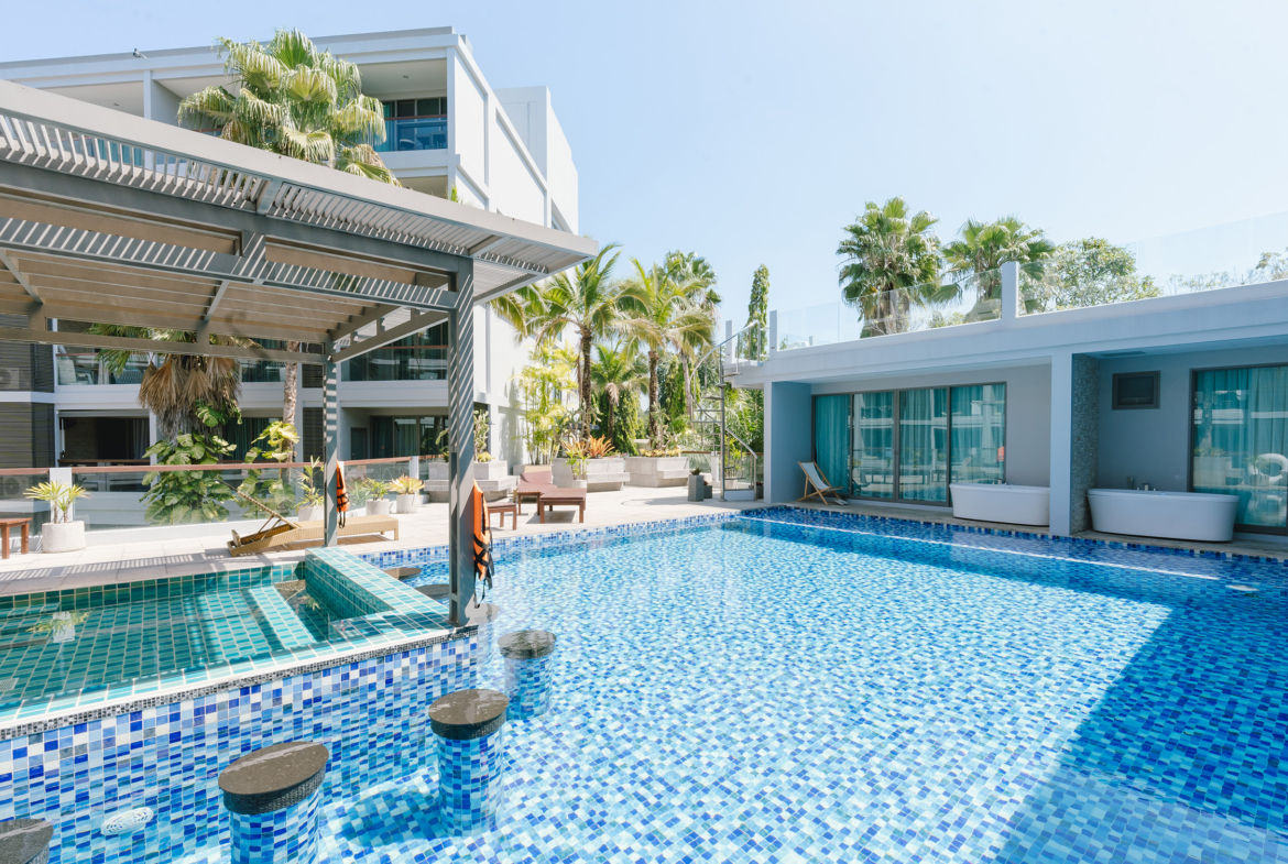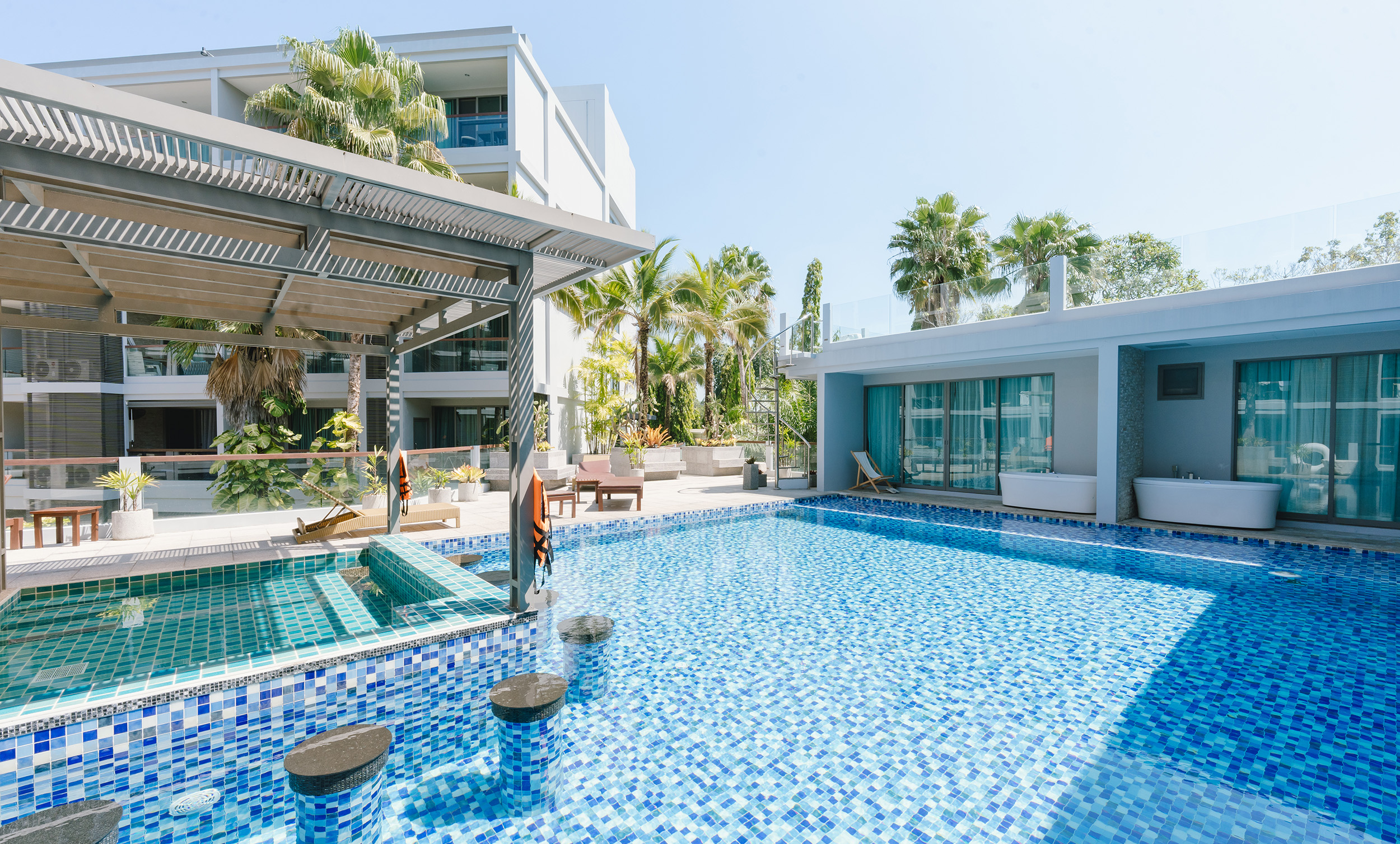 About The Regent Bangtao – Phuket Condo Hotel Concept Completed in 2015, The Regent Bangtao is a stylish condo-hotel development featuring two buildings and a total of 151 apartments, including studios, 1-bedroom, 2-bedroom, and 3-bedroom units. The project is known for its warm beige and brown interiors, practical layouts, and a jacuzzi on nearly every balcony, offering a true resort-style experience.