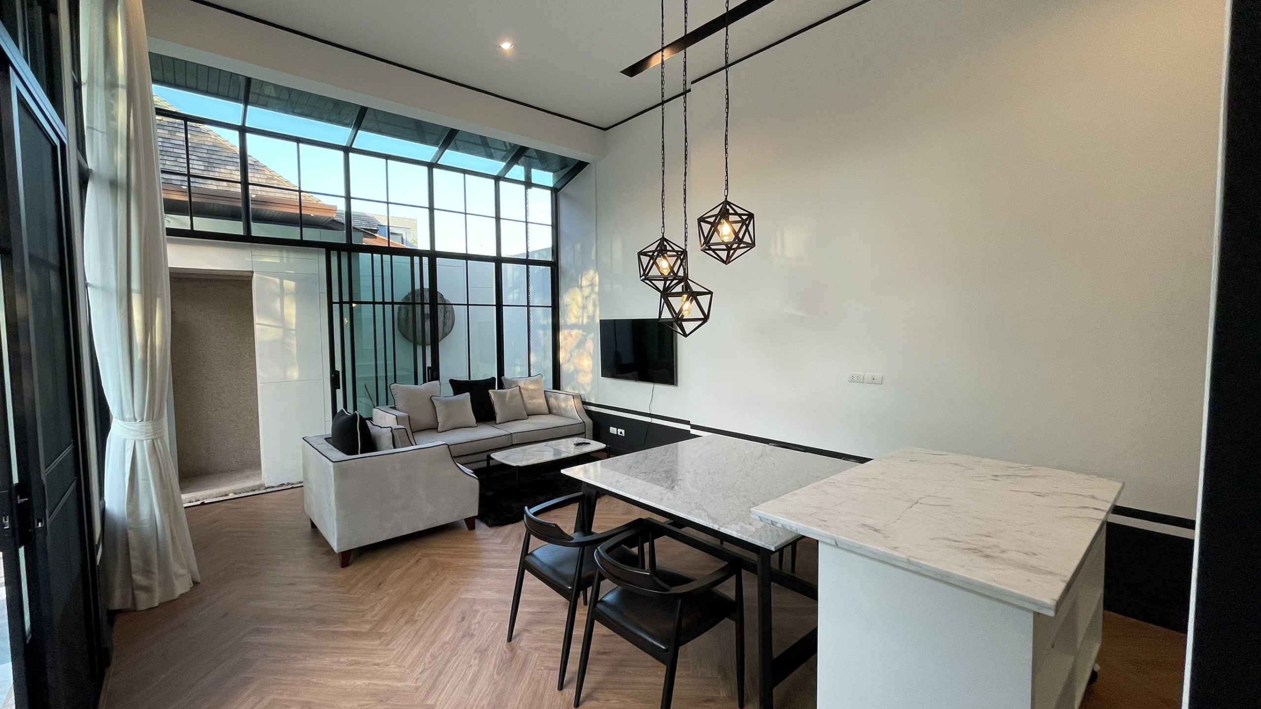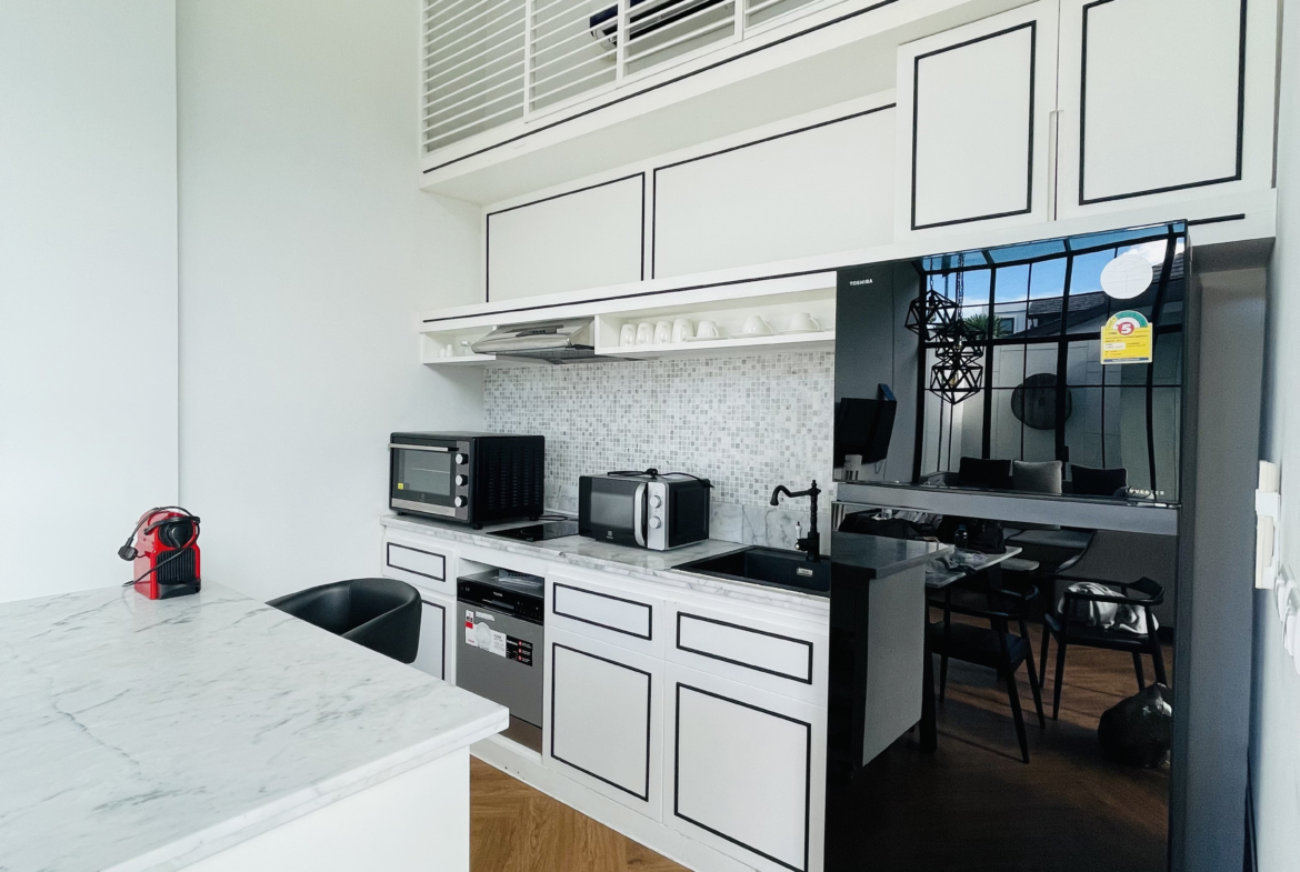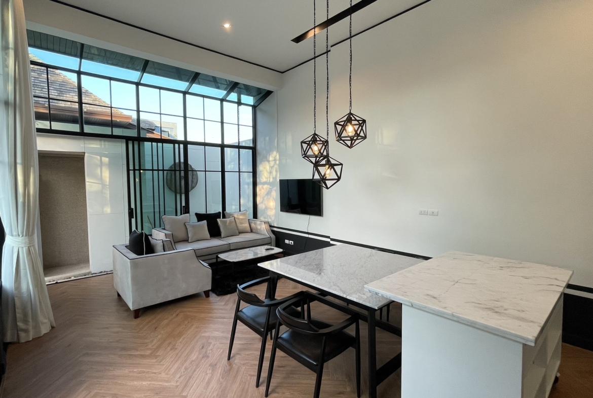 Experience modern tropical living at its best with this beautifully designed 2-bedroom villa located in the popular Mono Villa Pasak. Nestled in a peaceful and secure community, this villa offers both comfort and style, perfect for long-term living or a relaxing retreat.