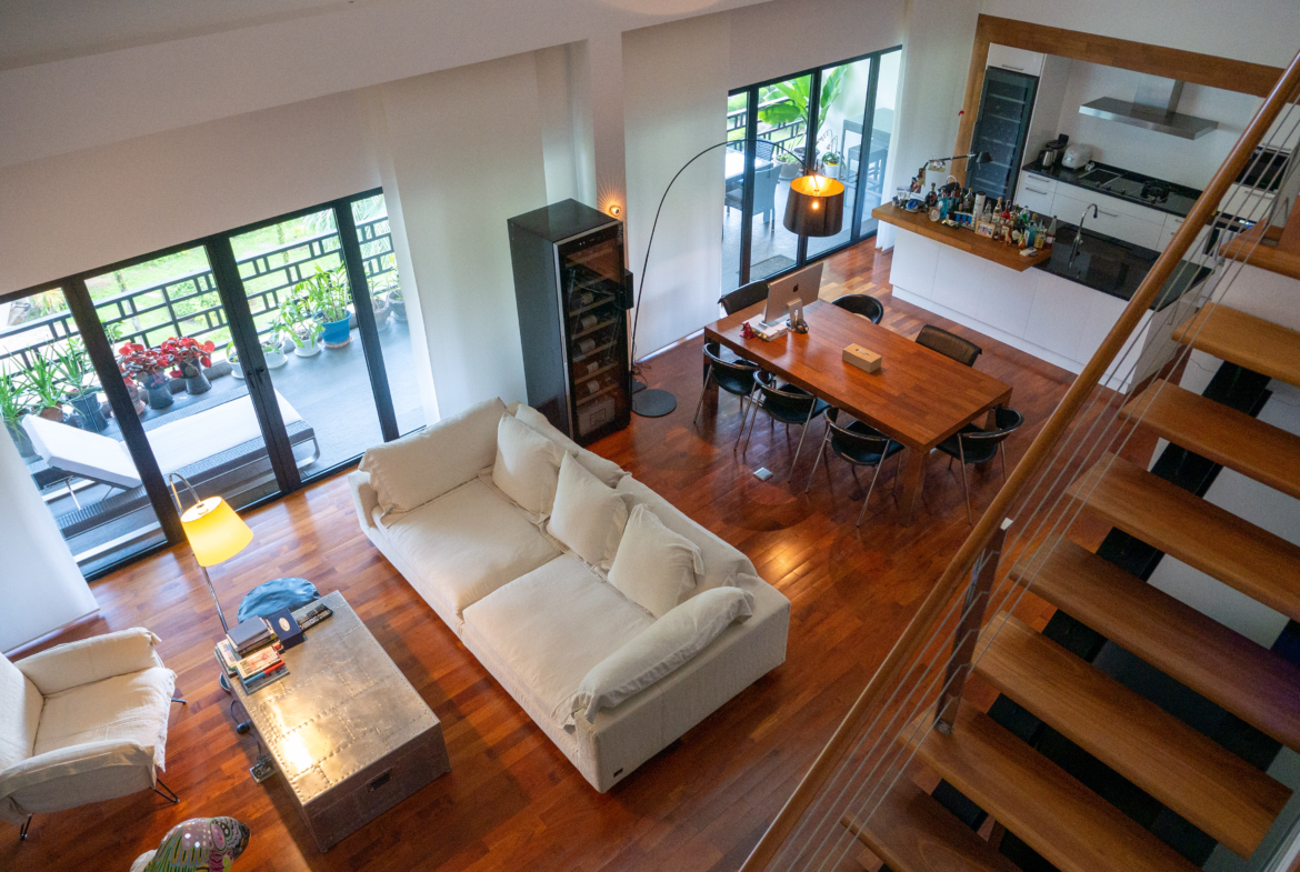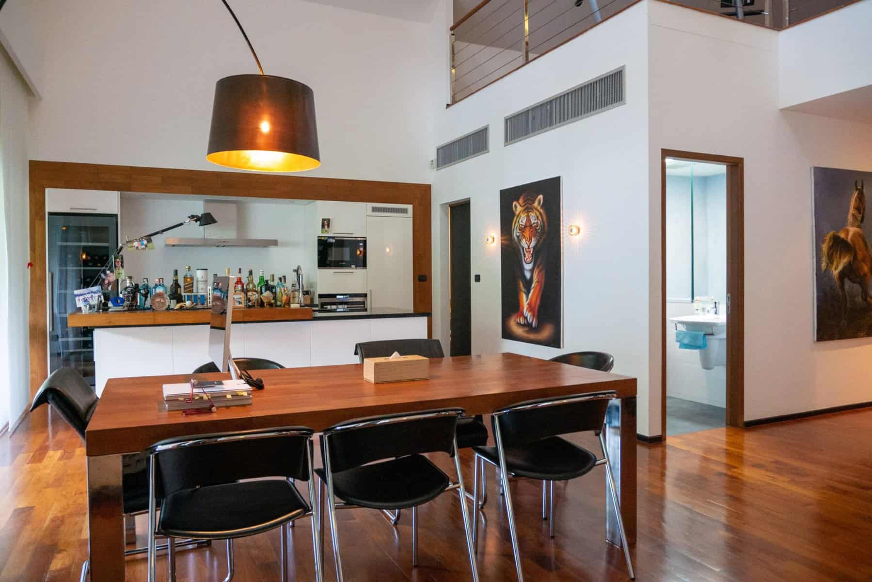 This penthouse offers a luxurious living experience with breathtaking lake views and versatile spaces that cater to various lifestyle needs.