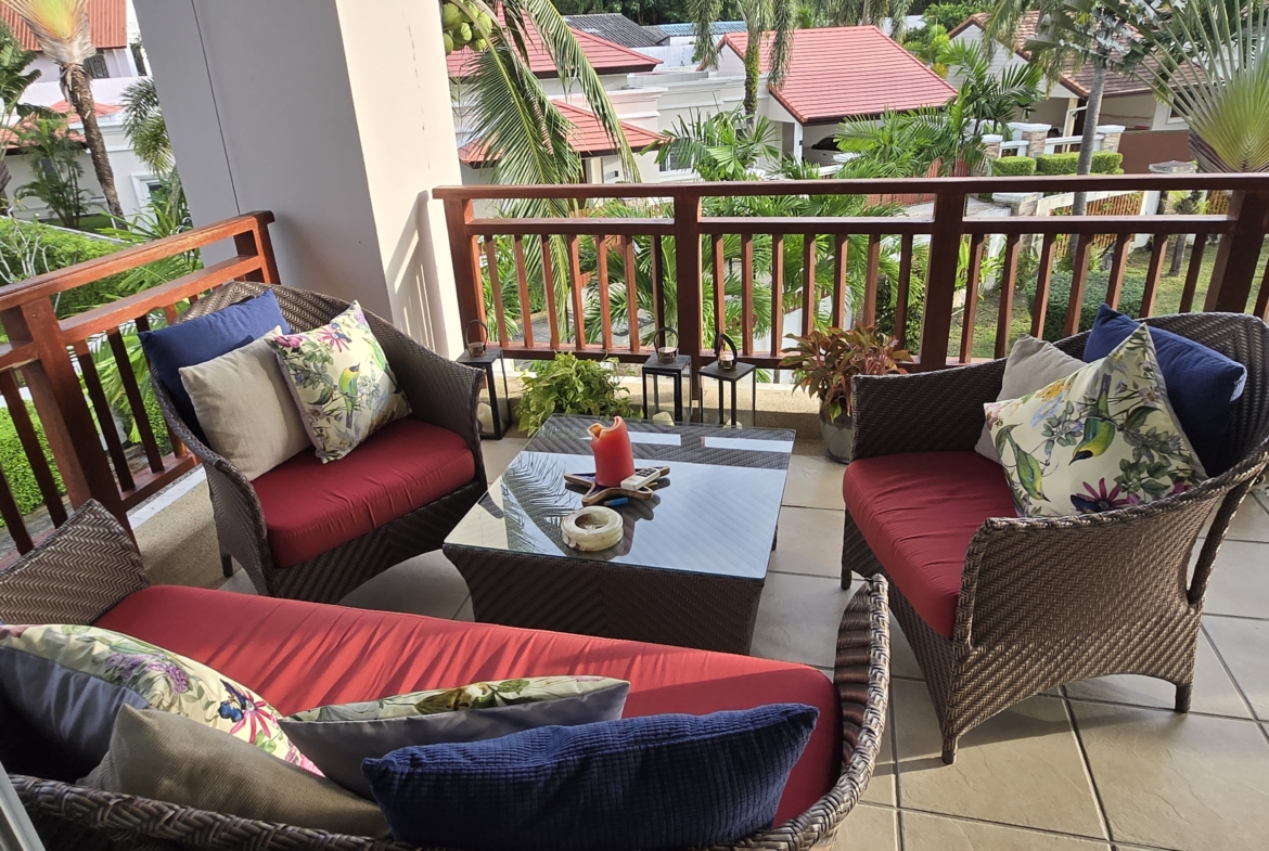 This elegant 3-bedroom, 2-bathroom apartment is located in the exclusive Choeng Thale Condo and Villa development. Offering 200 m² of living space on the second floor, the property is fully furnished and designed for comfort and convenience.