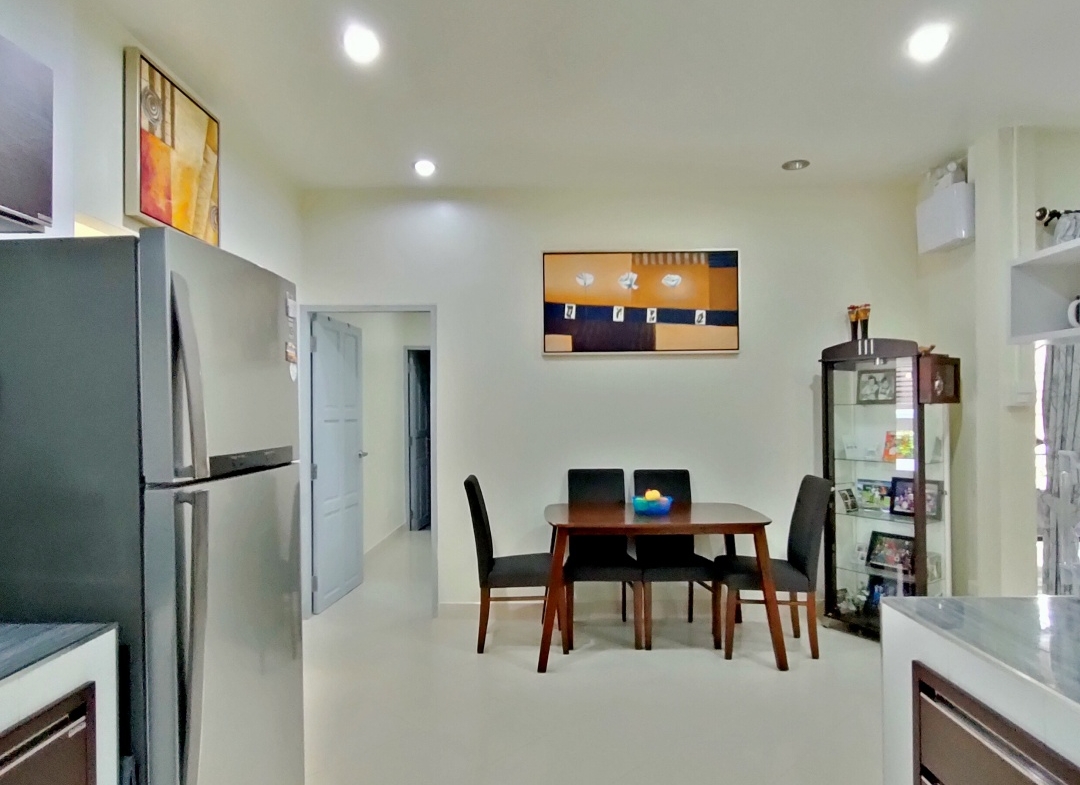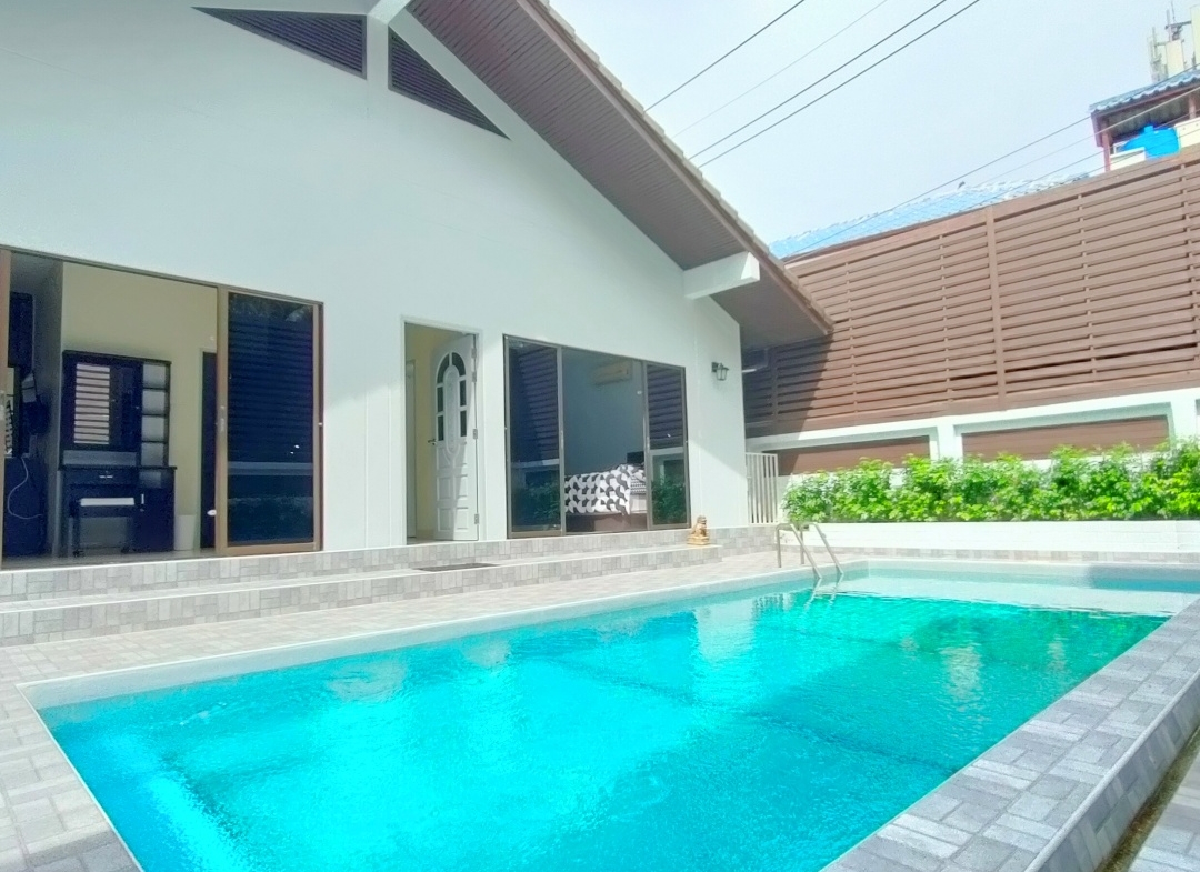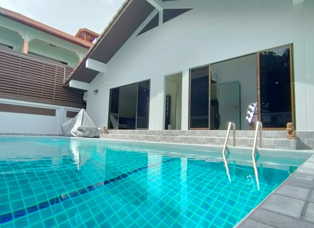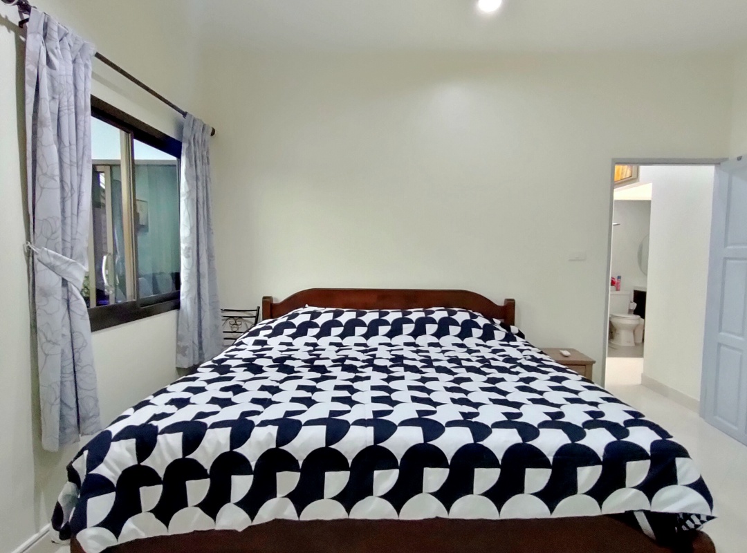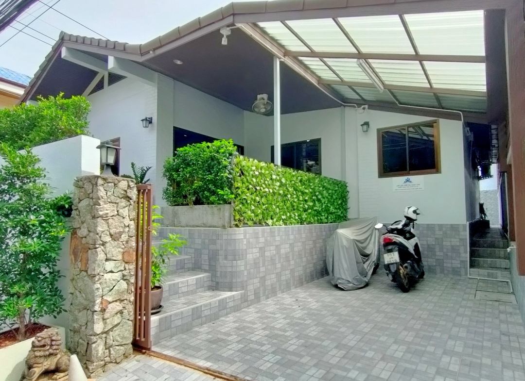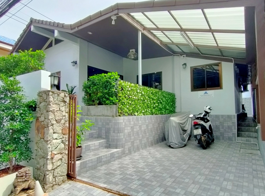 This stunning single-story, three-bedroom villa with a private pool is now available for sale at 7,200,000 THB. Nestled on Patong Hill, it offers breathtaking mountain views and is set in a serene and peaceful neighborhood. The villa provides easy access to the main road, making it convenient to reach Patong, Kathu, and Phuket Town. The residence features three spacious bedrooms and three bathrooms, all designed with a modern and minimalist aesthetic. The predominately white interior creates a clean and tranquil atmosphere. The private swimming pool is perfect for cooling off on hot days, complemented by an outdoor shower area for added convenience. The outdoor space is fully tiled, ensuring low maintenance, and is adorned with lush green plants that bring a touch of nature to your doorstep. There is also ample parking space for one to two bikes and a car, and the property is secured with CCTV for peace of mind. This villa is an ideal haven for those seeking both comfort and convenience in a picturesque setting.