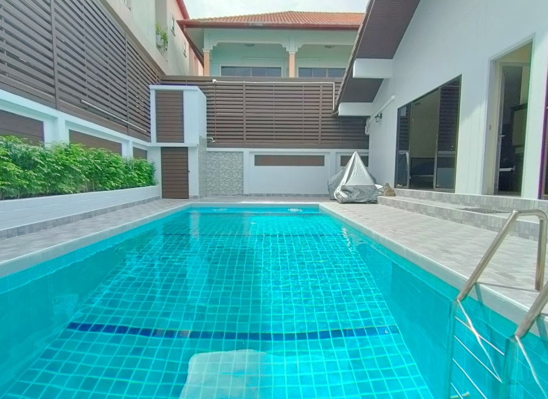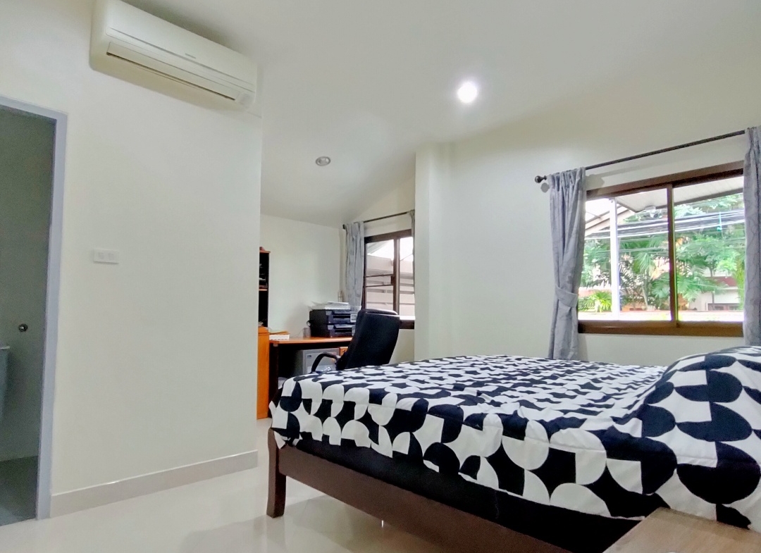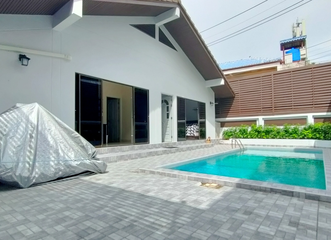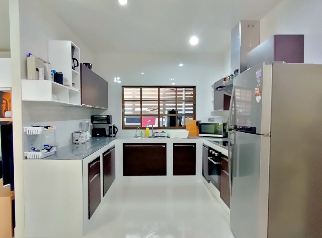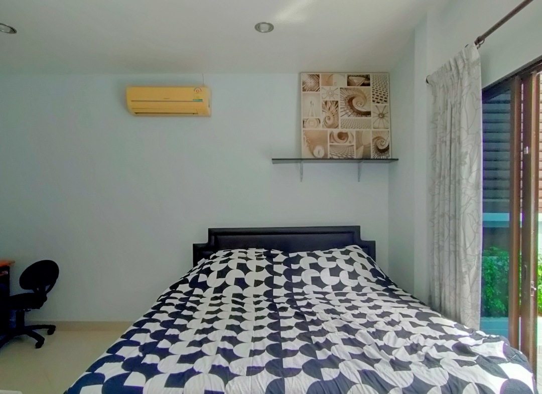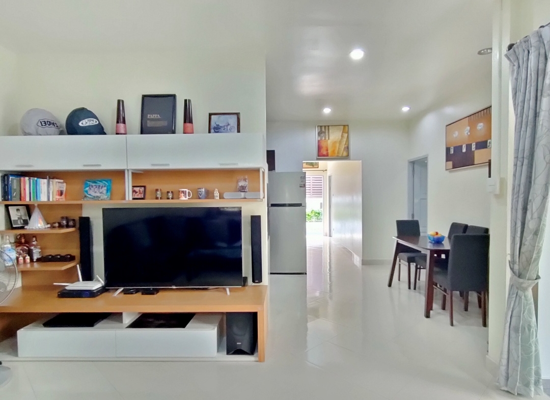 This stunning single-story, three-bedroom villa with a private pool is now available for sale at 7,200,000 THB. Nestled on Patong Hill, it offers breathtaking mountain views and is set in a serene and peaceful neighborhood. The villa provides easy access to the main road, making it convenient to reach Patong, Kathu, and Phuket Town. The residence features three spacious bedrooms and three bathrooms, all designed with a modern and minimalist aesthetic. The predominately white interior creates a clean and tranquil atmosphere. The private swimming pool is perfect for cooling off on hot days, complemented by an outdoor shower area for added convenience. The outdoor space is fully tiled, ensuring low maintenance, and is adorned with lush green plants that bring a touch of nature to your doorstep. There is also ample parking space for one to two bikes and a car, and the property is secured with CCTV for peace of mind. This villa is an ideal haven for those seeking both comfort and convenience in a picturesque setting.
