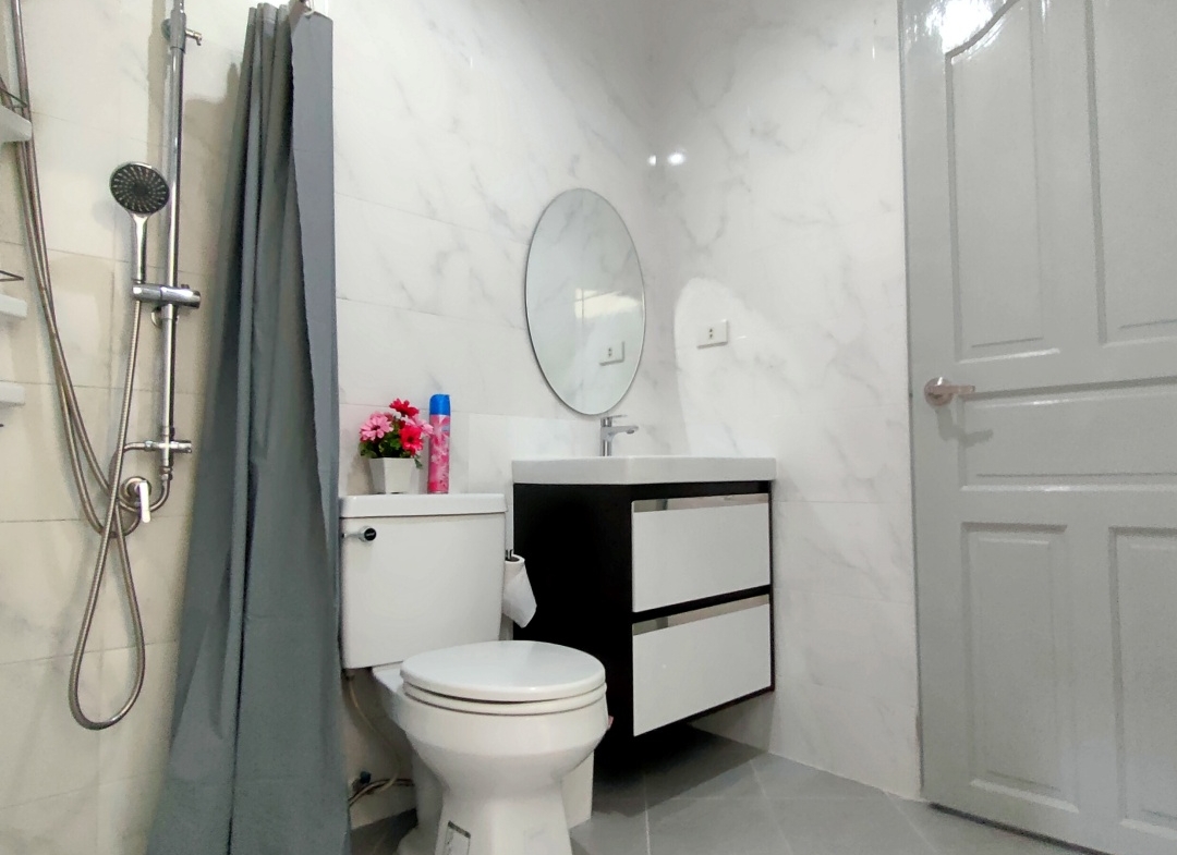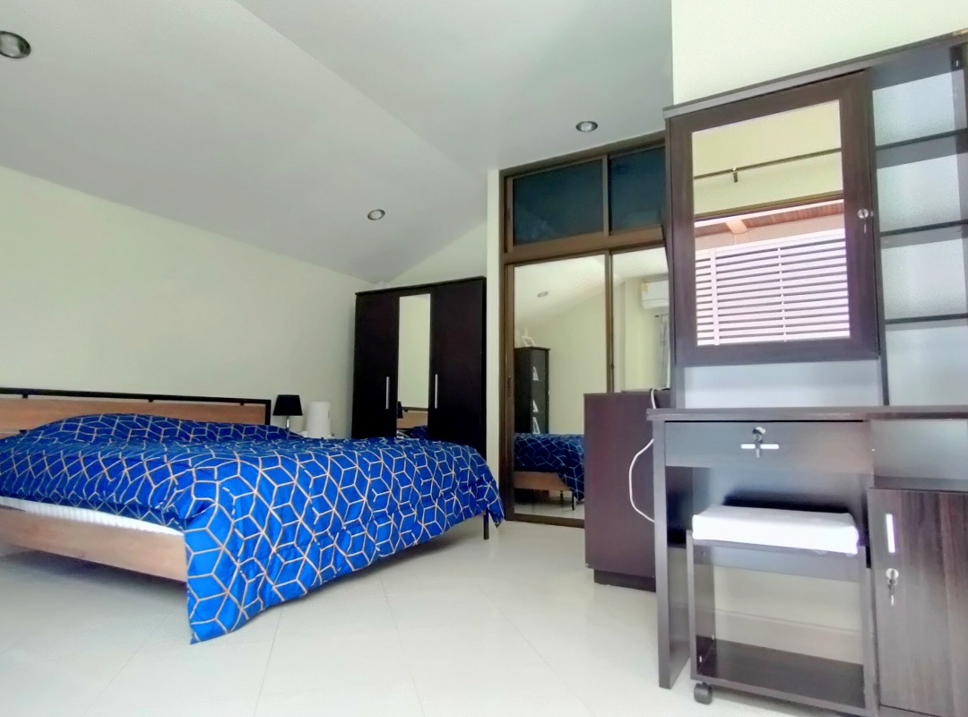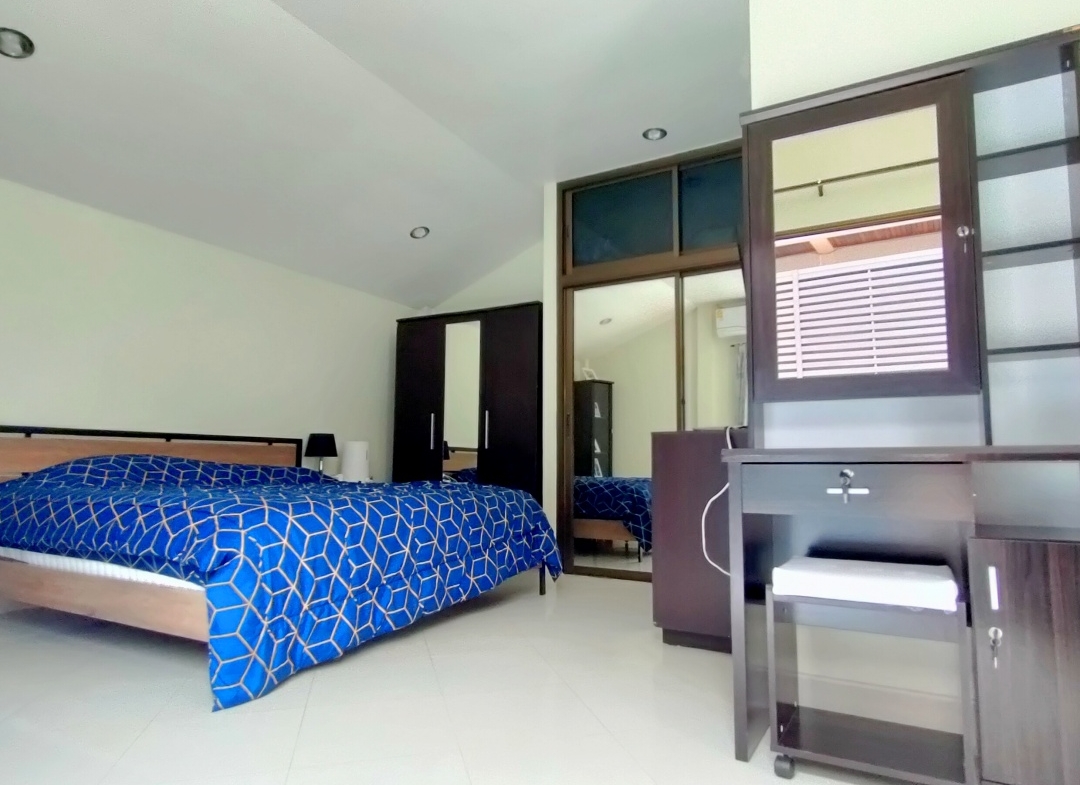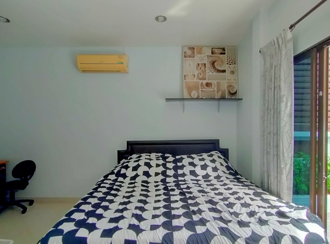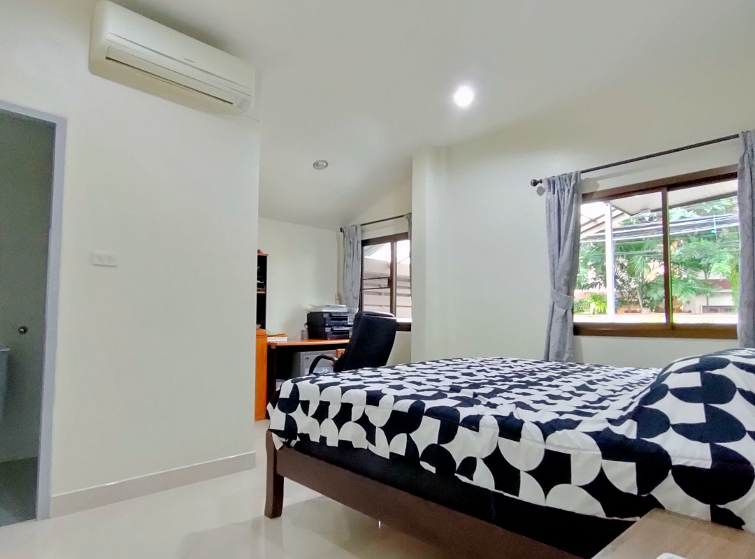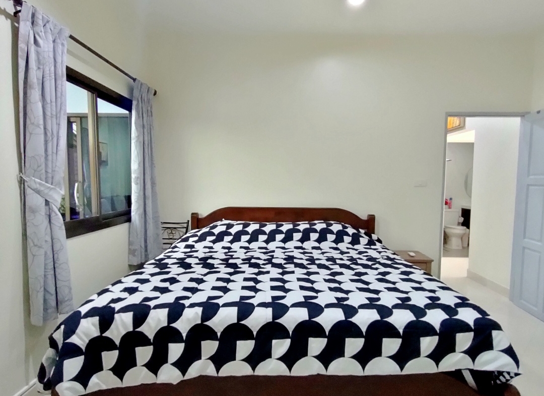 This stunning single-story, three-bedroom villa with a private pool is now available for sale at 7,200,000 THB. Nestled on Patong Hill, it offers breathtaking mountain views and is set in a serene and peaceful neighborhood. The villa provides easy access to the main road, making it convenient to reach Patong, Kathu, and Phuket Town. The residence features three spacious bedrooms and three bathrooms, all designed with a modern and minimalist aesthetic. The predominately white interior creates a clean and tranquil atmosphere. The private swimming pool is perfect for cooling off on hot days, complemented by an outdoor shower area for added convenience. The outdoor space is fully tiled, ensuring low maintenance, and is adorned with lush green plants that bring a touch of nature to your doorstep. There is also ample parking space for one to two bikes and a car, and the property is secured with CCTV for peace of mind. This villa is an ideal haven for those seeking both comfort and convenience in a picturesque setting.