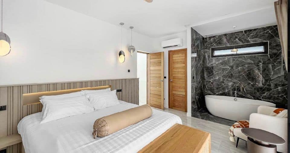 | Explore luxury living in the heart of Rawai, Phuket, with this stunning 4-bedroom villa nestled in the prestigious Rawai Garden Villa community. Spanning 217 square meters, this meticulously designed residence offers a perfect blend of modern comforts and tropical tranquility. Boasting a private swimming pool ensconced within a lush, landscaped garden, this villa provides an idyllic retreat for relaxation and entertainment. Enjoy serene outdoor living spaces including a terrace and balcony, ideal for soaking in the tropical ambiance and entertaining guests against a backdrop of verdant surroundings. Inside, the villa features a fully equipped Western kitchen complete with modern appliances, enhancing both functionality and style. The spacious bedrooms provide ample accommodation, with the master bedroom offering the indulgence of a bathtub for ultimate relaxation. Additional conveniences include indoor parking for one car and extra outdoor parking spaces, ensuring practicality for residents and guests alike. Security is paramount with comprehensive measures implemented throughout the project, providing peace of mind within this gated community. Situated in Rawai, renowned for its pristine beaches, vibrant local markets, and laid-back atmosphere, this villa presents an exceptional opportunity for those seeking a luxurious lifestyle in one of Phuket’s most coveted locations. Offered at ฿20,900,000 (฿96,313 per sqm), this property represents an attractive investment in Phuket’s thriving real estate market. Schedule a viewing today and envision yourself living amidst the beauty and tranquility of Rawai Garden Villa. |