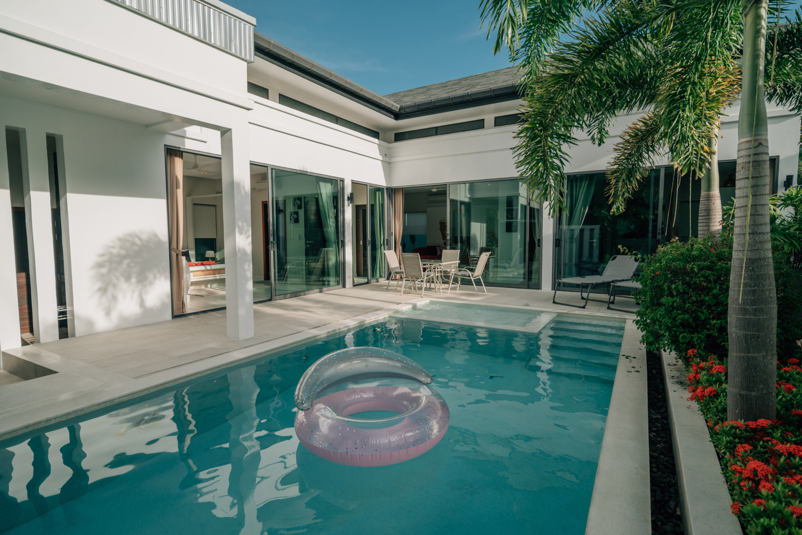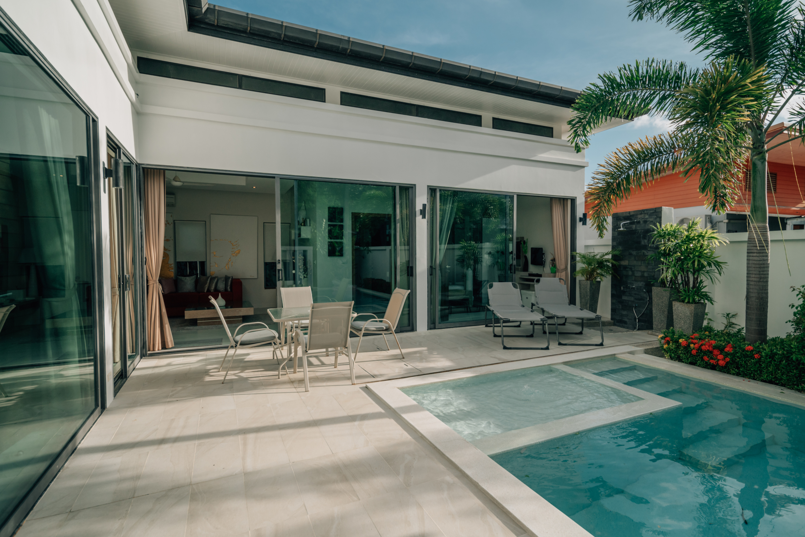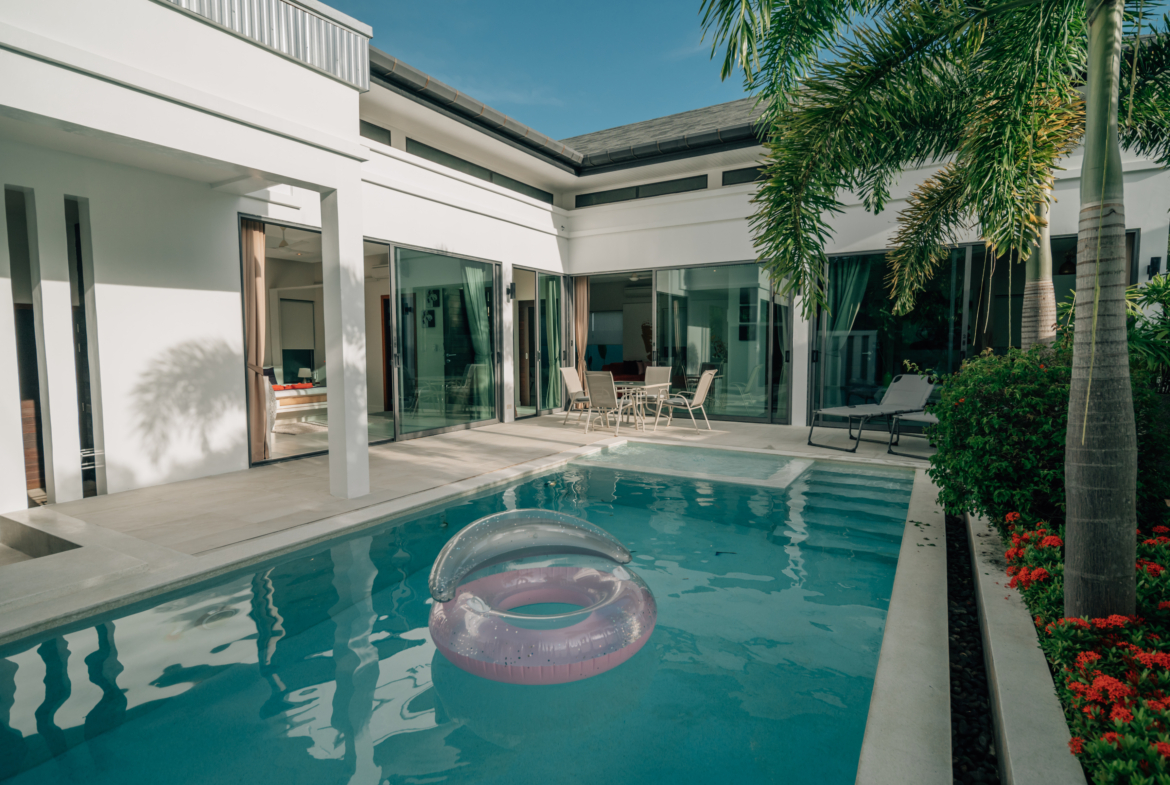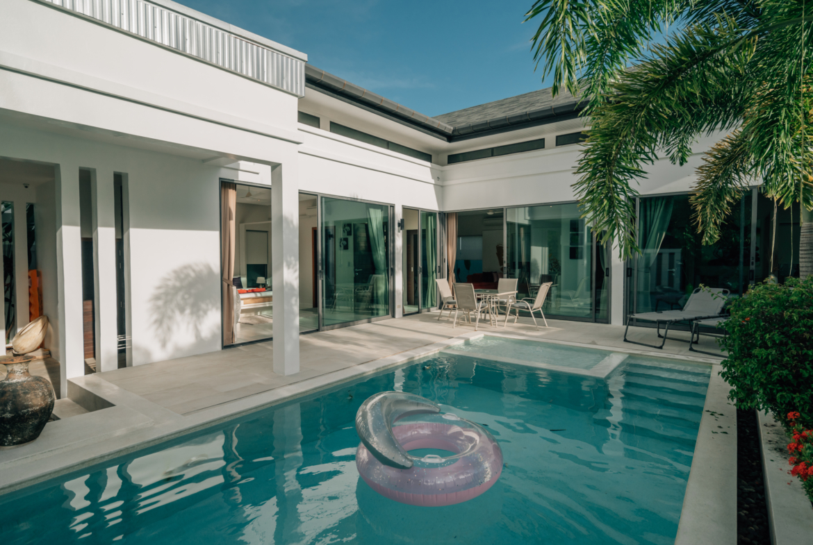 Baannaraya Pool Villas Residence is renowned for its elegant natural wood furnishings and Asian-inspired décor. Each villa is enveloped by high fences adorned with tropical plants, creating an exclusive atmosphere of privacy. The complex’s strategic location offers residents convenient access to numerous restaurants, shops, and local attractions, enhancing the overall living experience.