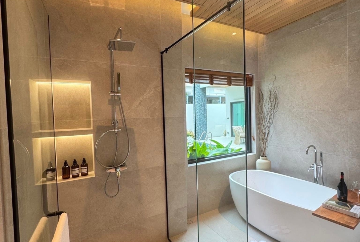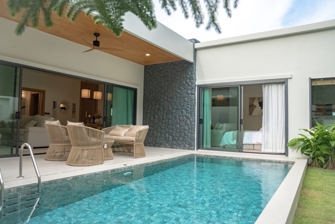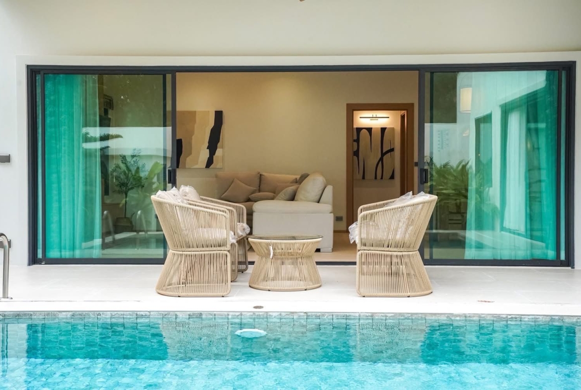Experience island living at its finest with this elegant 2-bedroom, 2-bathroom pool villa located in the exclusive Shambhala Sol Villa, Cherng Talay, Phuket. Set on a 280 m² land plot, this beautifully designed home blends tropical charm with modern comfort.