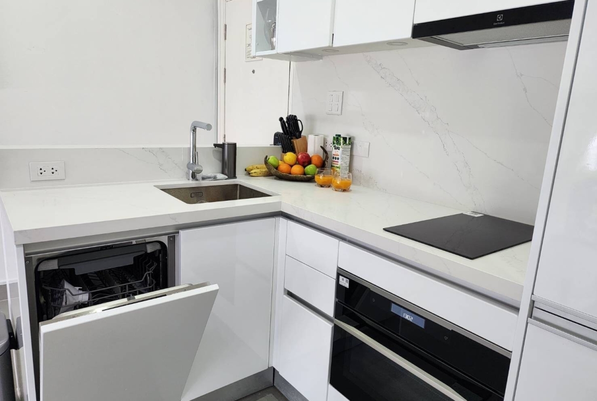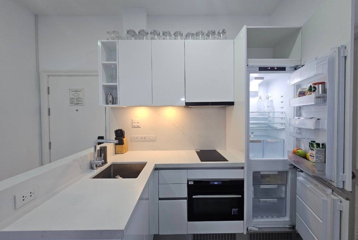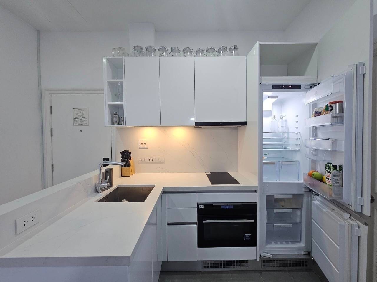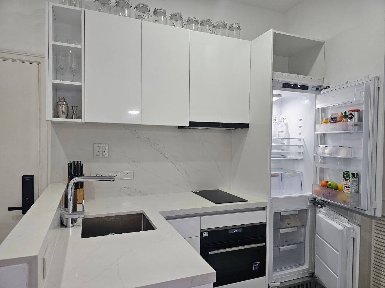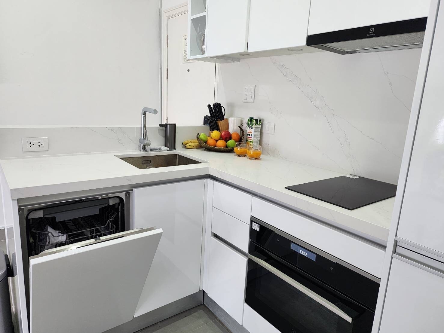 Full western kitchen equipped with built-in fridge and freezer, oven, induction hob, dishwasher