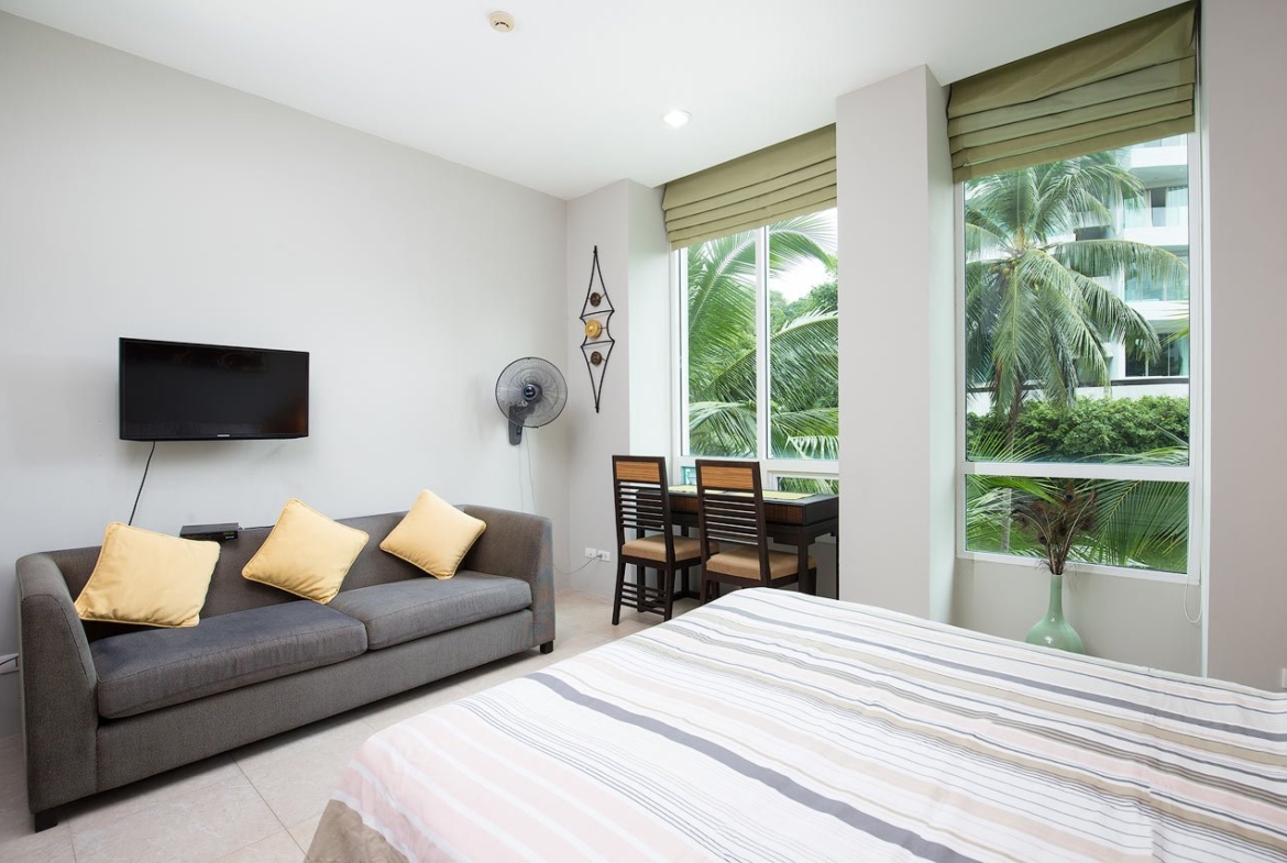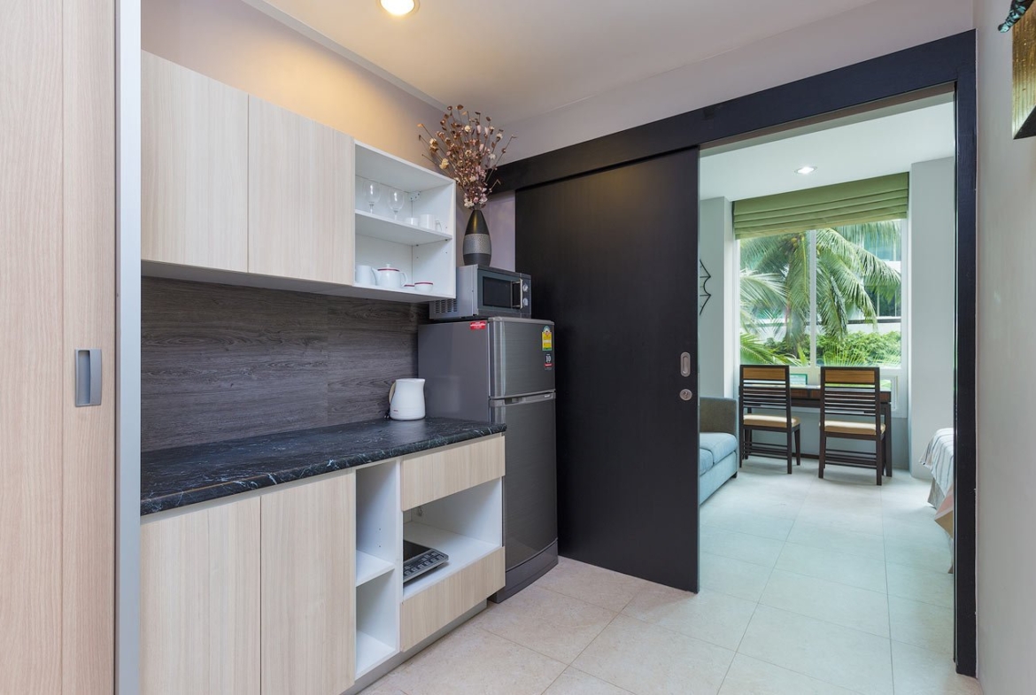 An excellent opportunity to own an affordable apartment in one of Phuket’s most popular beach destinations. Located just 400 meters from Karon Beach, this fully furnished studio offers convenience, strong rental potential, and immediate usability.