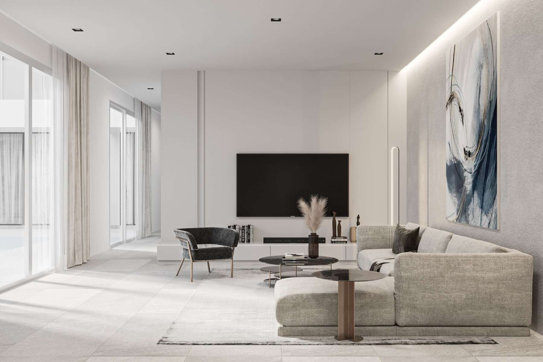 Each villa features a three-bedroom layout, accompanied by a versatile multipurpose room that can easily be transformed into a fourth bedroom or a maid’s room, catering to the owner’s specific needs.
