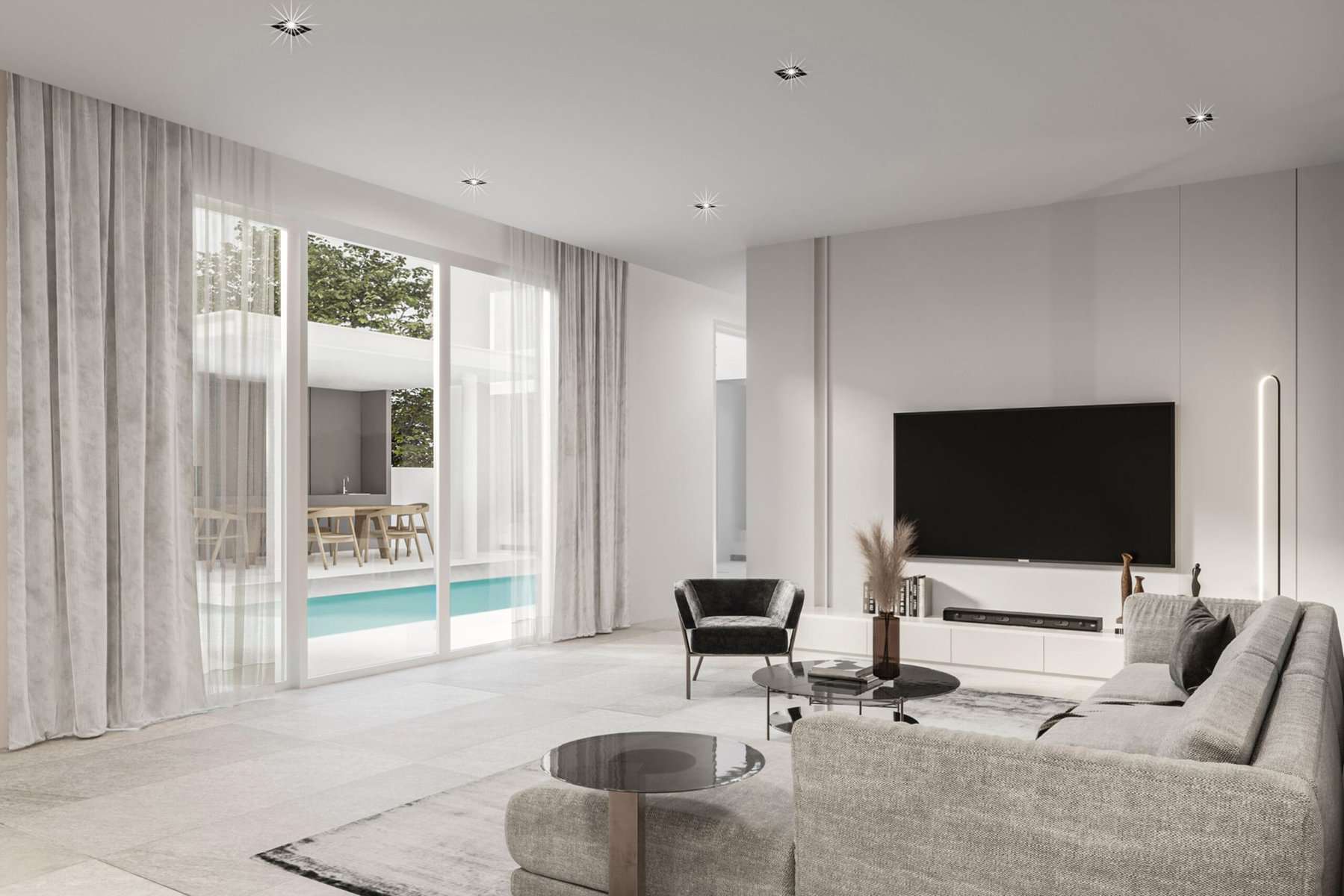 Designed in a U-shaped configuration, each villa centres around a private swimming pool encircled by an inviting deck and a poolside sala. Spanning two levels, the villa’s layout optimizes space and functionality.