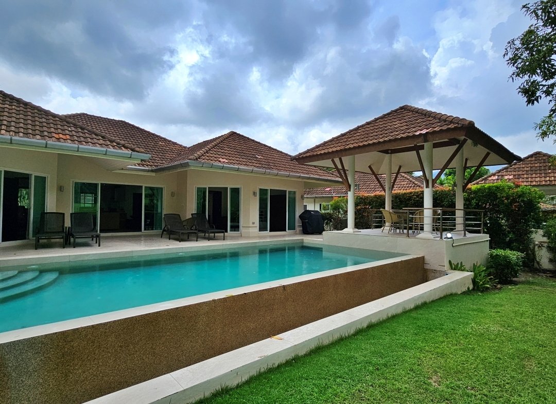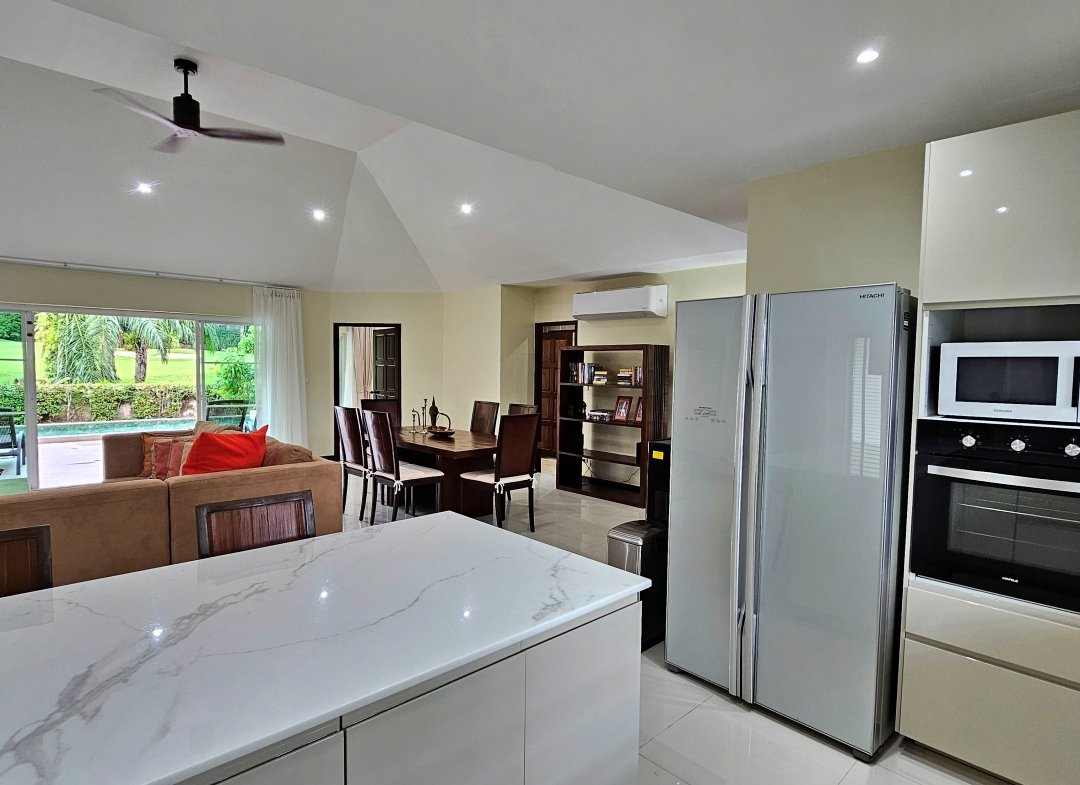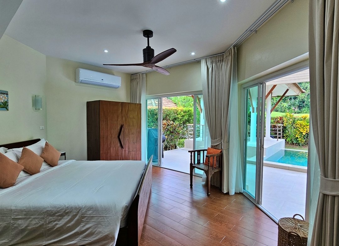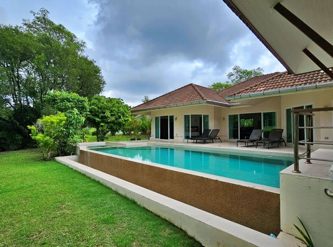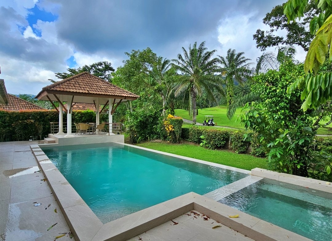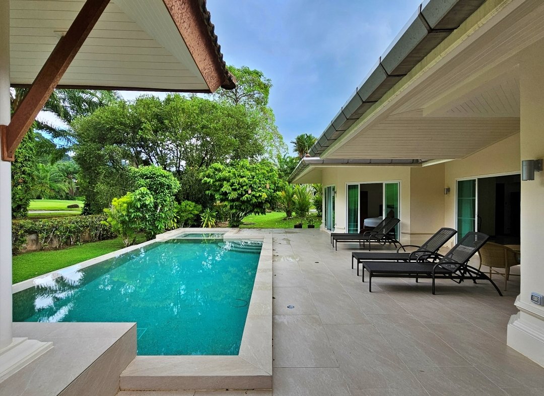 Nestled in the tranquil surroundings of Loch Palm Golf Course, this exquisite 2-bedroom pool villa is now available for sale at 18,000,000 THB (approximately $534,950). Embrace the perfect blend of luxury and serenity in this stunning single-storey villa, set against the lush green hills of Kathu.