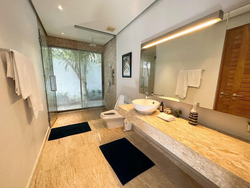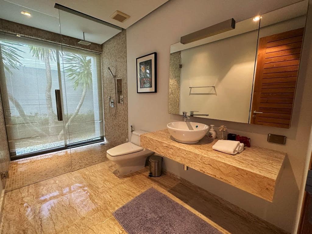 Situated on a generous 910 sqm plot, with a spacious 450 sqm built-up area, this Anchan Lagoon villa for sale was thoughtfully built in 2016 and has been impeccably maintained. The property features an expansive open-plan living and dining area, high ceilings, a fully equipped Western kitchen, and luxurious en-suite bedrooms — all designed to maximize comfort and privacy.