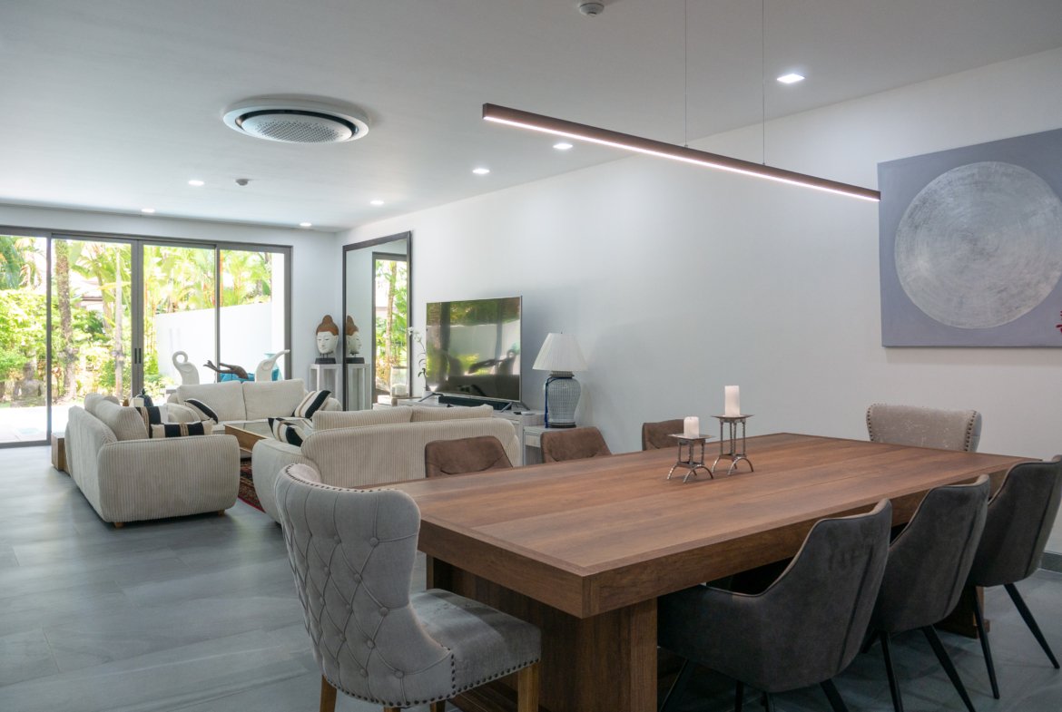 Experience luxurious tropical living in this beautifully renovated villa-style residence, located just 350 meters from the pristine sands of Bangtao Beach. Designed with space, comfort, and lifestyle in mind, this property offers a unique combination of privacy, modern amenities, and prime location.