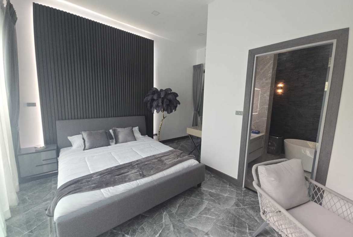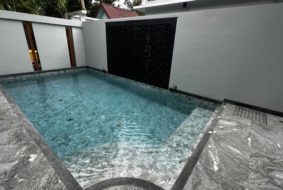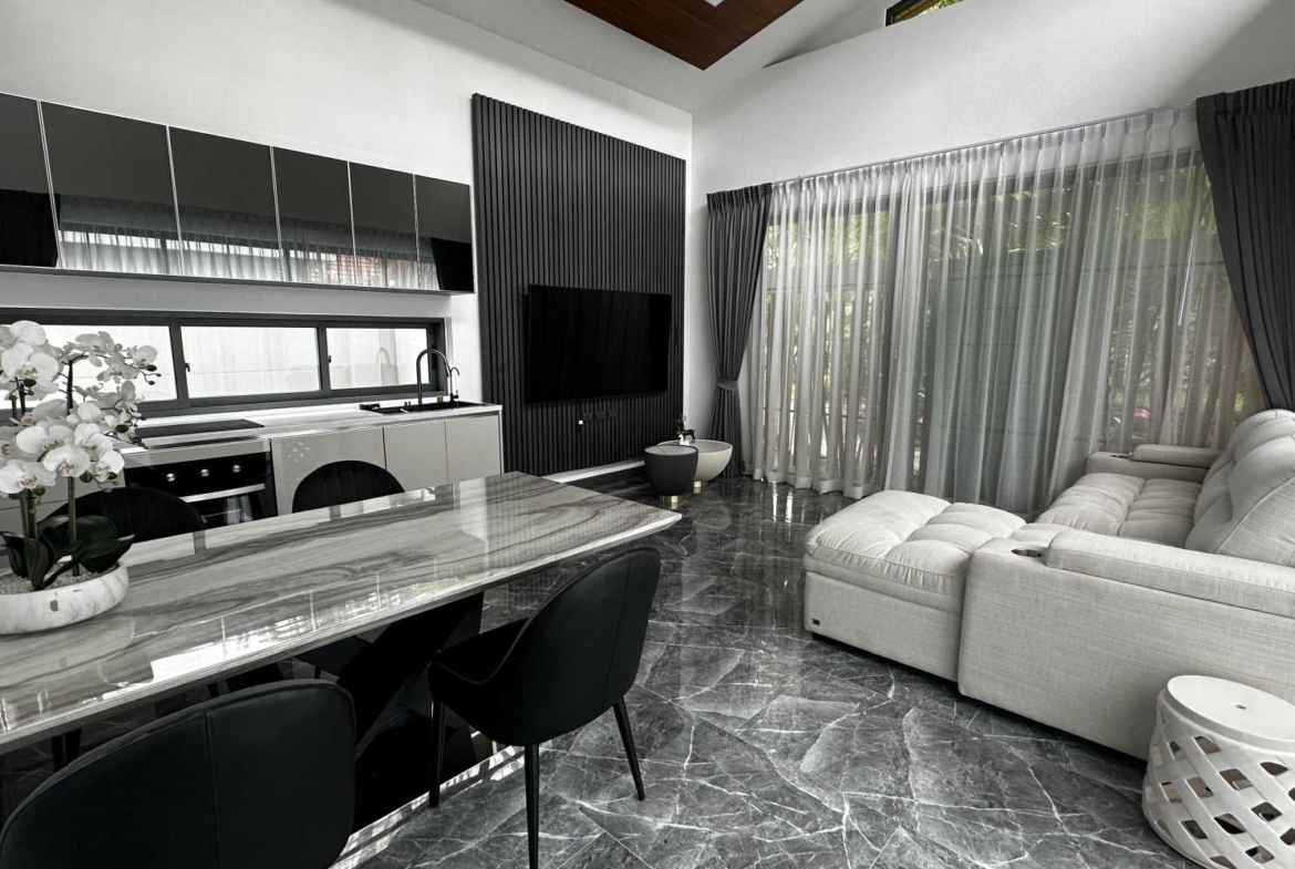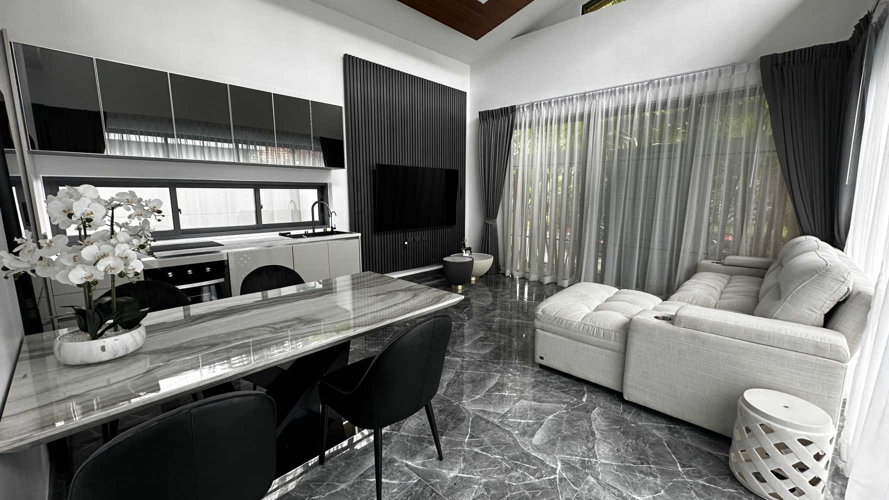 Design and Features: This villa features a thoughtfully designed layout with high ceilings and expansive 3.5-meter sliding glass doors, enhancing natural light and air flow throughout the home. The premium aluminium-framed sliding walls open onto a stunning outdoor space with a private pool, waterfall feature, and lush tropical ambiance.