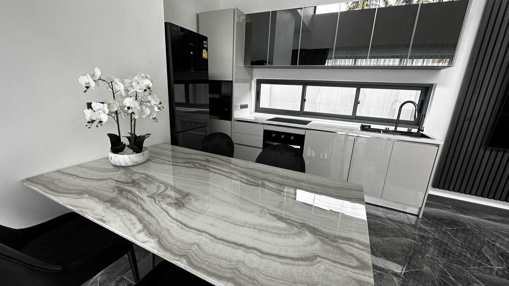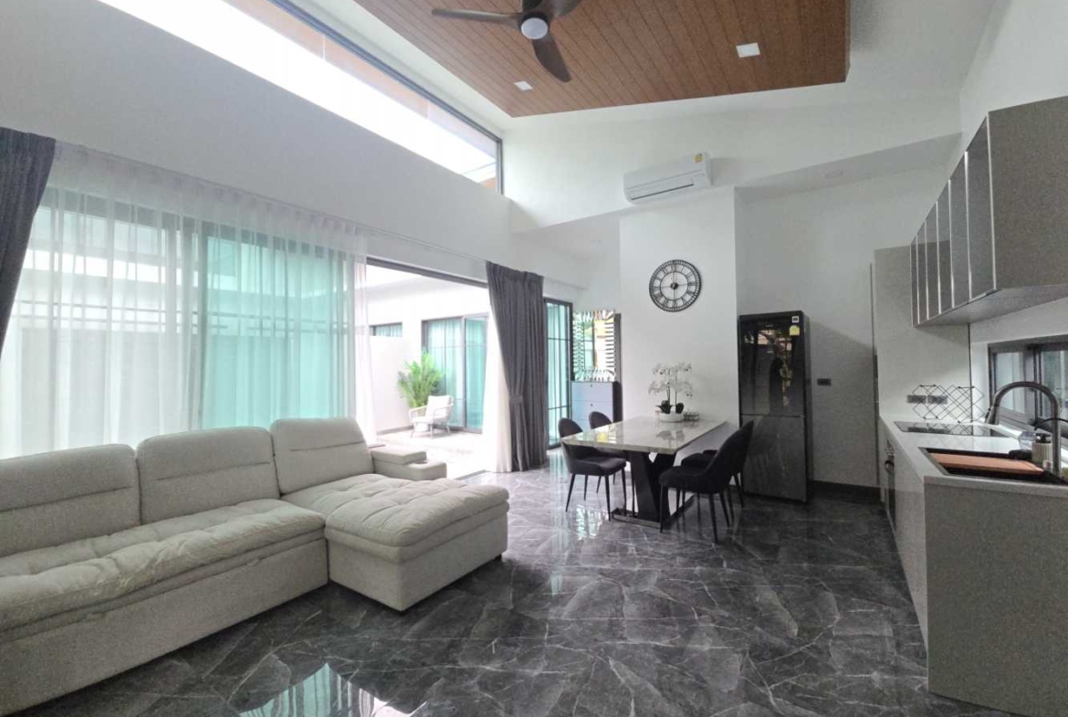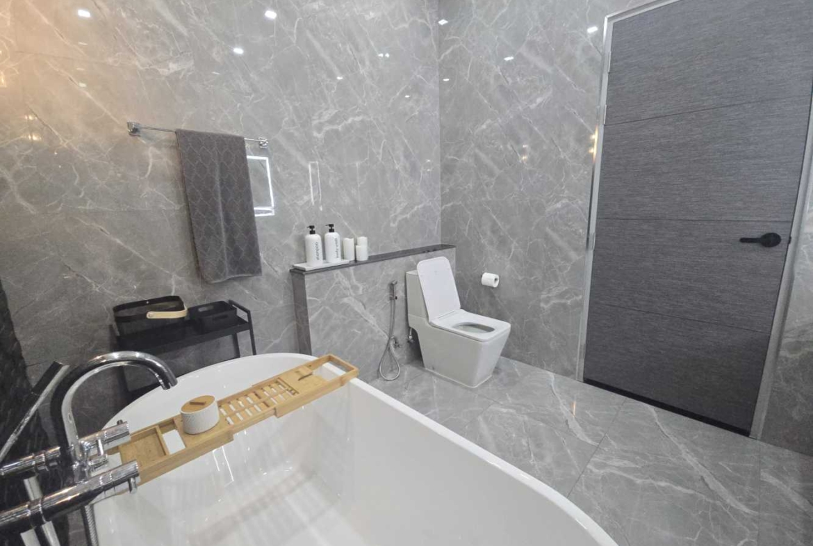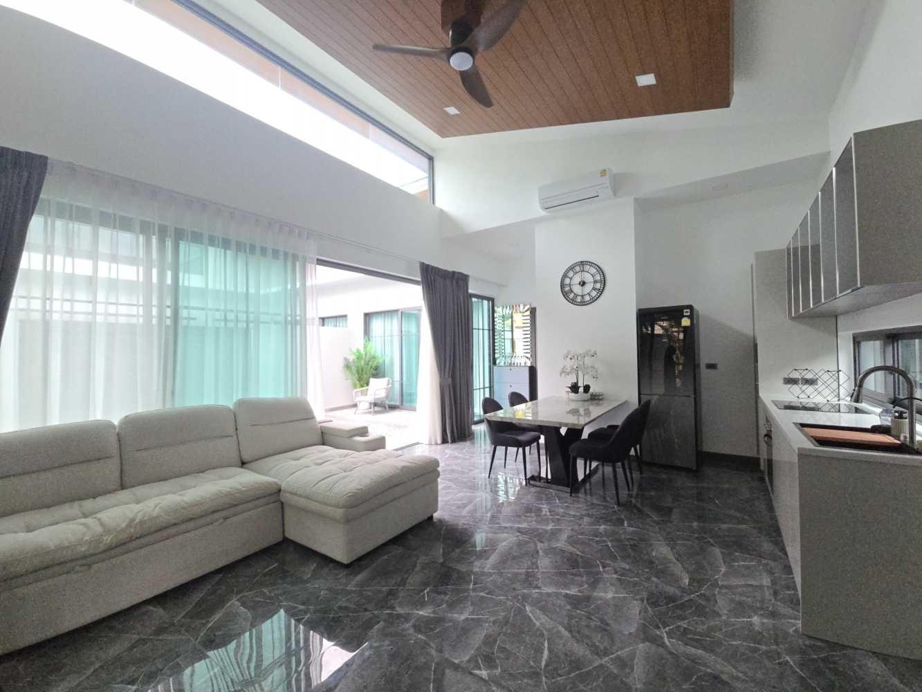 Design and Features: This villa features a thoughtfully designed layout with high ceilings and expansive 3.5-meter sliding glass doors, enhancing natural light and air flow throughout the home. The premium aluminium-framed sliding walls open onto a stunning outdoor space with a private pool, waterfall feature, and lush tropical ambiance.