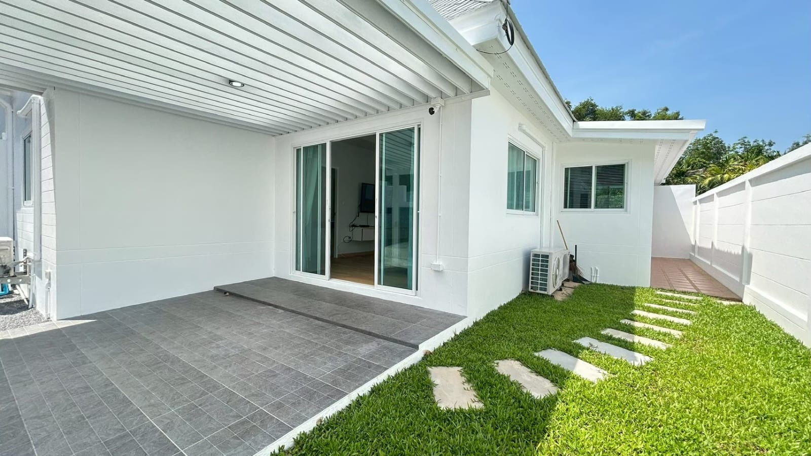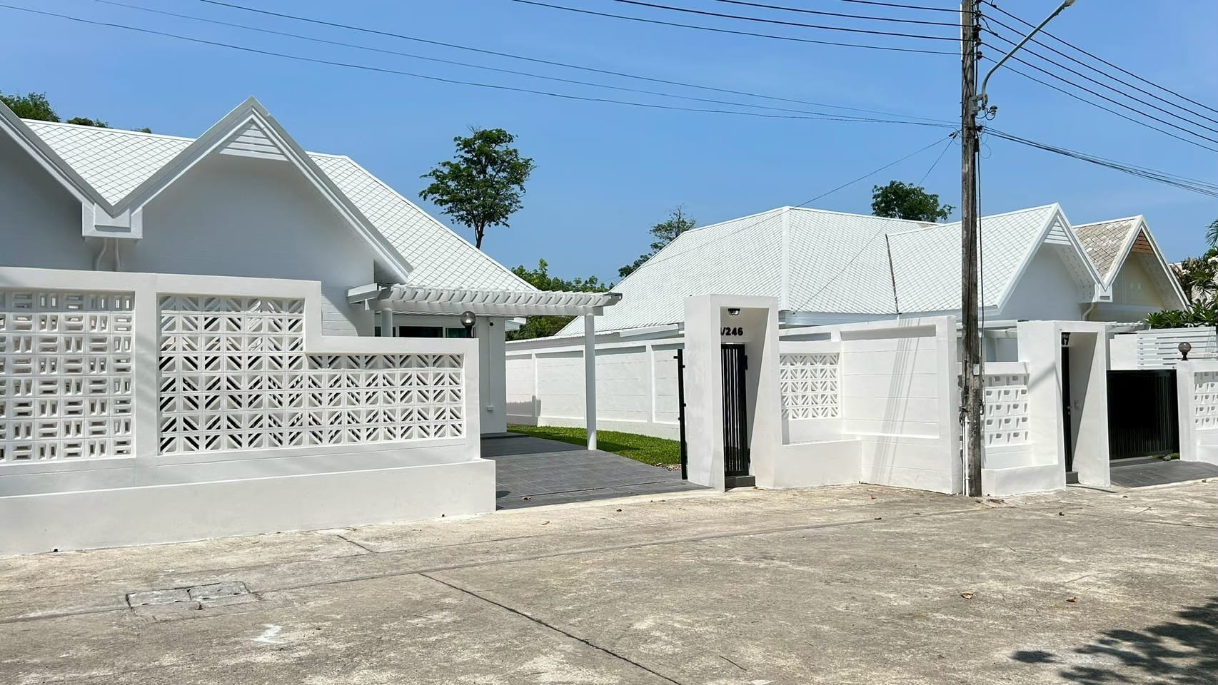 The Corner Unit sits on 97.9 sq.wah (approximately 391.6 sq.m.) and is priced at 9,400,000 THB, while 2 eatures 94.4 sq.wah (approximately 377.6 sq.m.) of land and is priced at 9,200,000 THB. Both properties include shared 50/50 transfer fees.