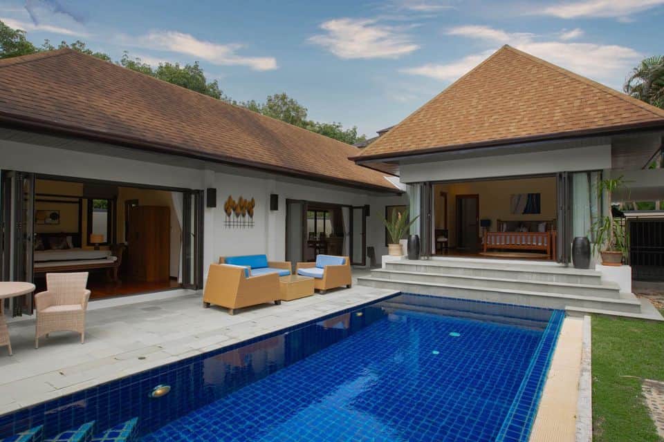 Outside, lush gardens and tranquil outdoor spaces beckon, ideal for relaxation and alfresco dining amidst the tropical surroundings. The property’s design highlights include traditional Thai elements combined with modern conveniences, offering a unique and inviting atmosphere.
