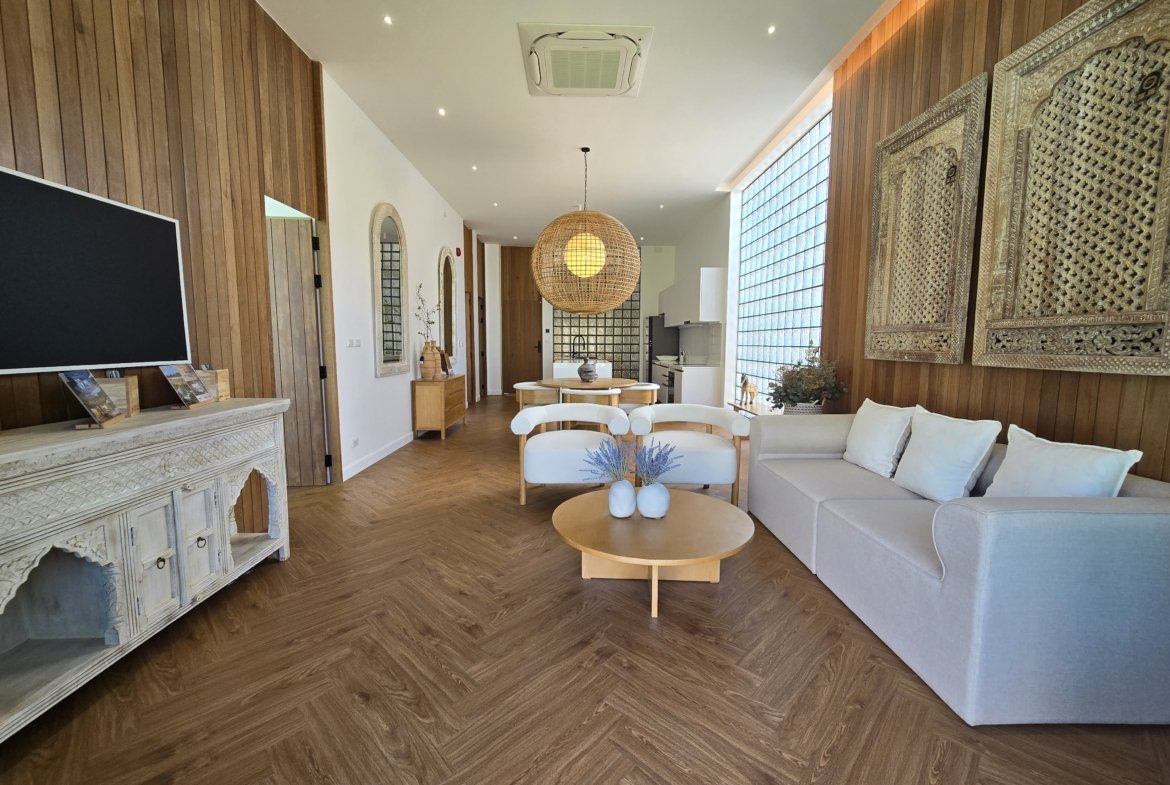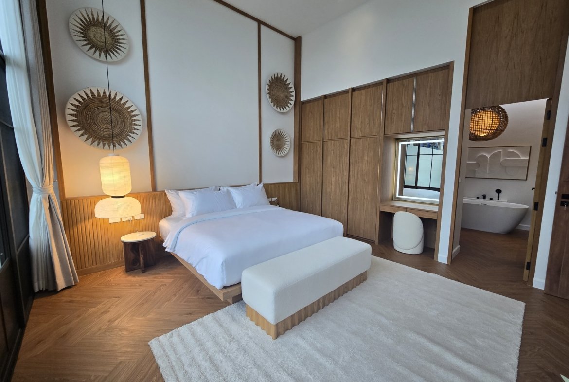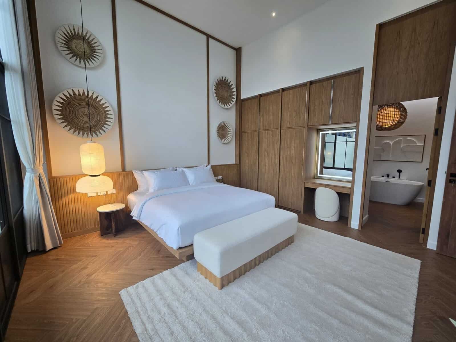 - Spacious Bedrooms: Each villa boasts 2 elegantly decorated bedrooms, each with its own ensuite bathroom. The master bedroom offers a larger bathroom complete with a separate bathtub and shower, along with direct access to the private swimming pool.